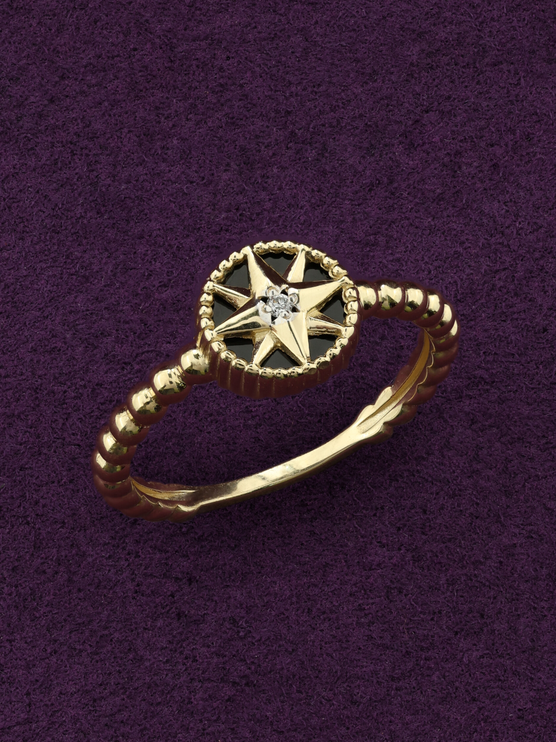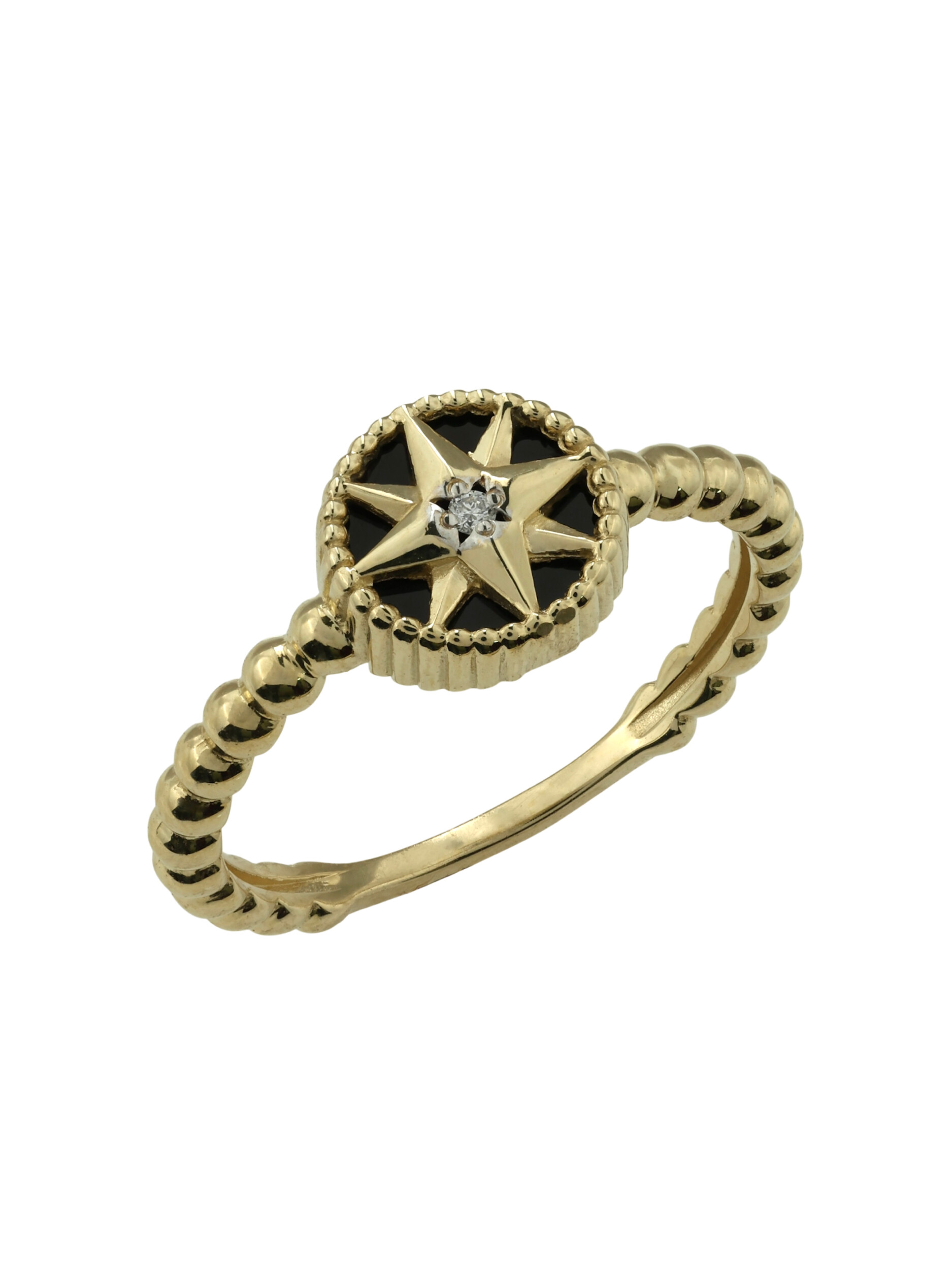 Кольцо из лимонного золота c бриллиантами и ониксом
