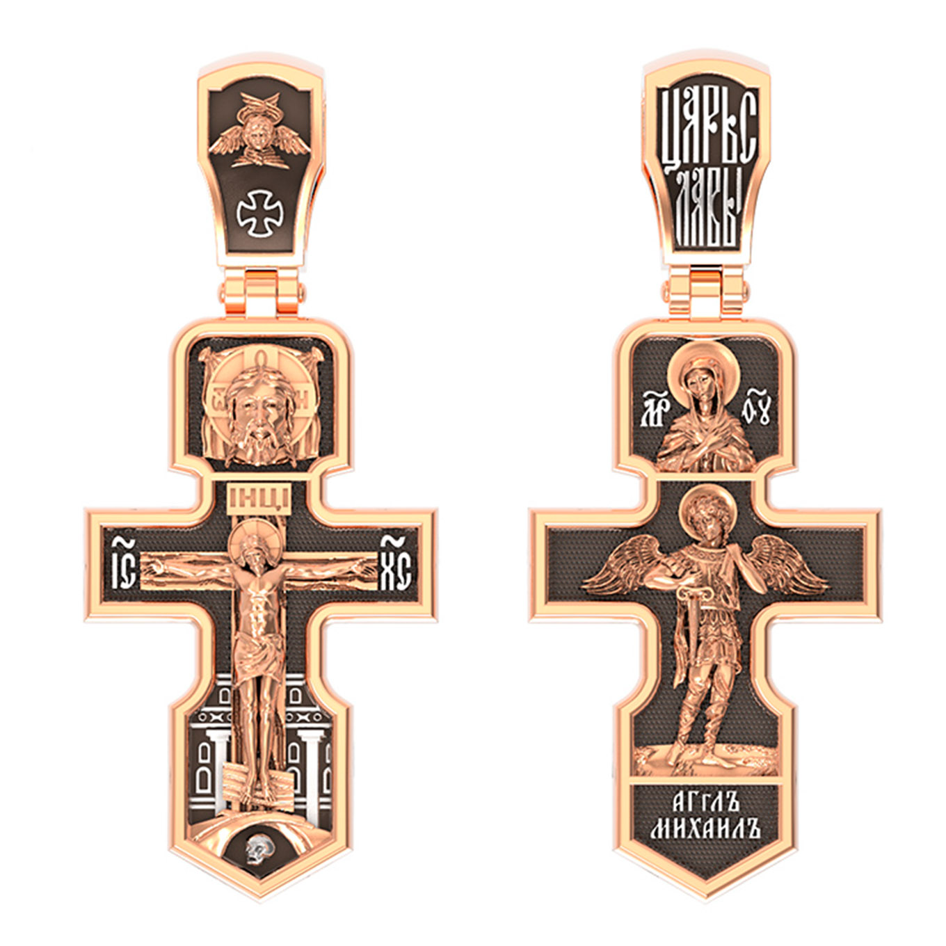 В центре оборота креста изображен Архистратиг Михаил. Могучий Архангел почитается как покровитель воинов и всех верных Богу и ведущих борьбу против сил зла, а также защитник душ умерших, страж райских врат. Над ним изображена икона Божией Матери «Радость всех радостей» или «Серафимово Умиление». Почитание иконы связано с именем преп. Серафима Саровского (1759−1833, канонизирован в 1903 г.). Вся его жизнь проходила под покровительством Богоматери. Богоматерь неоднократно являлась ему в видениях, исцеляла от смертельных болезней. У преп. Серафима было несколько икон Богоматери. Среди них особое место занимала келейная икона, называемая Умиление, которую старец именовал также «Радость всех радостей». Перед нею, стоя на коленях в молитве, он скончался. После смерти преп. Серафима игумен Нифонт передал образ в близлежащий Дивеевский женский монастырь, находившийся под покровительством старца Серафима.