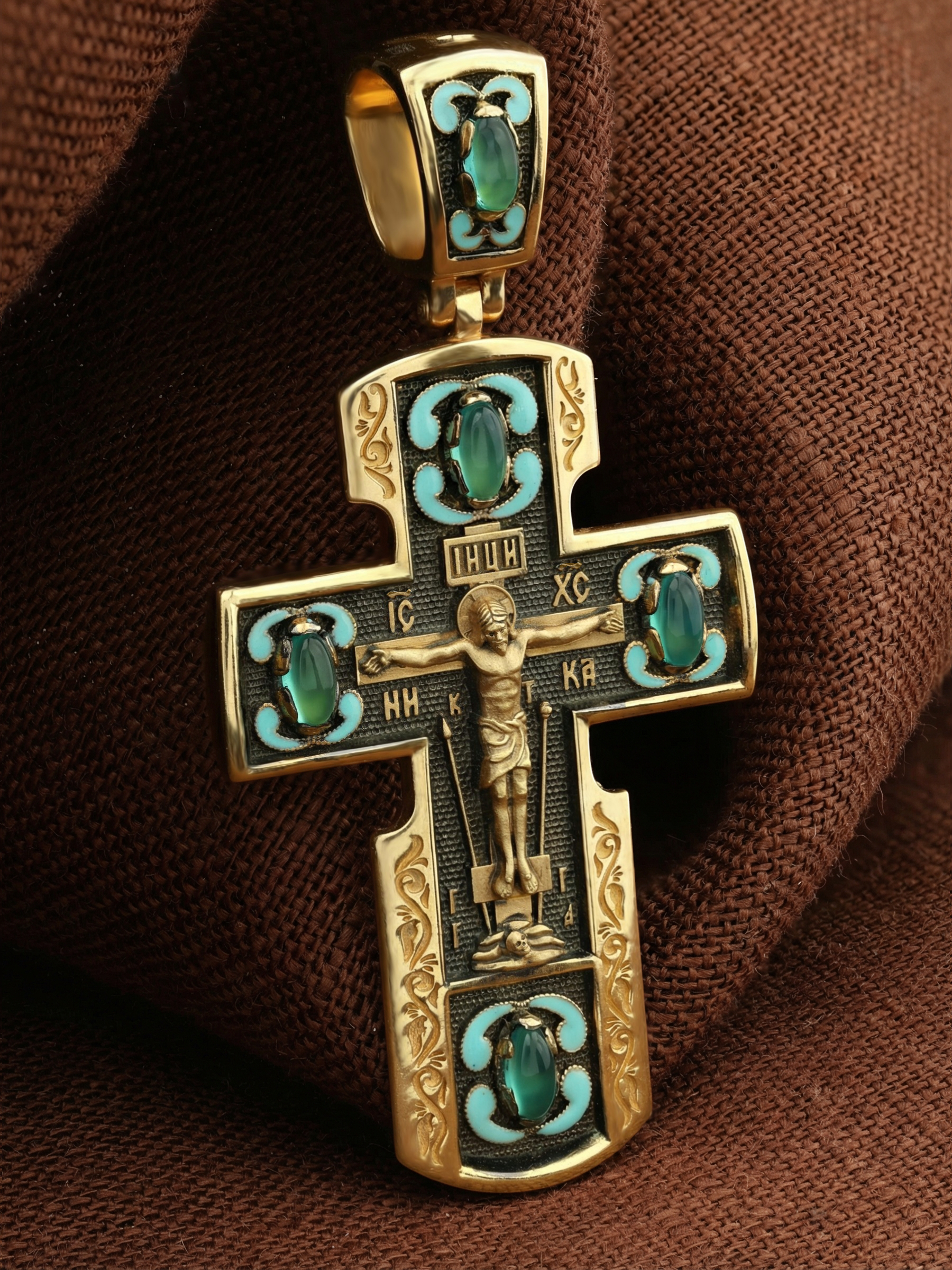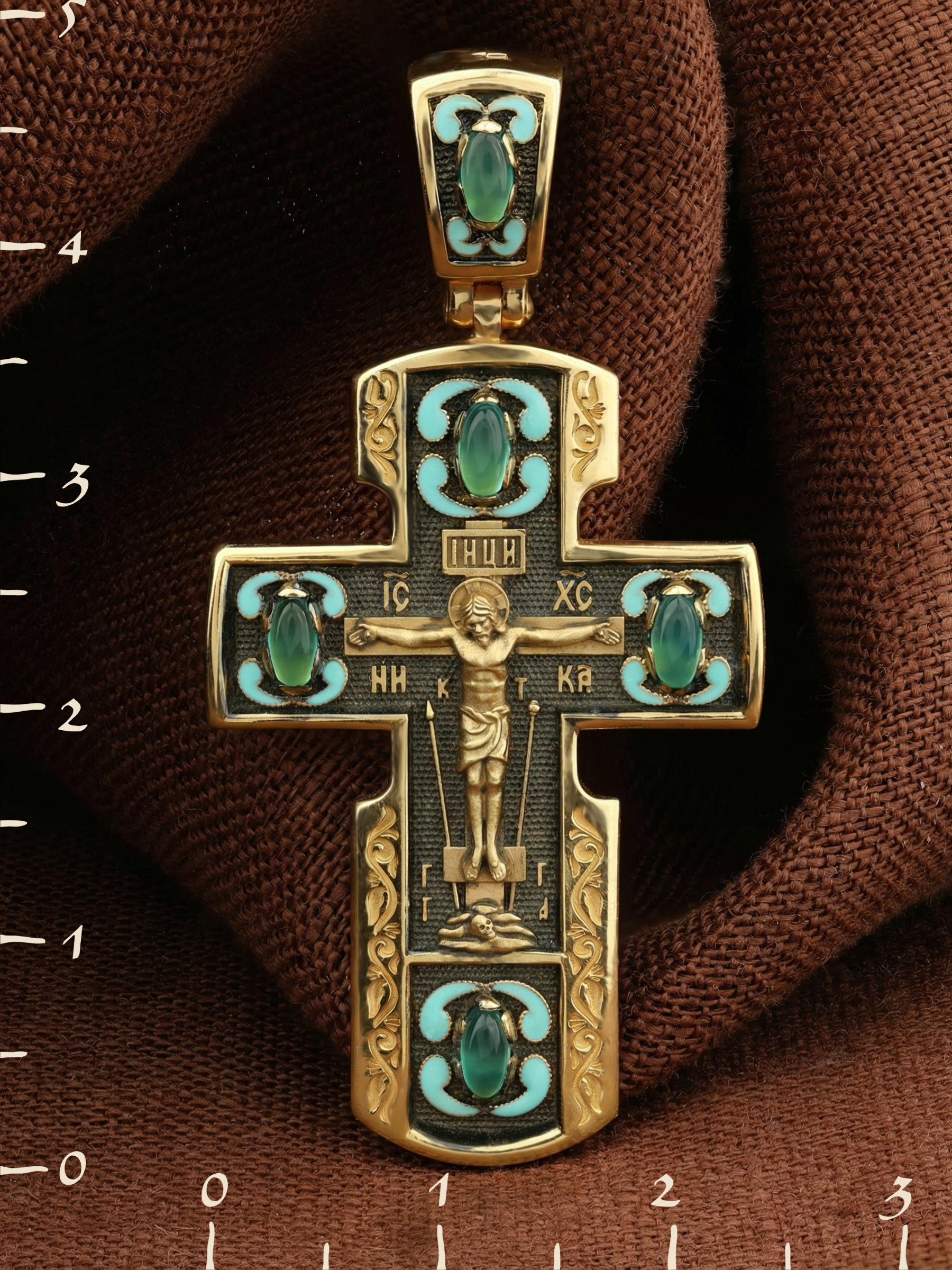 Крест из лимонного золота c эмалью и хризопразом