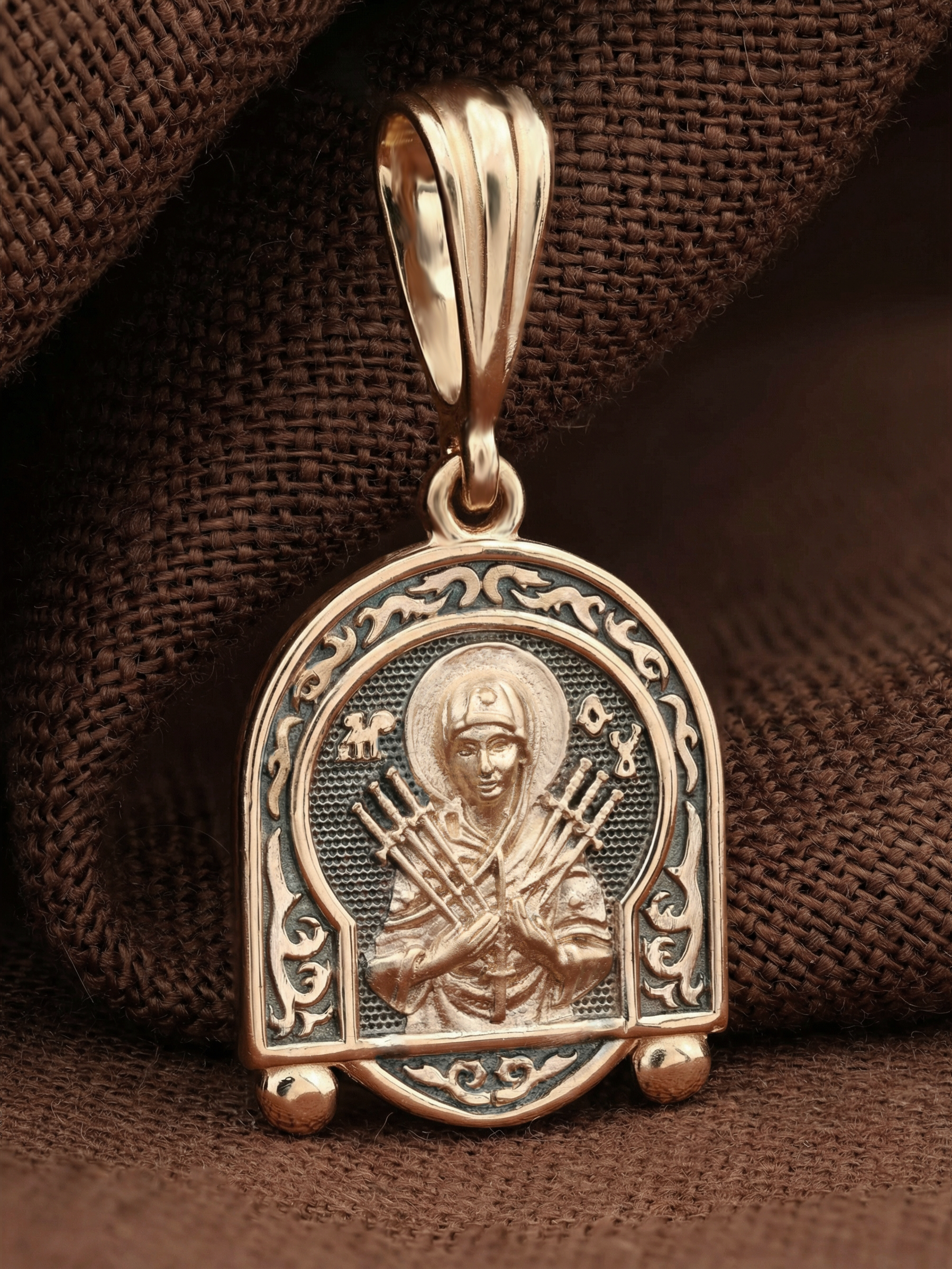 Пресвятая Богородица в Своей чудотворной иконе «Семистрельная» почитается как усмирительница враждебных чувств, защитница от злого умысла. Этой иконе молятся, чтобы остановить междоусобную брань, умилосердить сердца врагов, а также победить злые помыслы и недобрые чувства в собственном сердце. Все прибегающие к этой иконе с молитвою чувствуют, что при умягчении сердца облегчаются страдания не только душевные, но и телесные. Если же помолиться пред таким образом за своих врагов, то враждебные чувства уступают место милосердию, а разъедающая душу ненависть утихает.