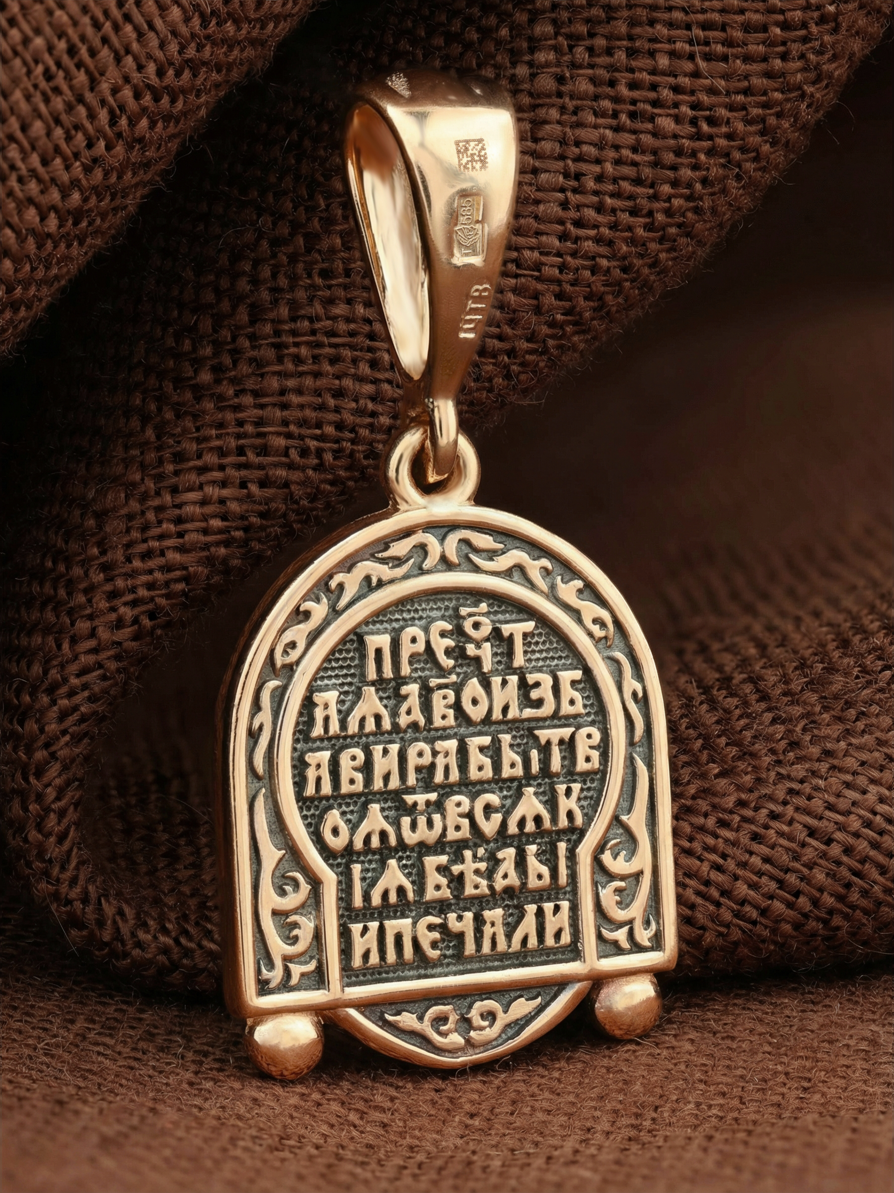 На лицевой стороне образка изображена икона Пресвятой Богородицы «Семистрельная» — одна из самых чудотворных икон на Руси. На протяжении многих веков христиане взывали к Царице Небесной через эту икону, если в стране начинались войны или мятежи.
