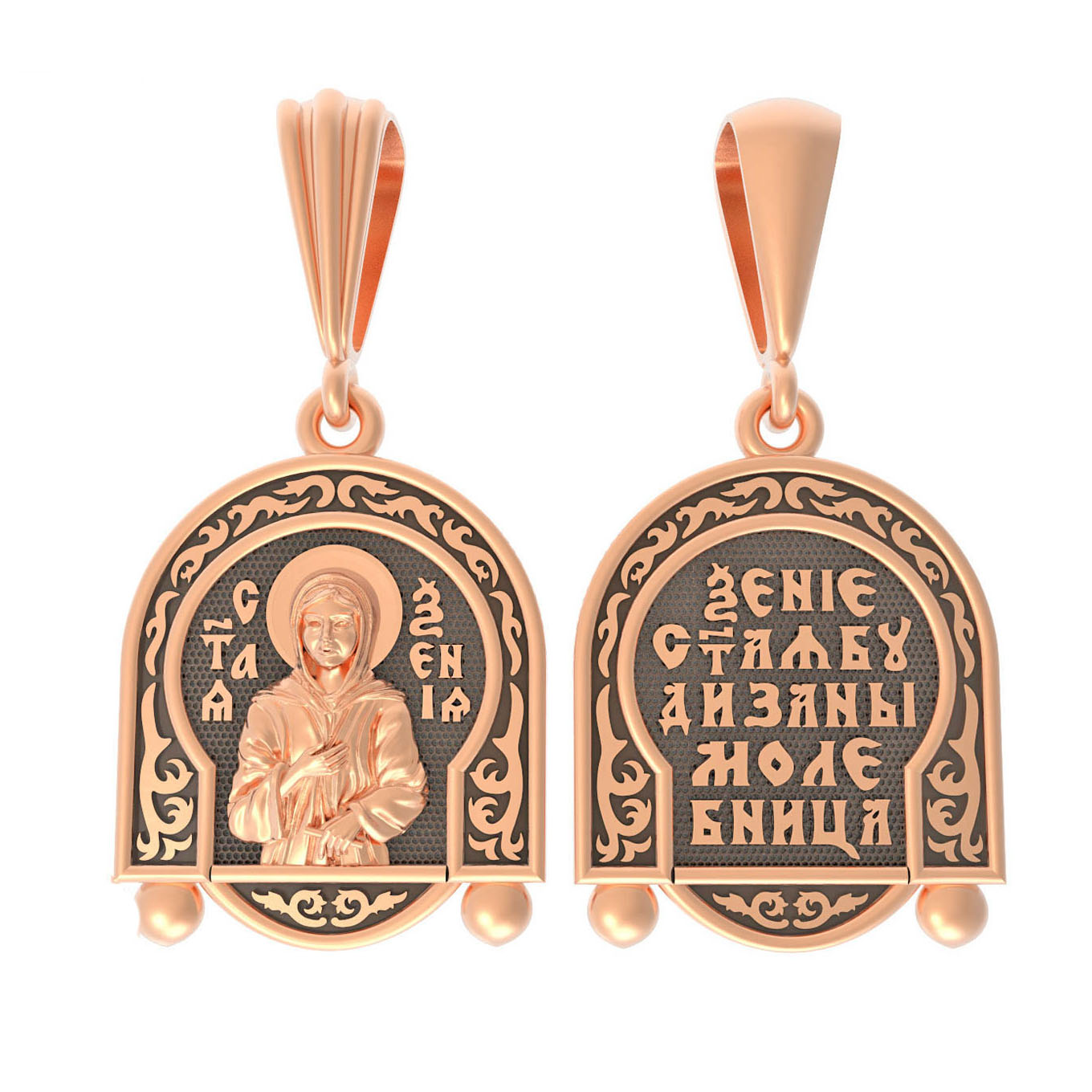 На лицевой стороне образка изображена Святая блаженная Ксения Петербургская, в миру Ксения Григорьевна Петрова.