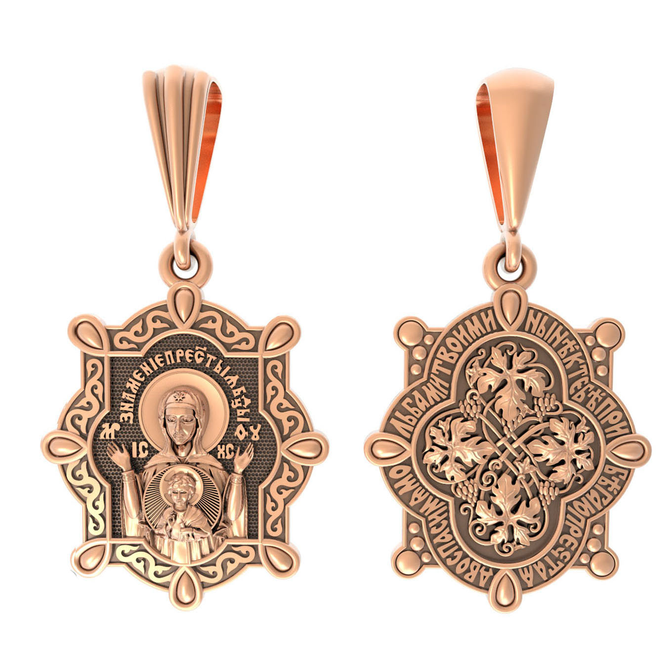 На оборотной стороне изображена виноградная лоза — символы церкви и евхаристии. «Я есмь лоза, — говорил Иисус Христос Своим ученикам, — а вы ветви; кто пребывает во Мне, и Я в нем, тот приносит много плода» (Ин. 15, 5), «Я есмь истинная виноградная лоза, а Отец Мой — виноградарь». Вокруг образка написана молитва Богородице: «Ныне к Тебе прибегаю, Пречистая Дево, спаси мя мольбами Твоими».