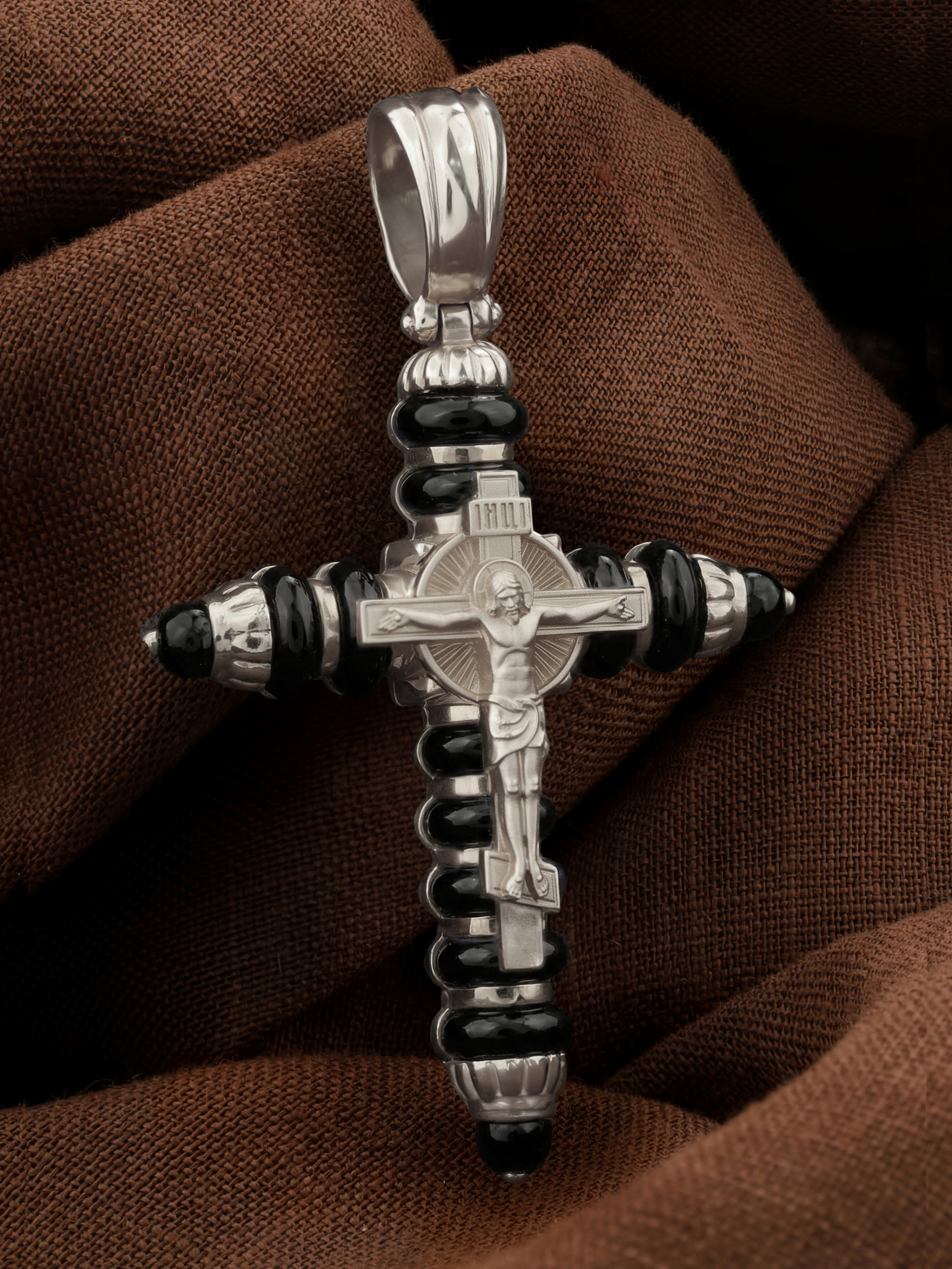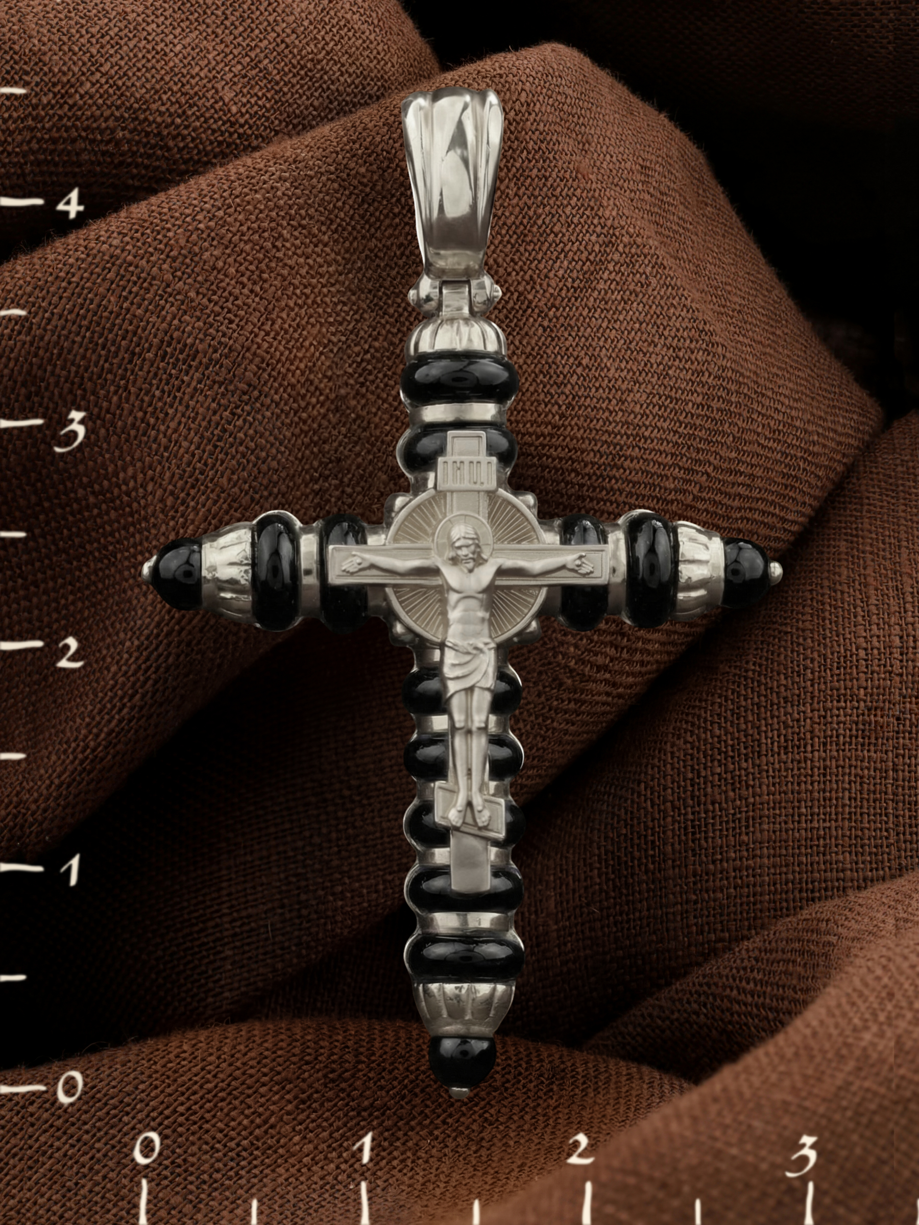 Крест из белого золота c ониксом