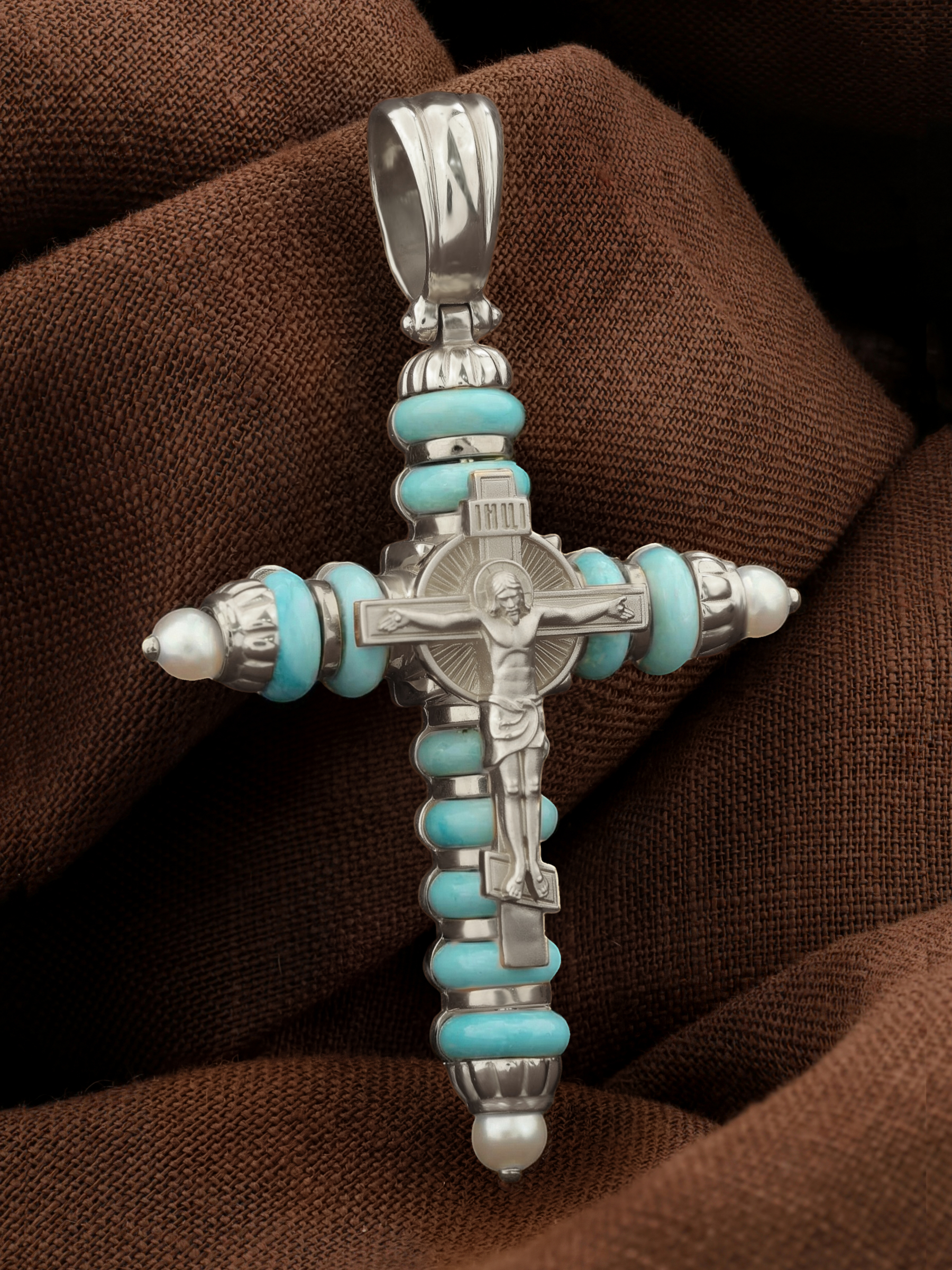 На лицевой стороне креста изображено Распятие Господа и Спасителя нашего Иисуса Христа, отдавшего Себя на смерть для искупления грехов мира. Крест является символом жертвенной любви Всеблагого Бога к падшим людям, всепобеждающим духовным оружием христиан, основанием и средоточием церковной жизни. Над вершиной Распятия помещена надпись «Царь Славы». На верхней перекладине расположена надпись «IНЦI». Она символизирует титло — табличку, на которой, согласно Евангелию, было начертано: Иисус Назорей, Царь Иудейский. Надпись «IC» «ХC»», означает Иисус Христос, помещаются на разных сторонах поперечной перекладины креста. Ниже помещена надпись «НИКА», что означает «победитель».