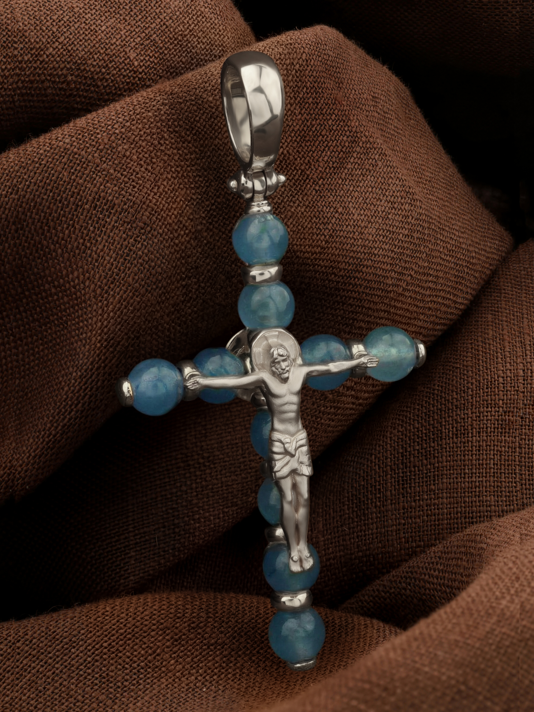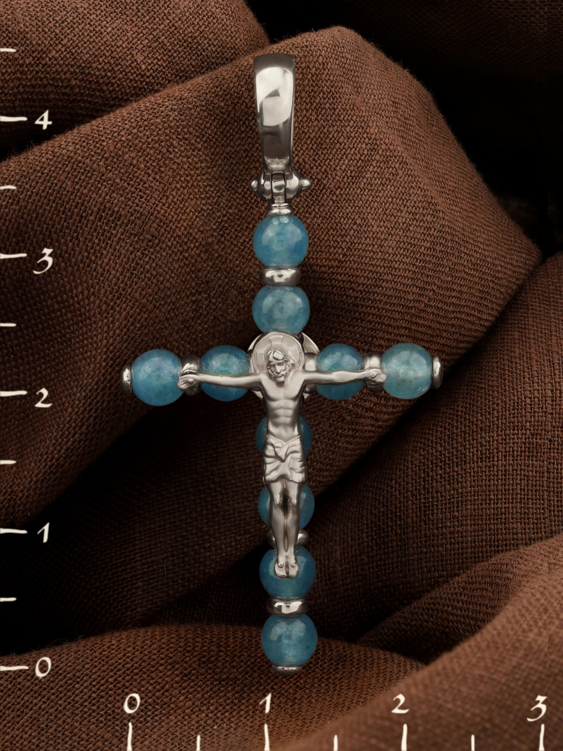 Крест из белого золота c жадеитом