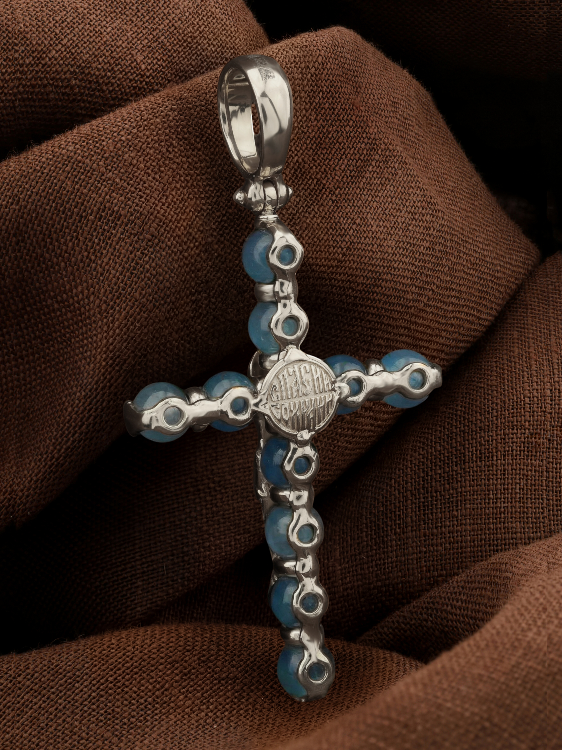В центрально части оборотной стороны креста написана молитва: «Спаси и сохрани».