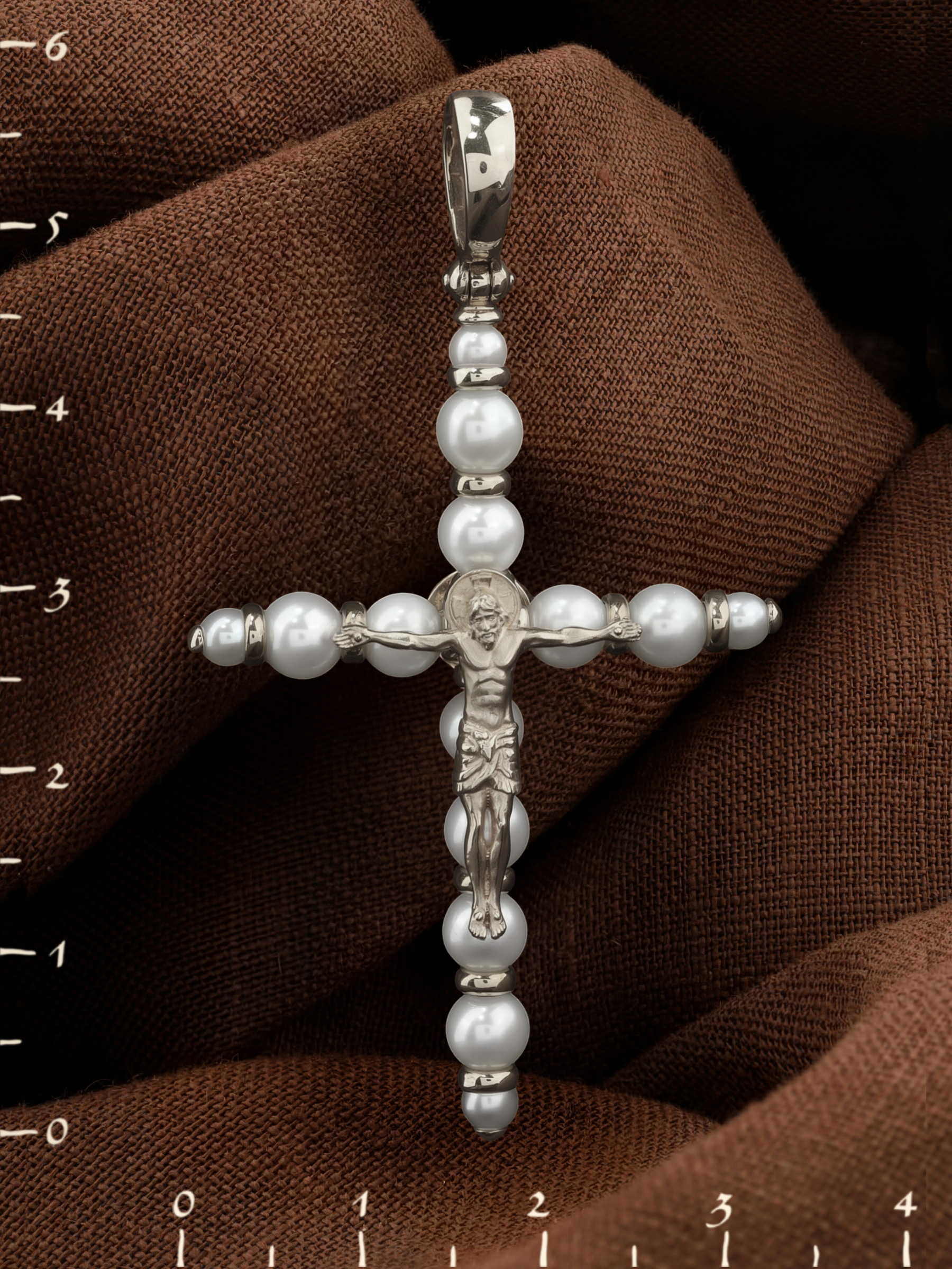 Крест из белого золота c жемчугом