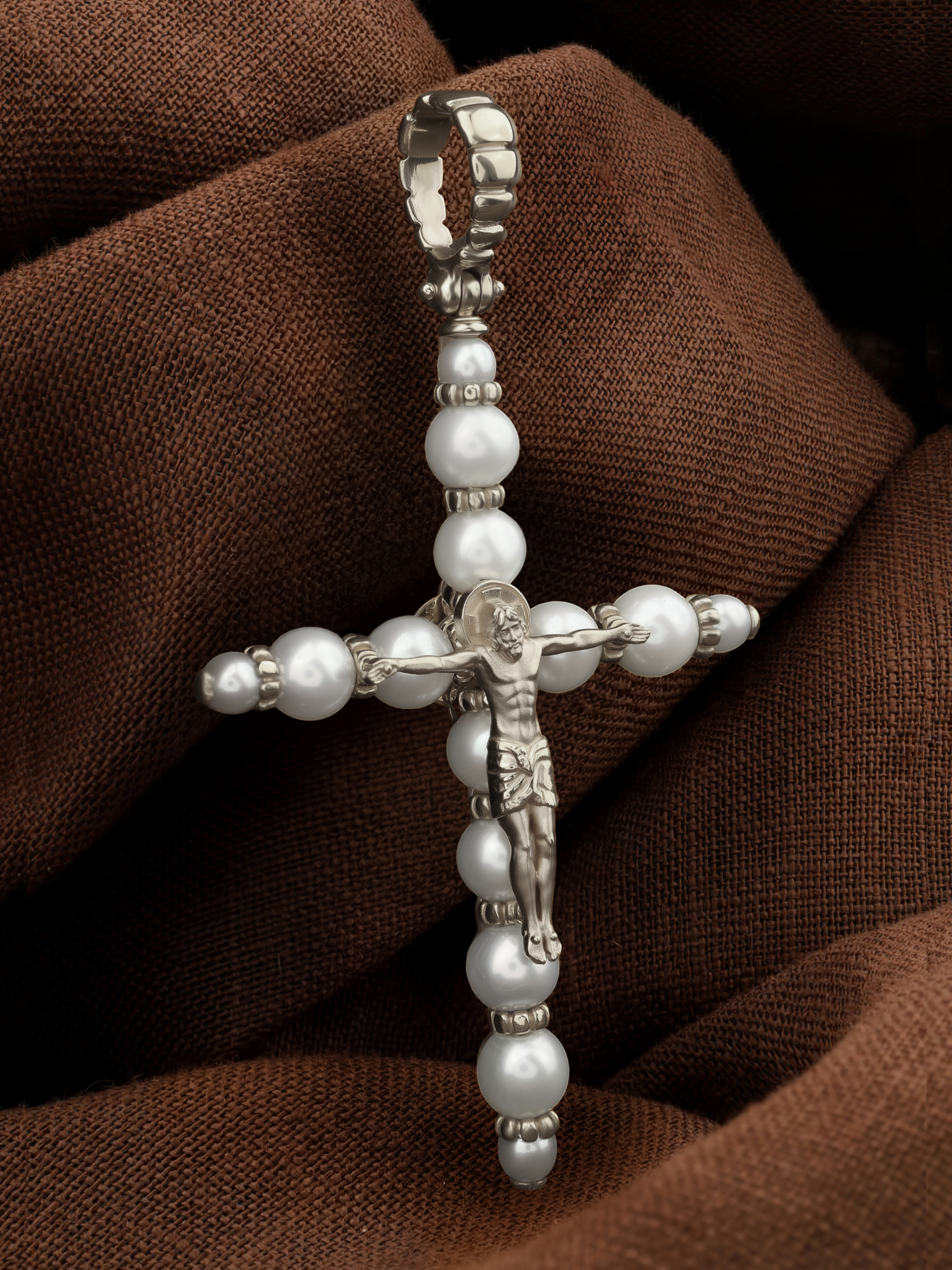 Крест из белого золота c жемчугом