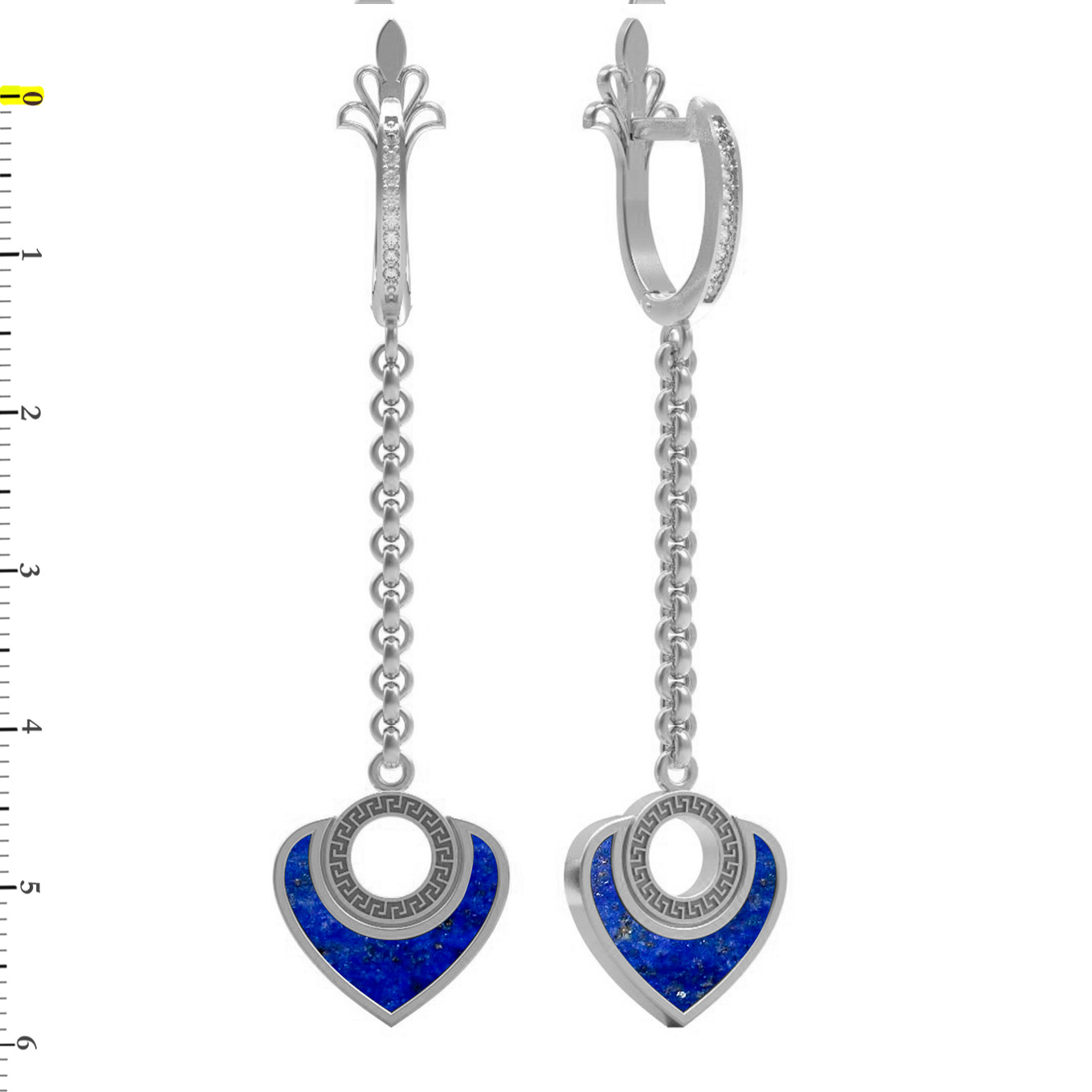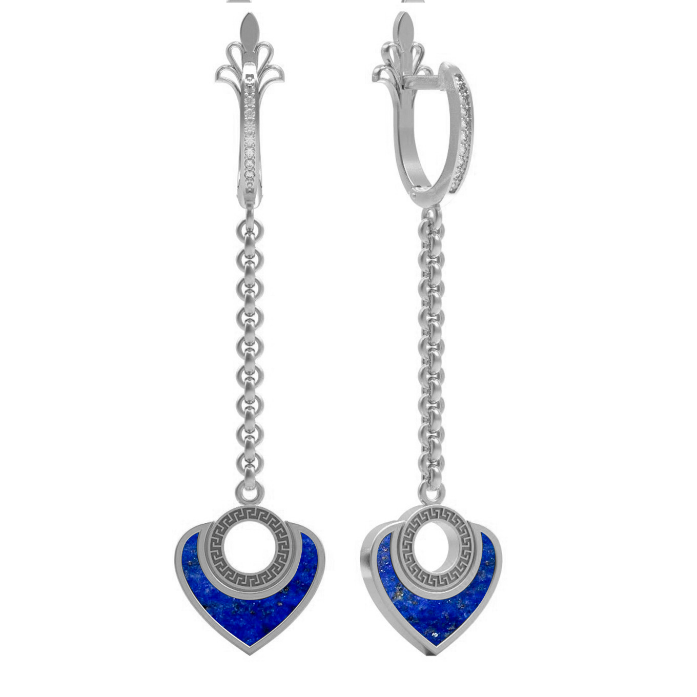 Серьги из белого золота c фианитом и лазуритом