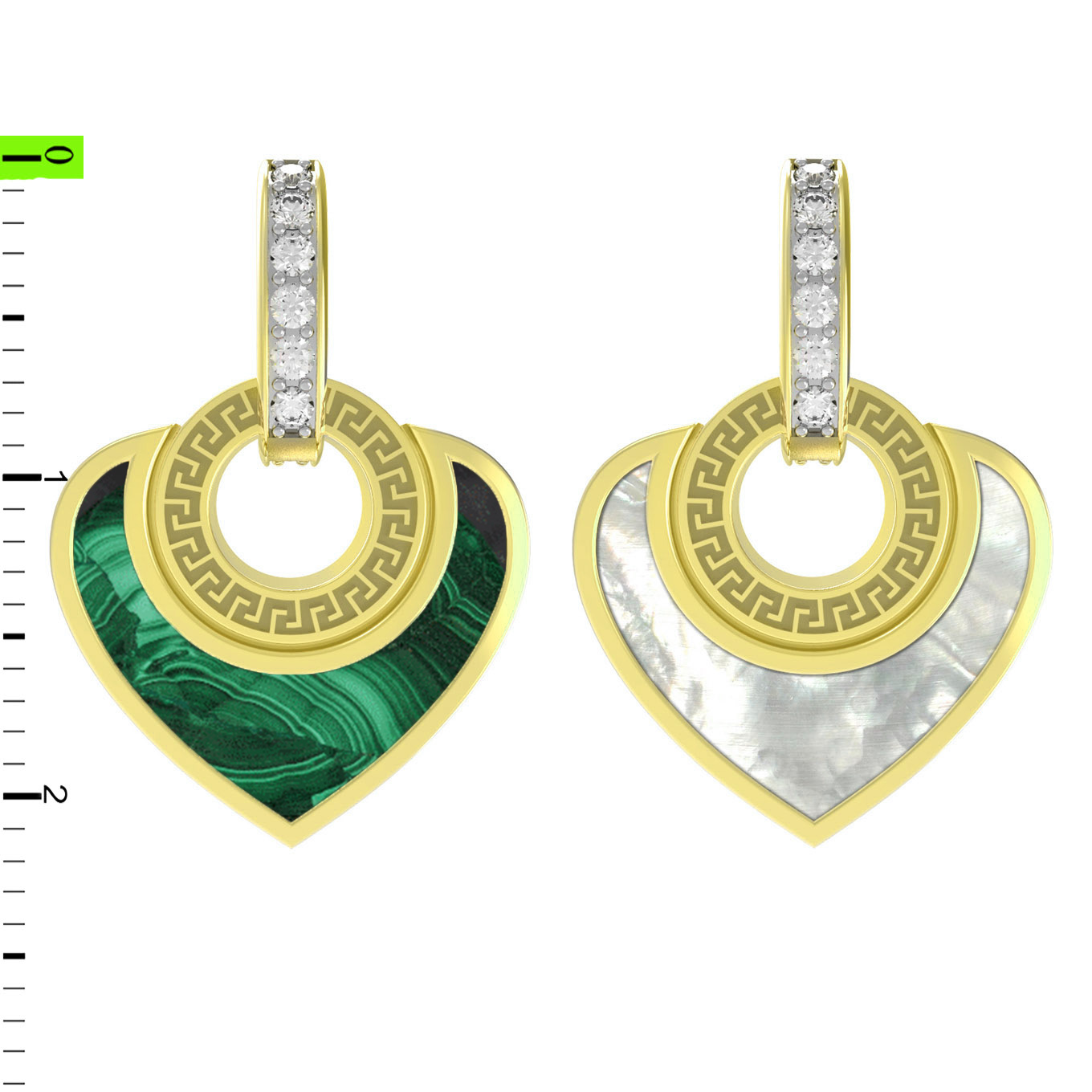 Подвеска из лимонного золота c фианитом, малахитом и перламутром