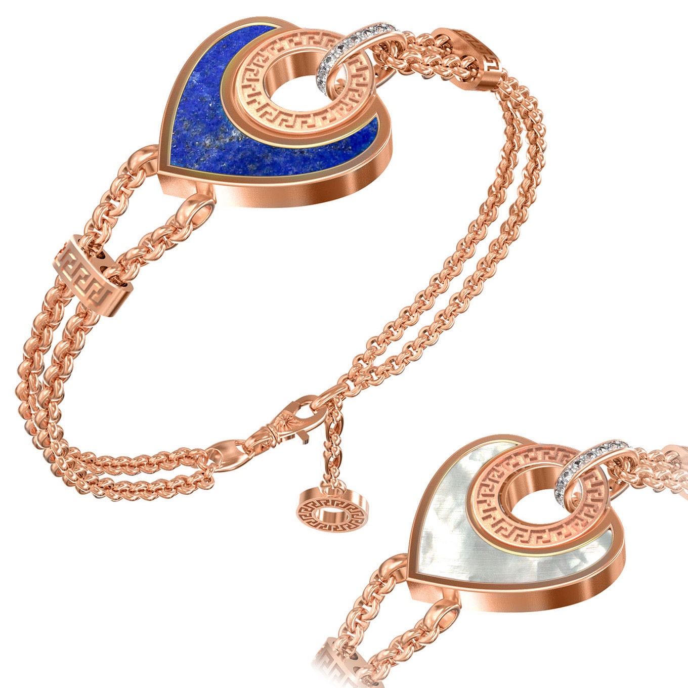 Браслет из золота c фианитом, лазуритом и перламутром