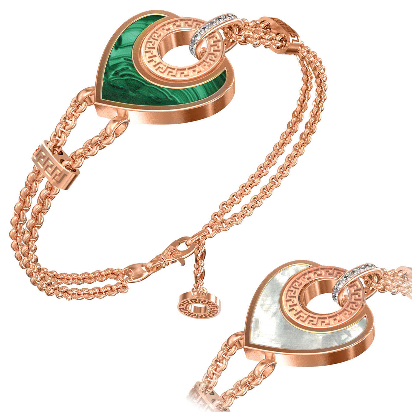 Браслет из золота c фианитом, малахитом и перламутром