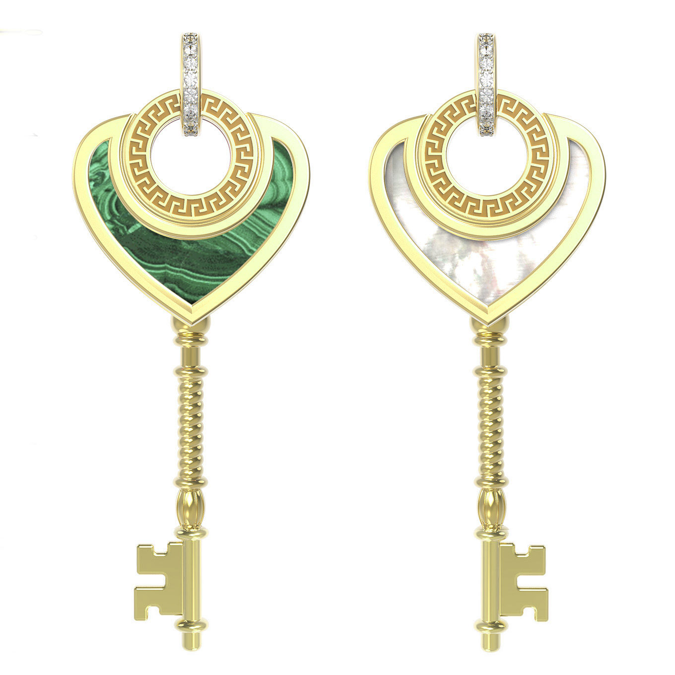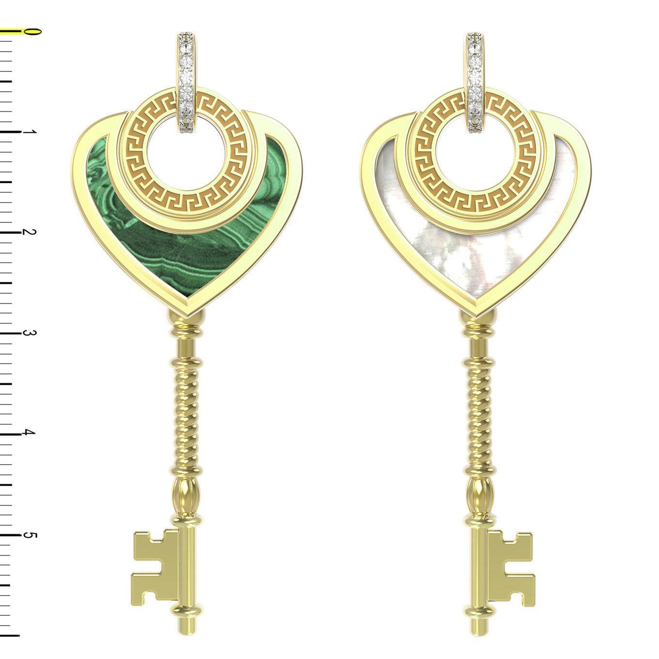 Подвеска из лимонного золота c фианитом, малахитом и перламутром