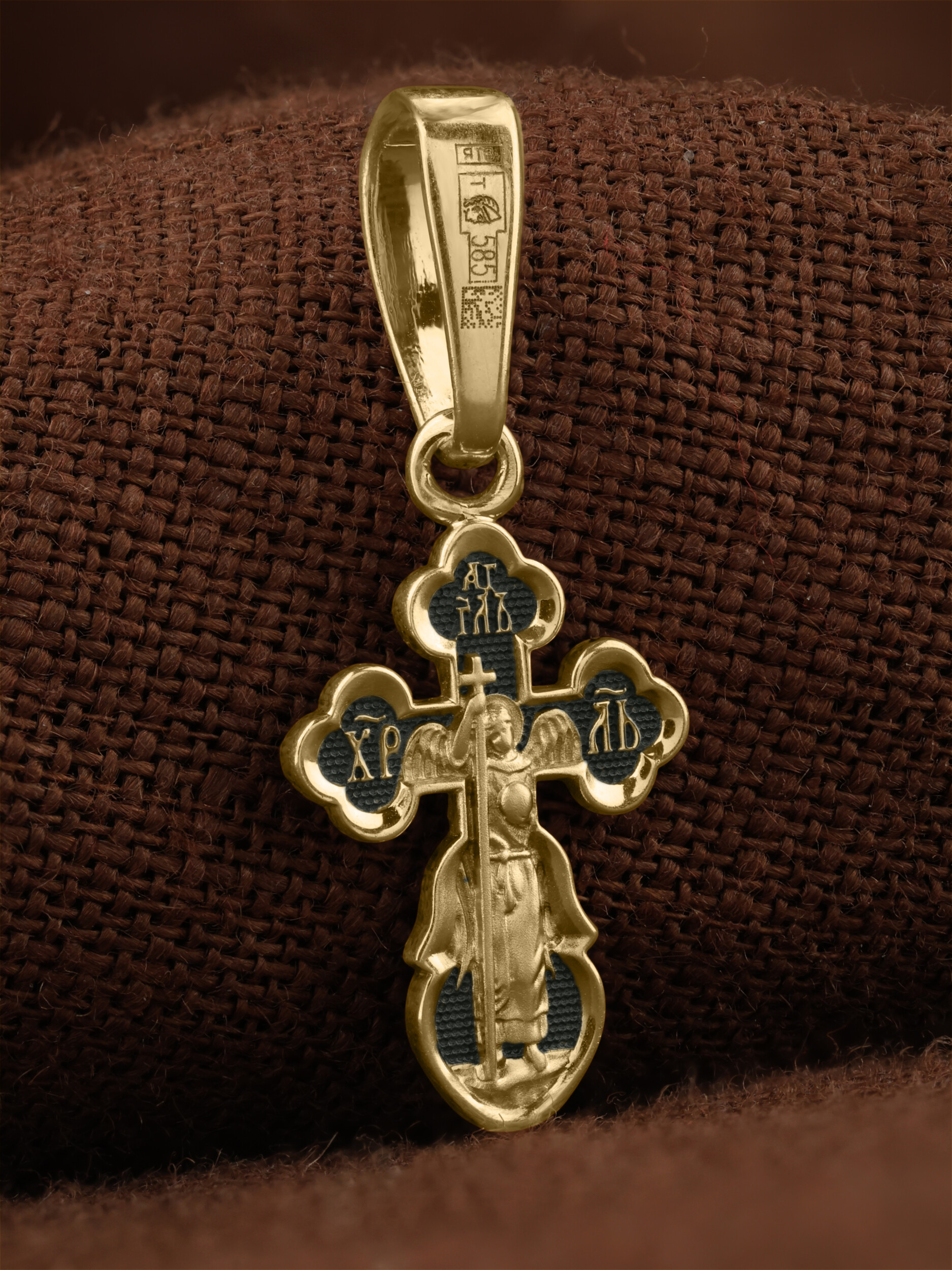 На оборотной стороне креста изображен святой Ангел-Хранитель в виде прекрасного юноши держащего в правой руке крест, а в левой — сферу. Ангел-Хранитель — это Ангел приставляемый Богом к человеку при крещении для охраны и помощи в добрых делах. Невидимо пребывая при нас постоянно, он, руководствуя нас ко спасению, не только по нашему желанию таинственно наставляет нас на все доброе и полезное, не только возносит наши молитвы к Богу, но еще и сам от себя охраняют и защищают нас от врагов видимых и невидимых, ходатайствует за нас пред Богом.