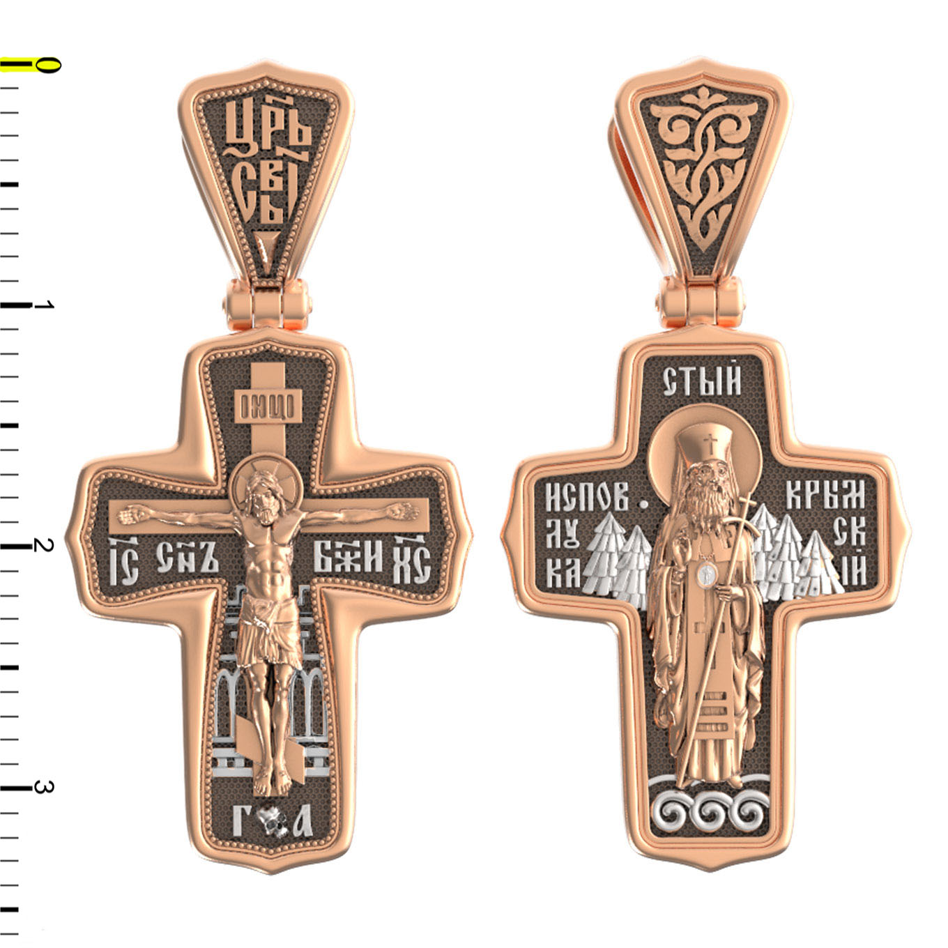 На оборотной стороне Креста помещен образ святителя Луки (Войно-Ясенецкого), архиепископа Симферопольского и Крымского, исповедника (1877–1961). Архиепископ Лука — русский святитель, исповедник, духовный писатель, доктор богословия, а также выдающийся ученый, автор трудов по анестезиологии, профессор хирургии, доктор медицинских наук, лауреат Сталинской премии. Он исповедовал веру Христову в гонениях, тюрьмах, лагерях и ссылке, пережил поношения и пытки, но остался верен Господу. Привел к православной вере тысячи и тысячи людей. Его почитание растет во всем православном мире. Неисчислимо количество свидетельств о чудесной помощи по молитвам к Святителю Луке. Архиепископ Лука советовал: «Главное в жизни — всегда делать людям добро. Если не можешь делать для людей добро большое, постарайся совершить хотя бы малое».