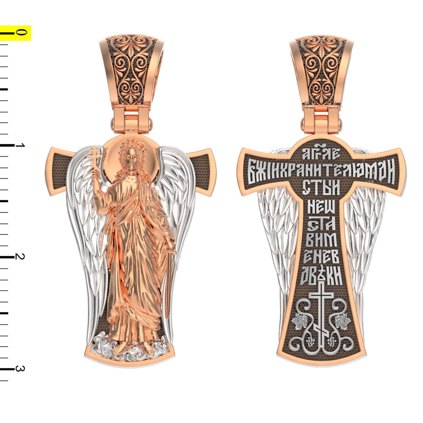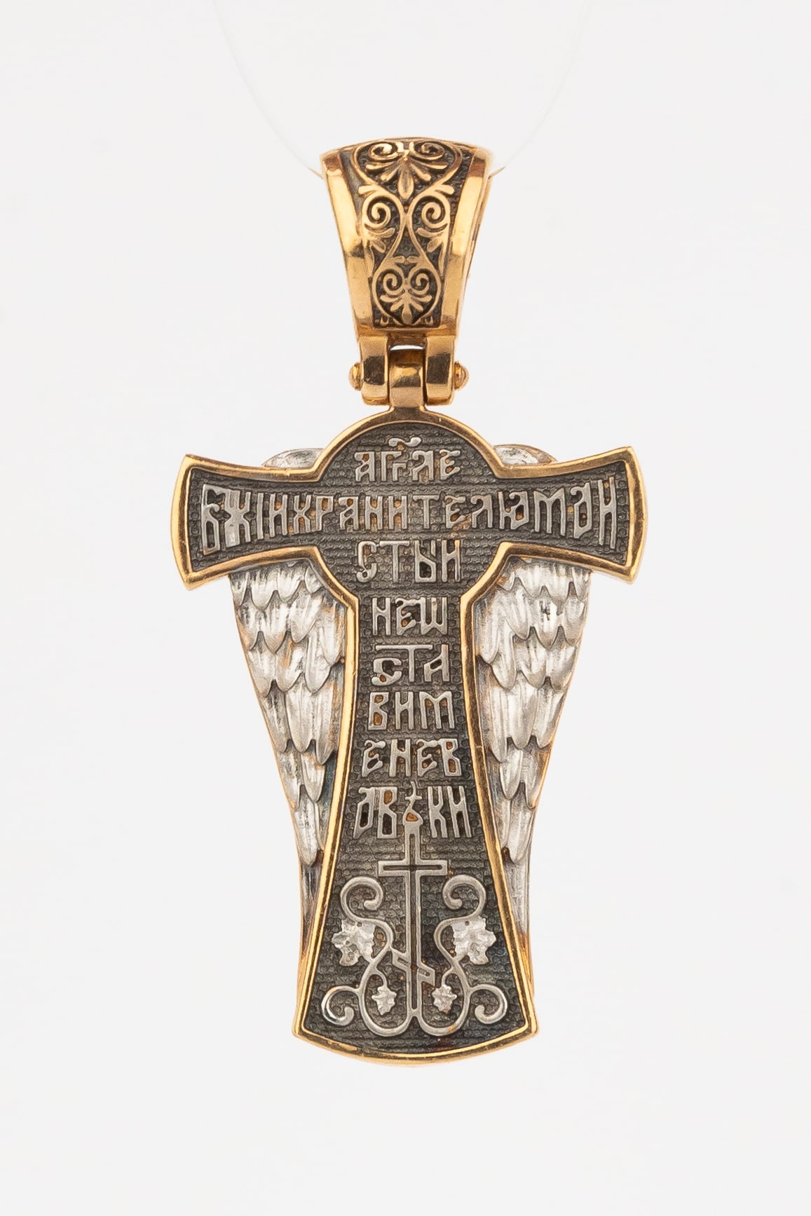На оборотной стороне креста написана молитва: «Ангеле Божий, хранителю мой святый, не остави мене во веки».