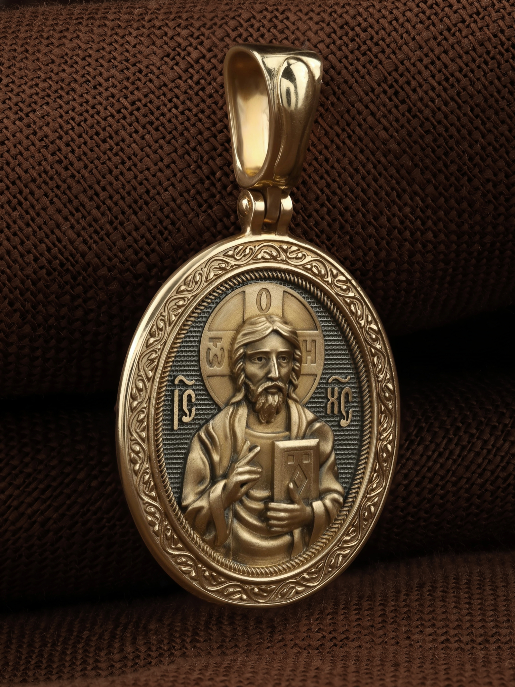 На лицевой стороне креста изображен Иисус Христос в образе Вседержителя, по-гречески «Пантократор». Это древнейший образ Спасителя, на котором Он представлен как властелин и правитель мира. Христос держит в руках Книгу, которая символизирует Книгу Бытия, то есть весь сотворенный Богом мир. В этой Книге судьбы всех людей, живущих на земле. Часто эту Книгу образно называют Книгой Жизни.
