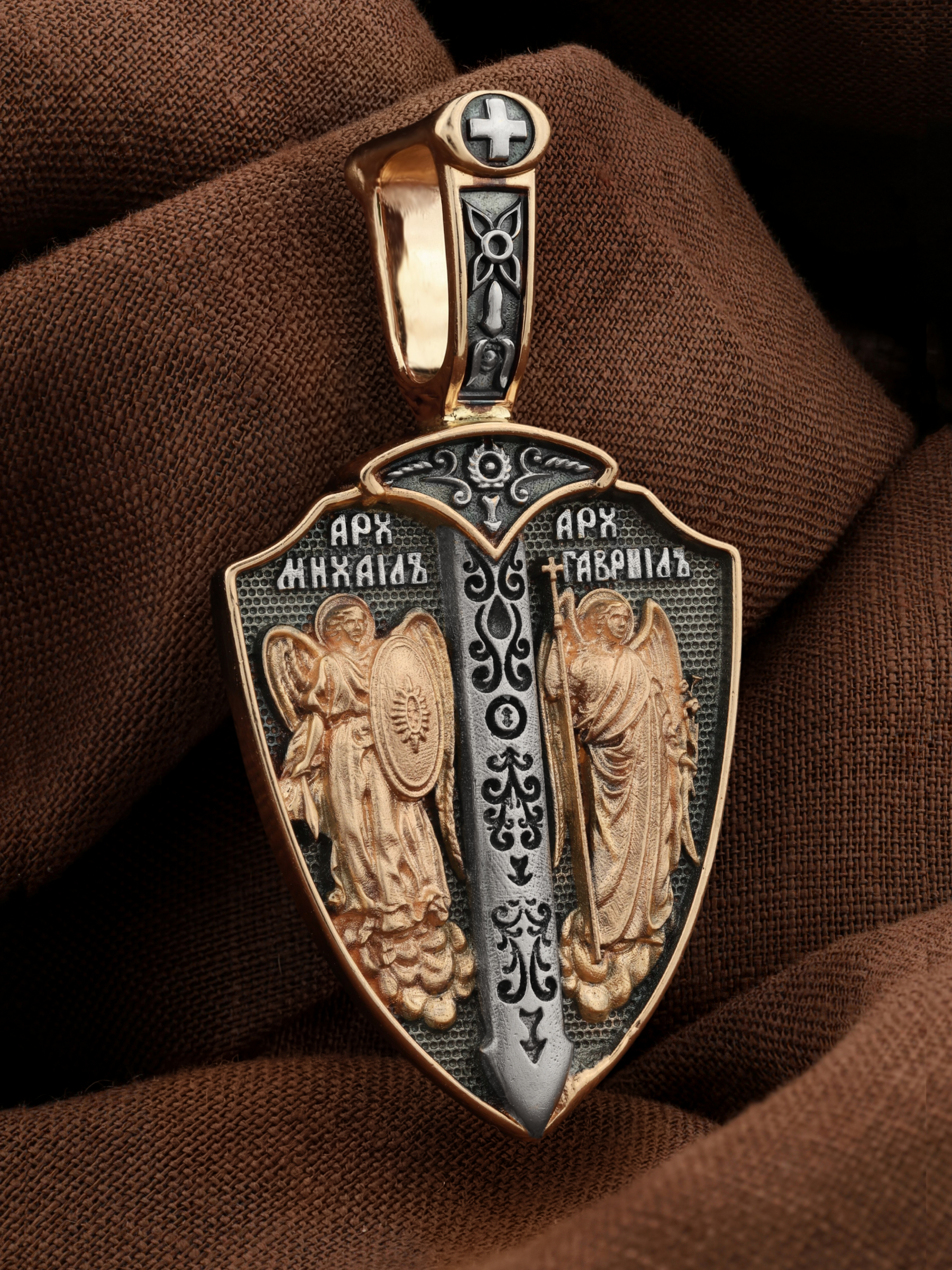 Центральную часть лицевой стороны занимает ростовое изображение Архангелов Михаила и Гавриила — «Святые воеводы». Они выполняют миссию извещать людей обо всех тайнах Бога, открывать все пророчества ангелам, а через них людям. Они приумножают святую веру среди людей, освящая им дорогу.