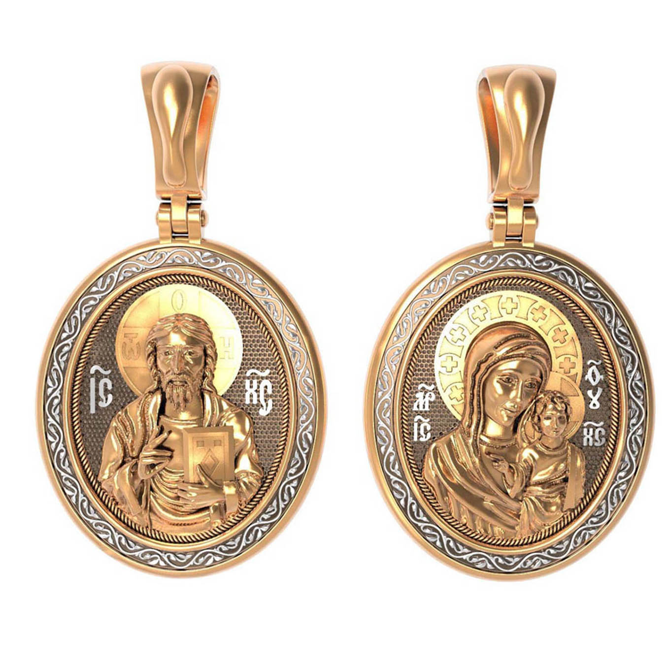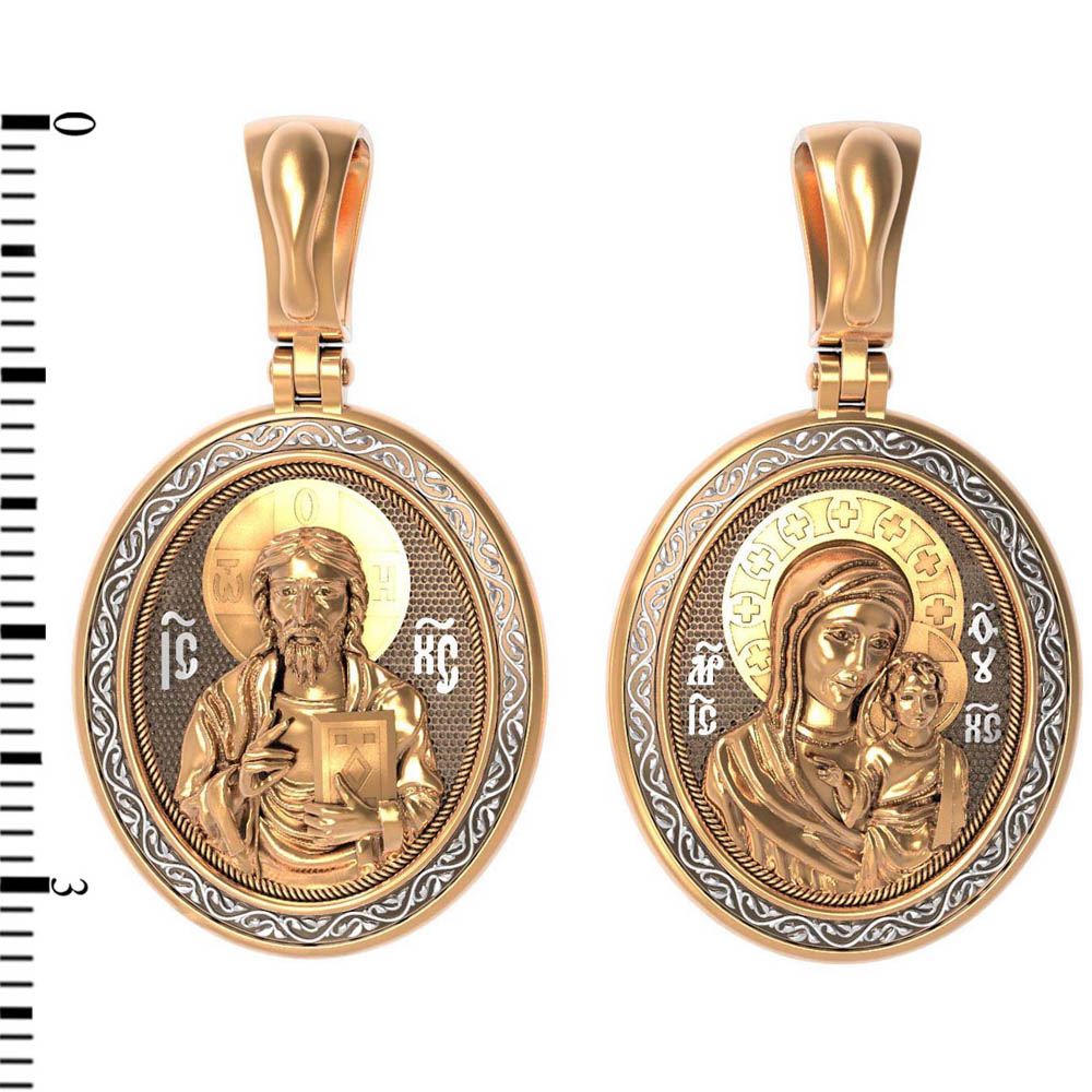 На обороте изображена Казанская икона Божией Матери — одна из самых почитаемых в России чудотворных икон Богородицы. Богословское значение Казанской иконы — указать верующим истинный Путь к спасению, который лежит через Христа. Только Божия Матерь имеет настолько сильное дерзновение к Спасителю, что может ходатайствовать перед Ним за всех верных. Именно этот образ дарится новой повенчанной паре, как хранитель очага и семейная реликвия. Молитва перед Казанской иконой Божьей Матери помогает во всех сложных случаях жизни, в болезнях, во всех печалях, невзгодах, скорбях. Уникальная история появления, чудеса, случившиеся по молитвам православных людей возле образа — все это делает Казанскую Богородицу особенной, среди тысяч других икон.