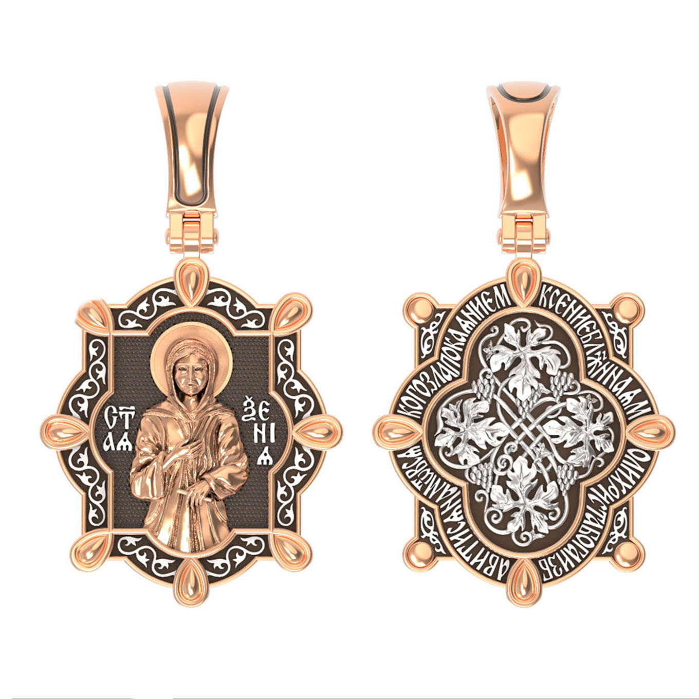 На лицевой стороне образка изображена Святая блаженная Ксения Петербургская, в миру Ксения Григорьевна Петрова.