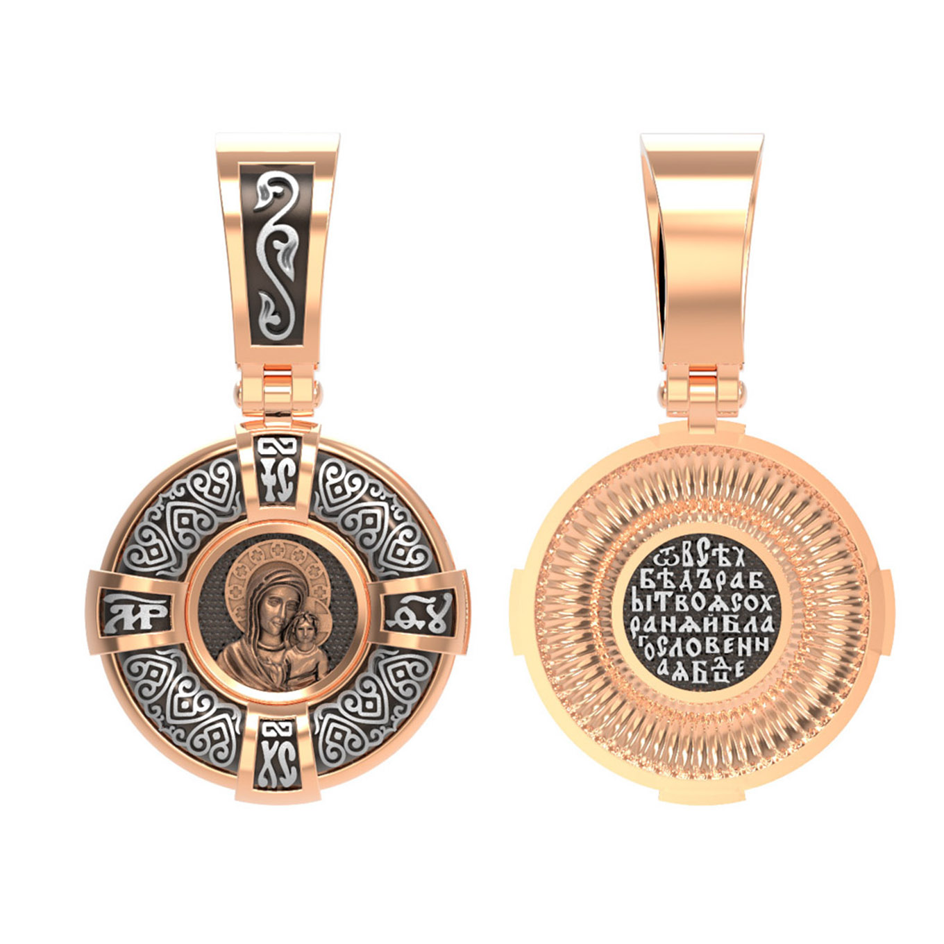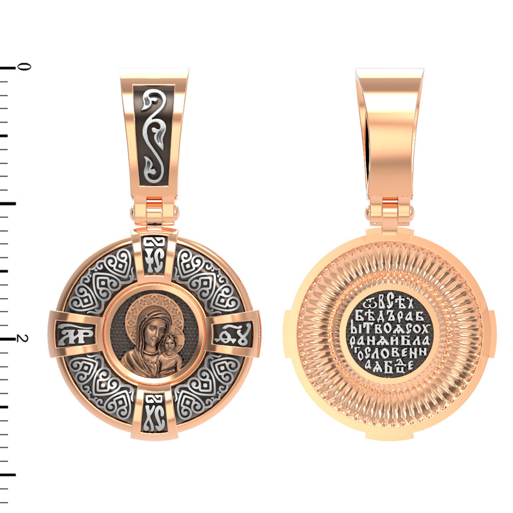 На лицевой части образка изображена Казанская икона Пресвятой Богородицы — одна из самых почитаемых в России чудотворных икон Богородицы. Богословское значение Казанской иконы — указать верующим истинный Путь к спасению, который лежит через Христа. Только Божия Матерь имеет настолько сильное дерзновение к Спасителю, что может ходатайствовать перед Ним за всех верных. Именно этот образ дарится новой повенчанной паре, как хранитель очага и семейная реликвия. Молитва перед Казанской иконой Божьей Матери помогает во всех сложных случаях жизни, в болезнях, во всех печалях, невзгодах, скорбях. Уникальная история появления, чудеса, случившиеся по молитвам православных людей возле образа — все это делает Казанскую Богородицу особенной, среди тысяч других икон.