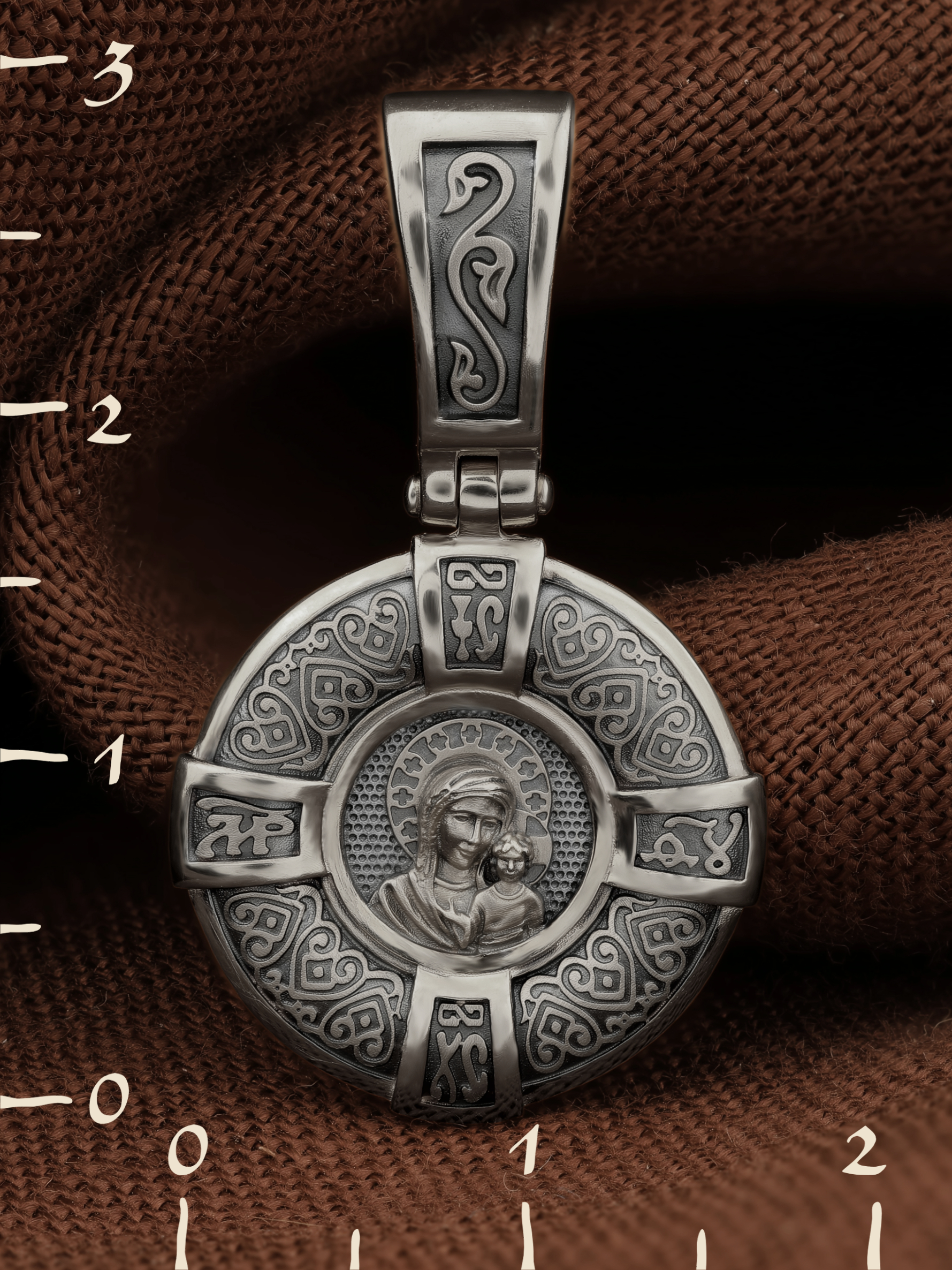 На лицевой части образка изображена Казанская икона Пресвятой Богородицы — одна из самых почитаемых в России чудотворных икон Богородицы. Богословское значение Казанской иконы — указать верующим истинный Путь к спасению, который лежит через Христа. Только Божия Матерь имеет настолько сильное дерзновение к Спасителю, что может ходатайствовать перед Ним за всех верных. Именно этот образ дарится новой повенчанной паре, как хранитель очага и семейная реликвия. Молитва перед Казанской иконой Божьей Матери помогает во всех сложных случаях жизни, в болезнях, во всех печалях, невзгодах, скорбях. Уникальная история появления, чудеса, случившиеся по молитвам православных людей возле образа — все это делает Казанскую Богородицу особенной, среди тысяч других икон.