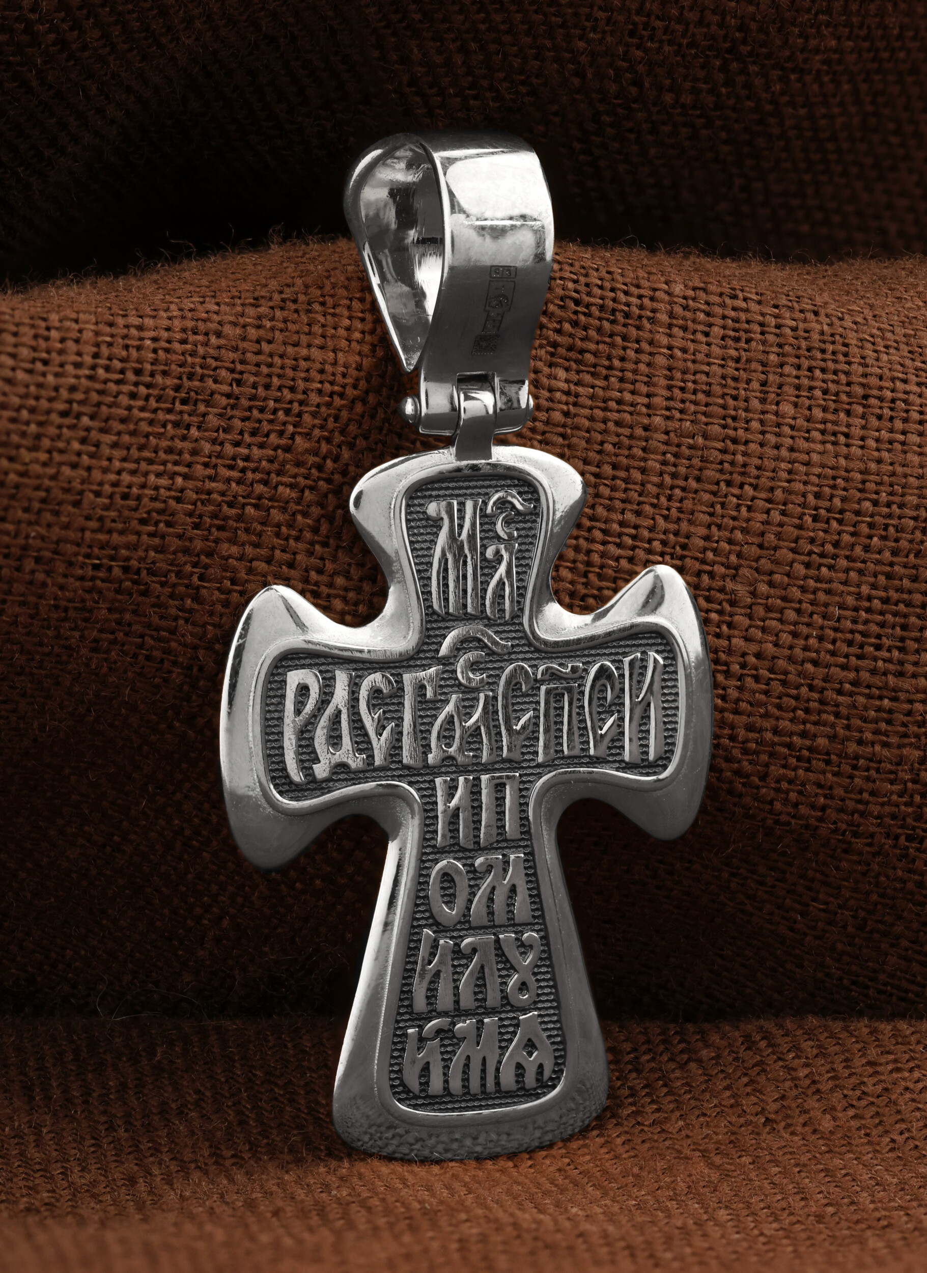 Всю оборотную часть креста занимает молитва обращенная к Господу: «Милостивый Господи, спаси и помилуй мя».