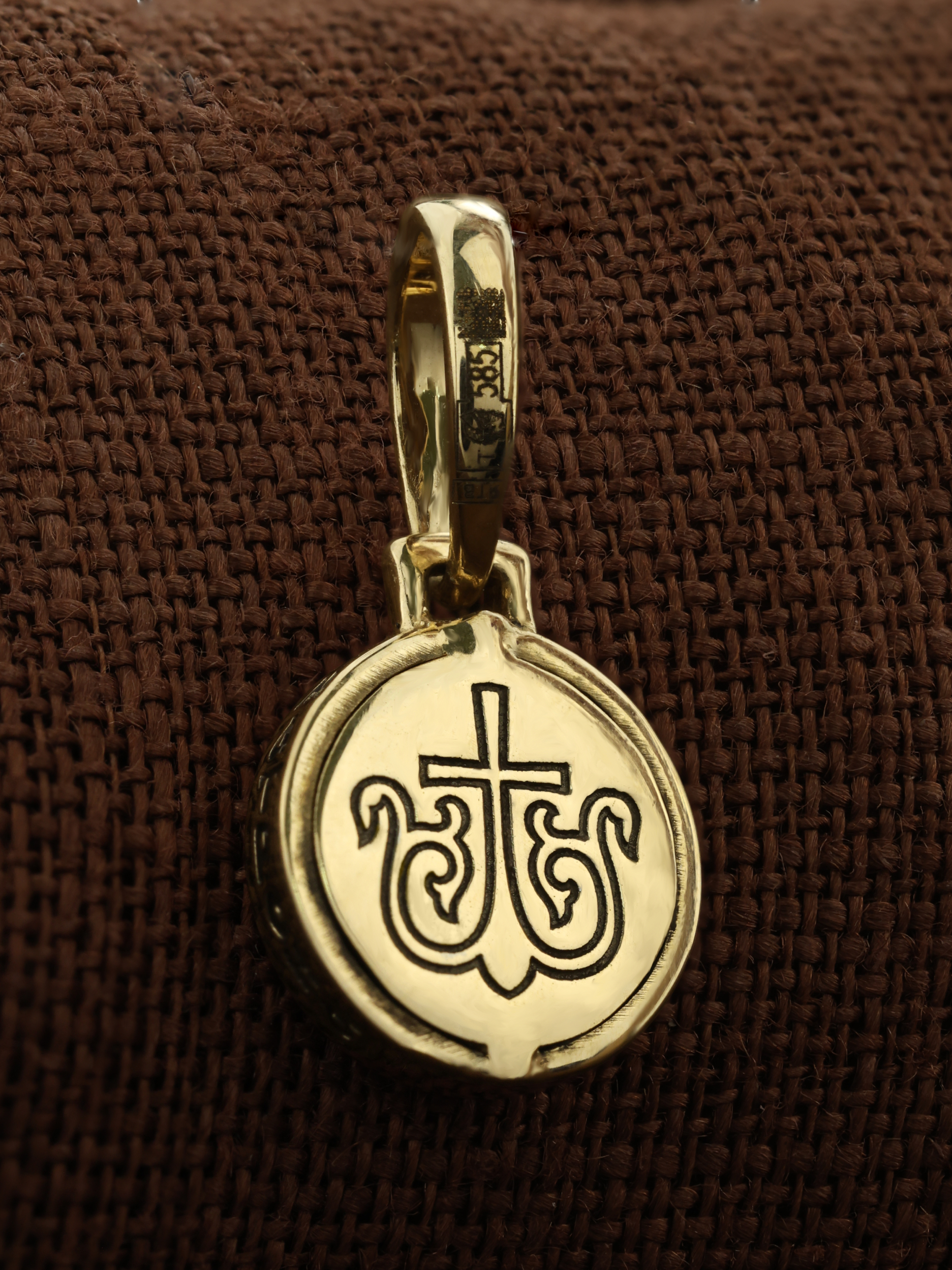 На обротной стороне изображён Крест «виноградная лоза». Крест, имеющий наклонное подножие, а из нижнего конца как бы вьются вверх два стебля с листами и с виноградной кистью на каждом. «Я есмь лоза, а вы ветви; кто пребывает во Мне, и Я в нем, тот приносит много плода» (Ин. 15, 5). Виноградной лозой называл себя Сам Спаситель и с тех пор образ этот стал глубоко символичен- Главное значение виноградной лозы для христиан, — пишет А. С. Уваров, — находилось в символической связи с Таинством Причащения. Причащаясь, пребываем мы во Господе, и Он в нас, и тогда получаем много «плода духовного».