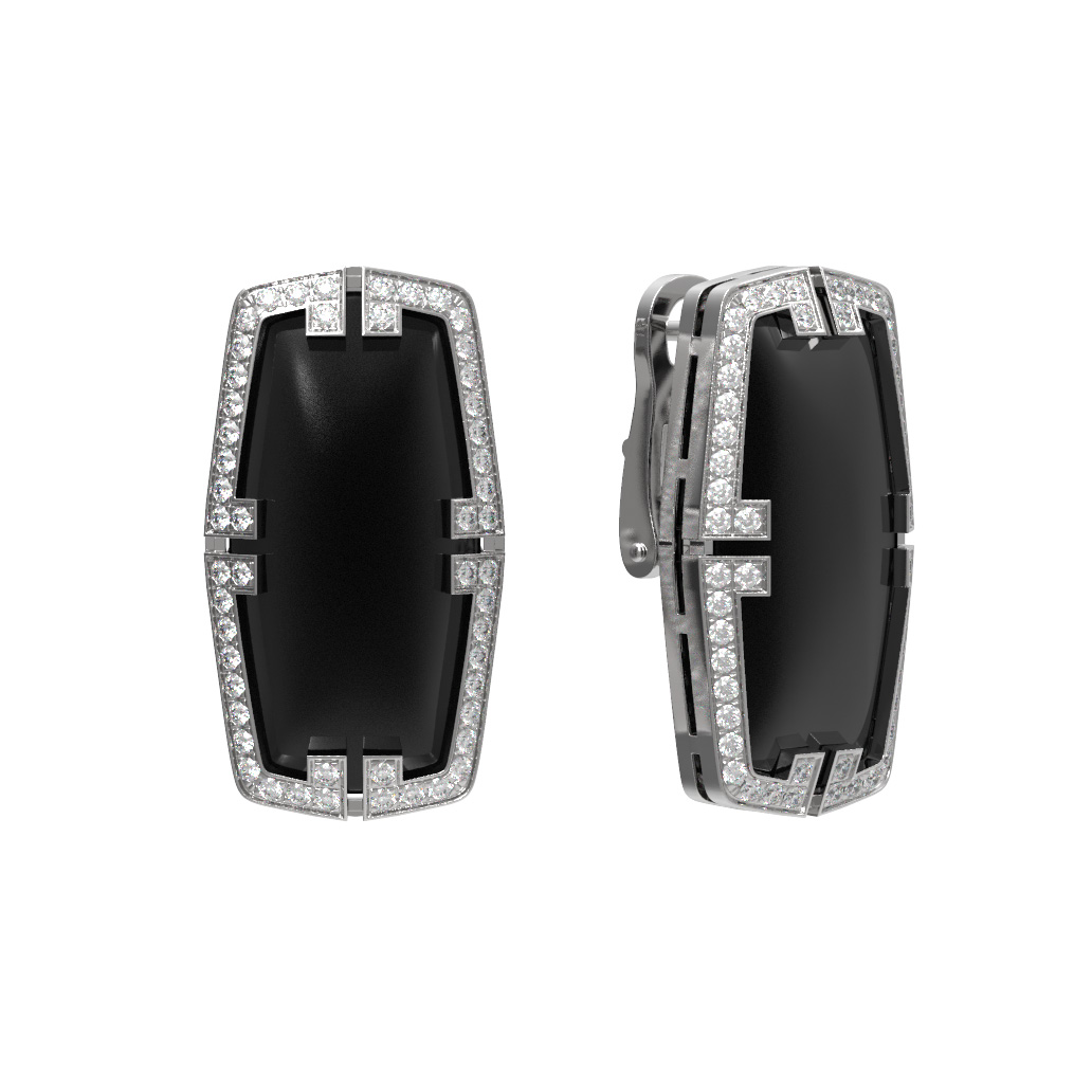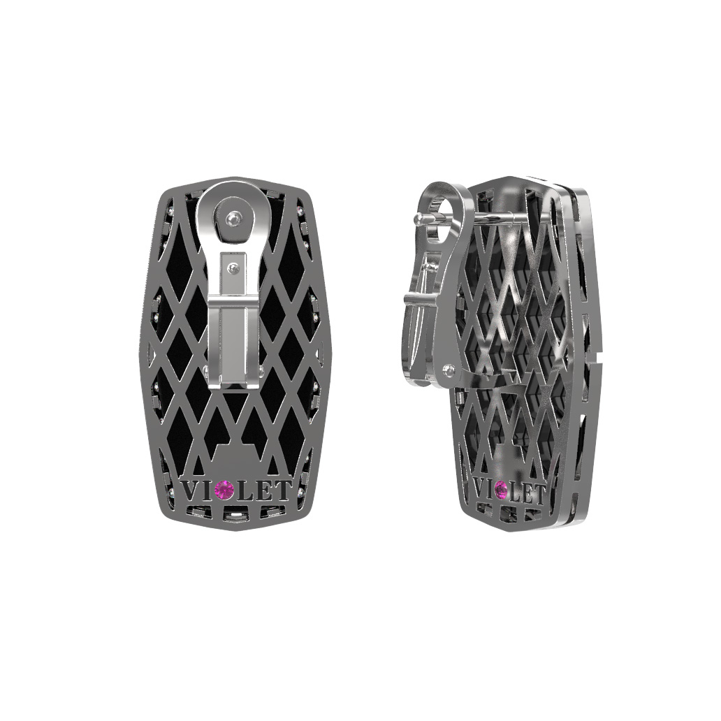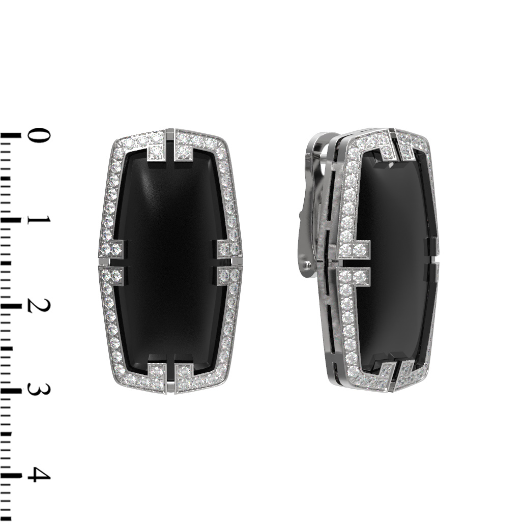 Серьги из белого золота c бриллиантами, рубином и ониксом