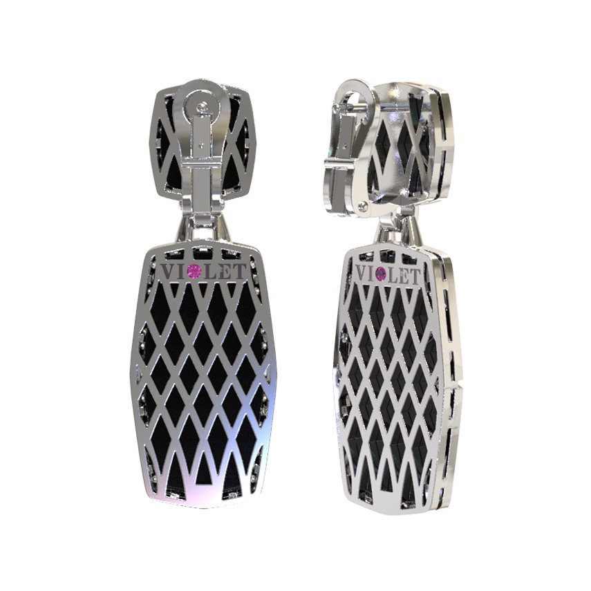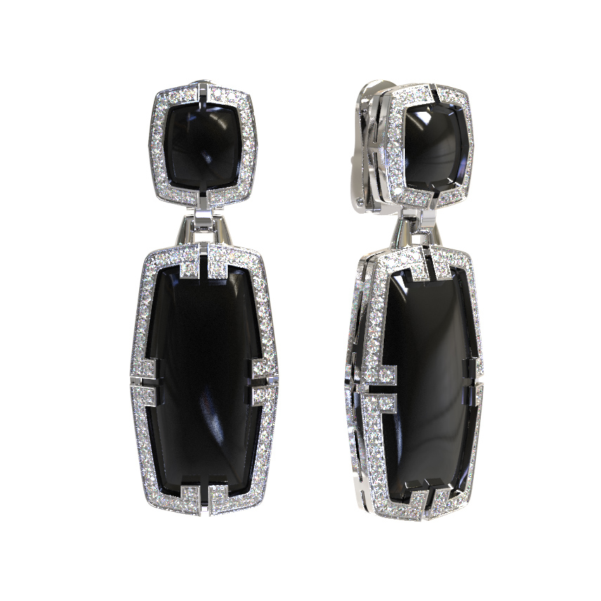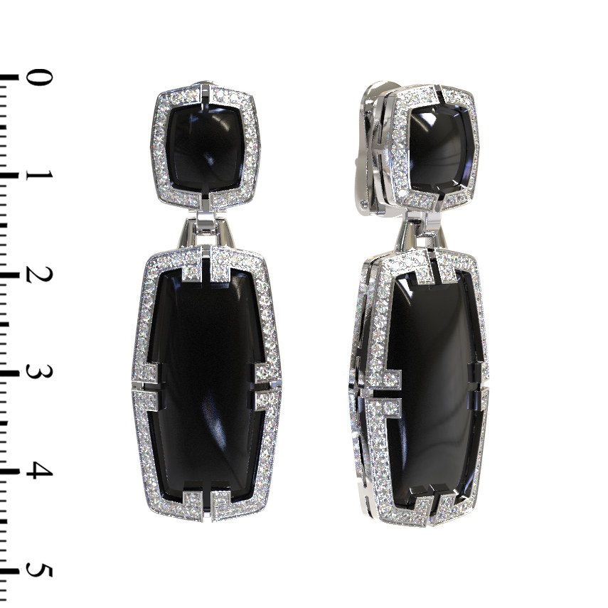 Серьги из белого золота c бриллиантами, рубином и ониксом