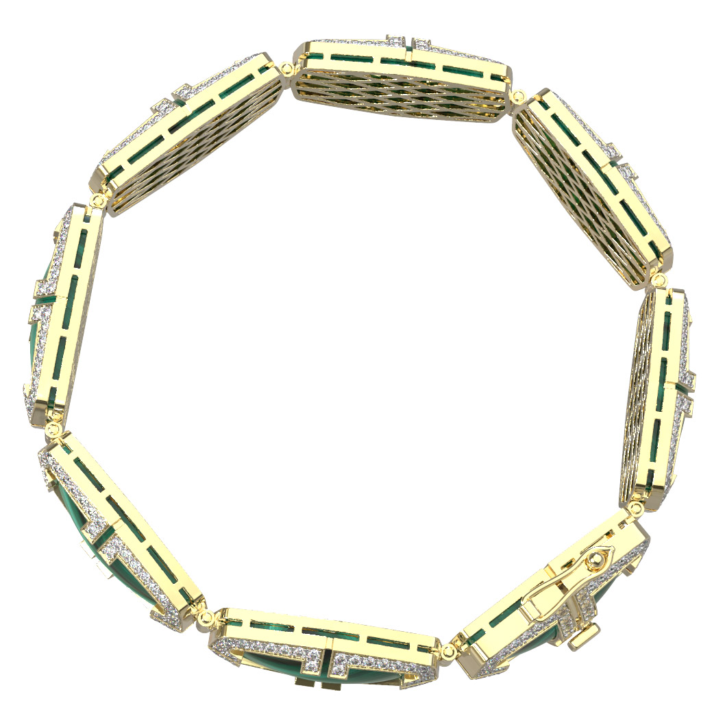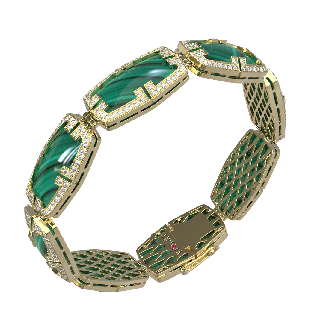Браслет из лимонного золота c бриллиантами, рубином и малахитом