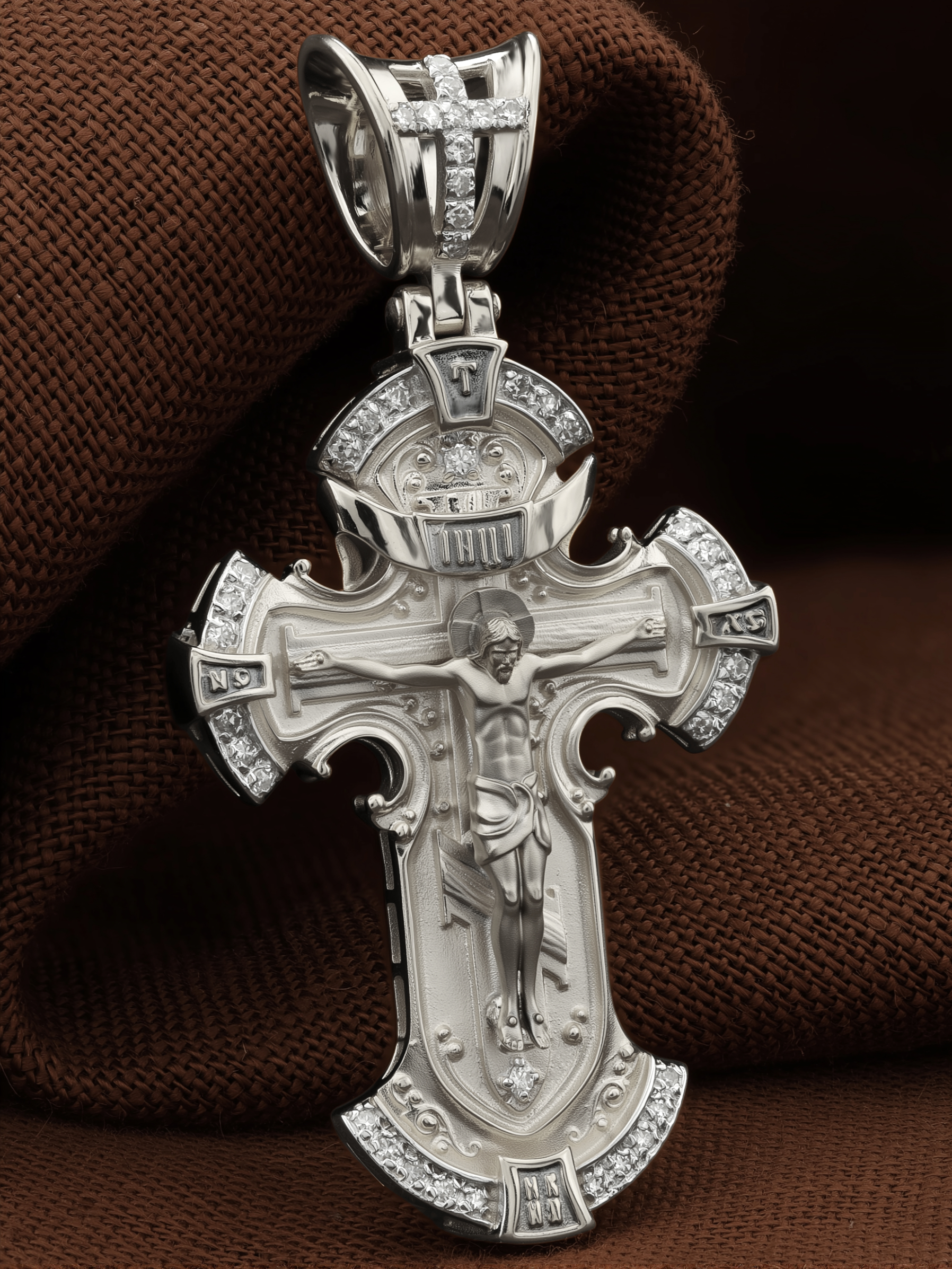 Крест из белого золота c бриллиантами