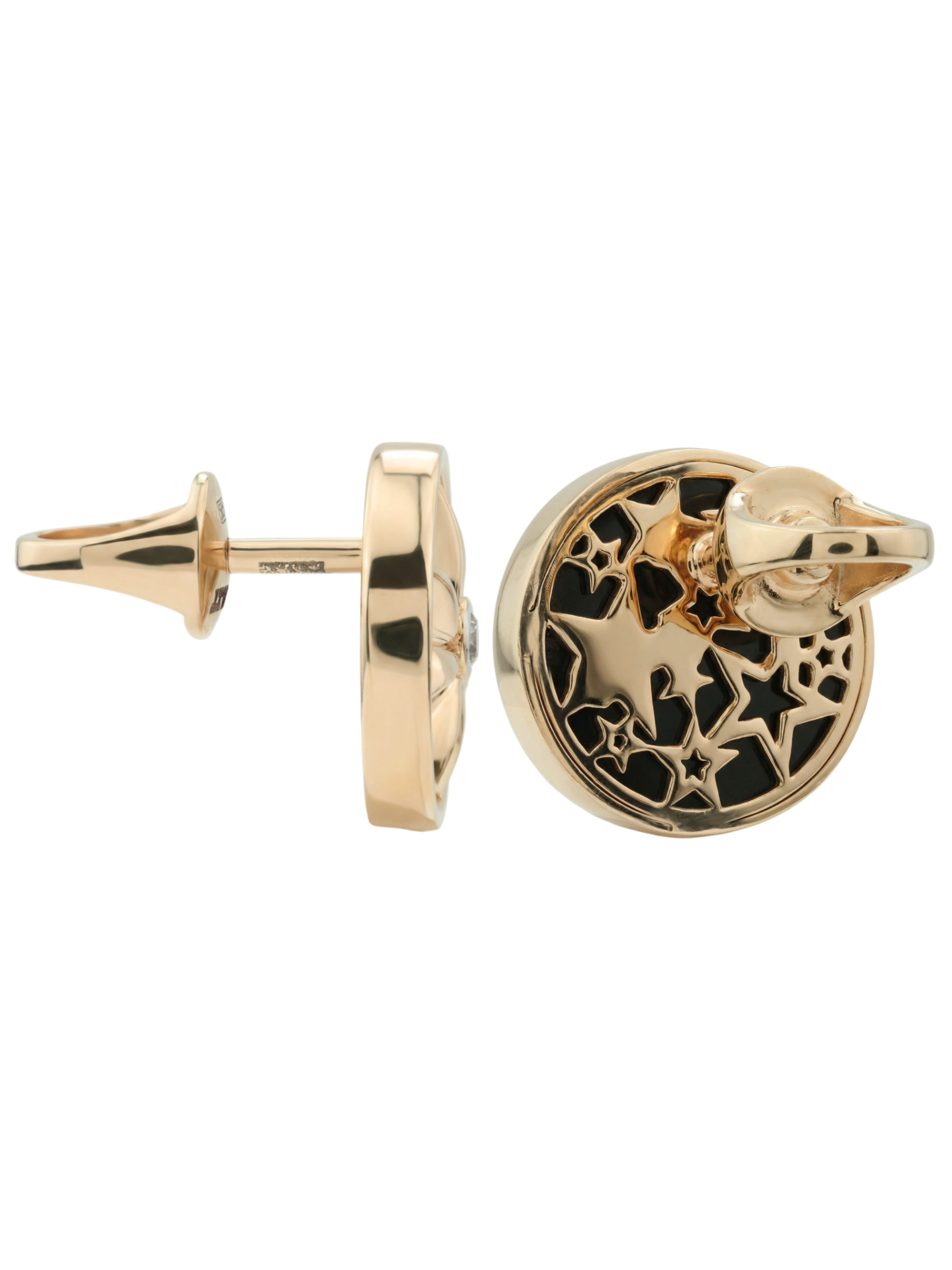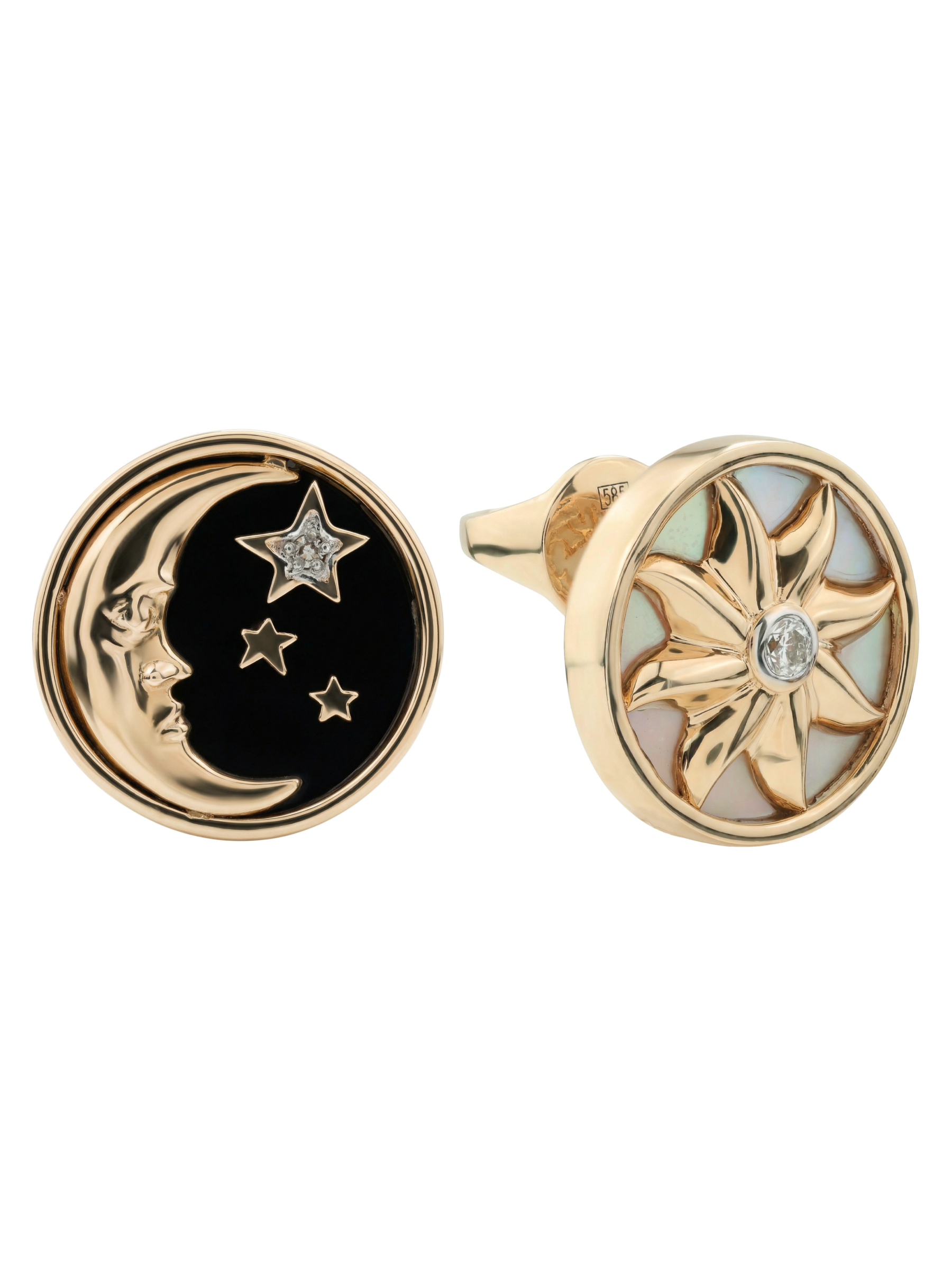 Серьги из золота c бриллиантами, ониксом и перламутром
