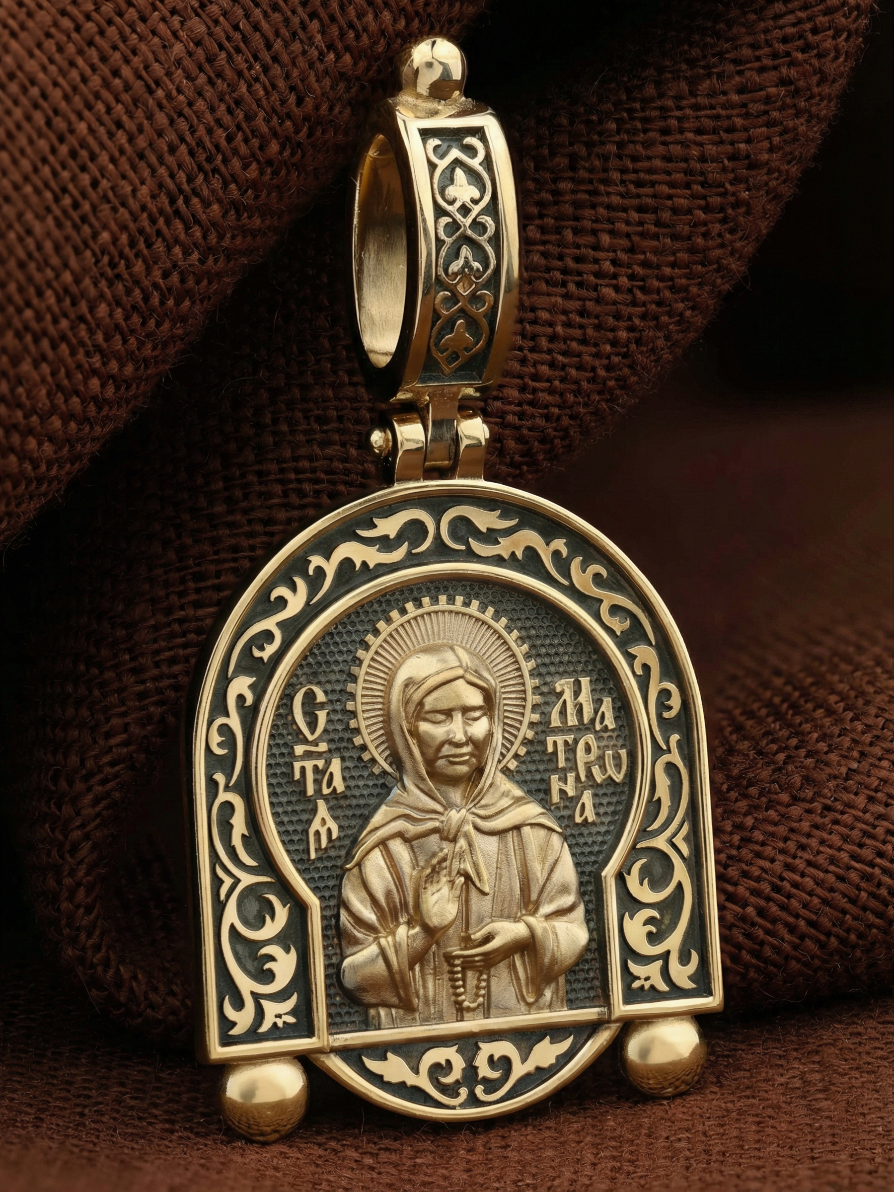 На лицевой стороне образка изображена Святая Матрона Московская.