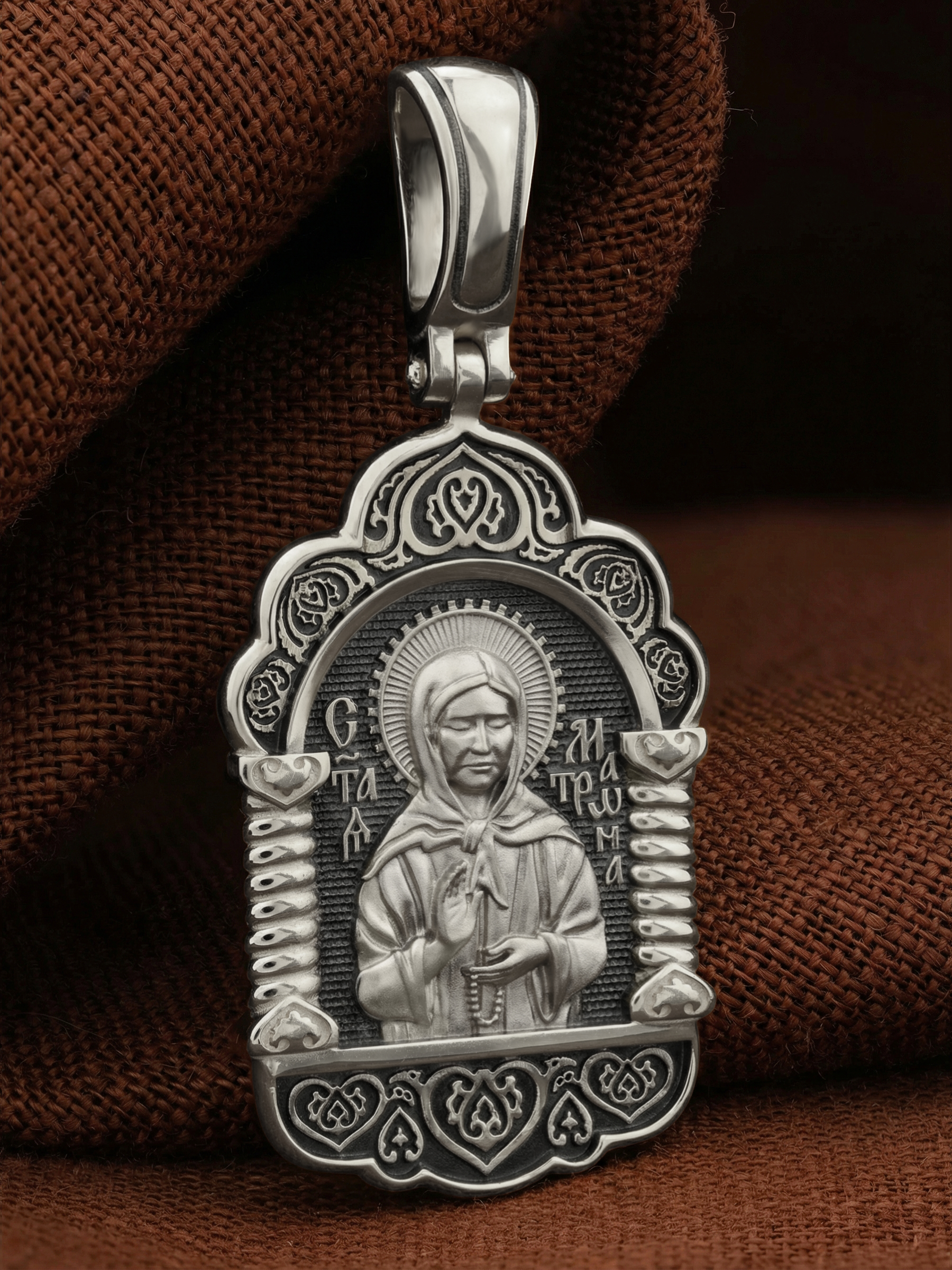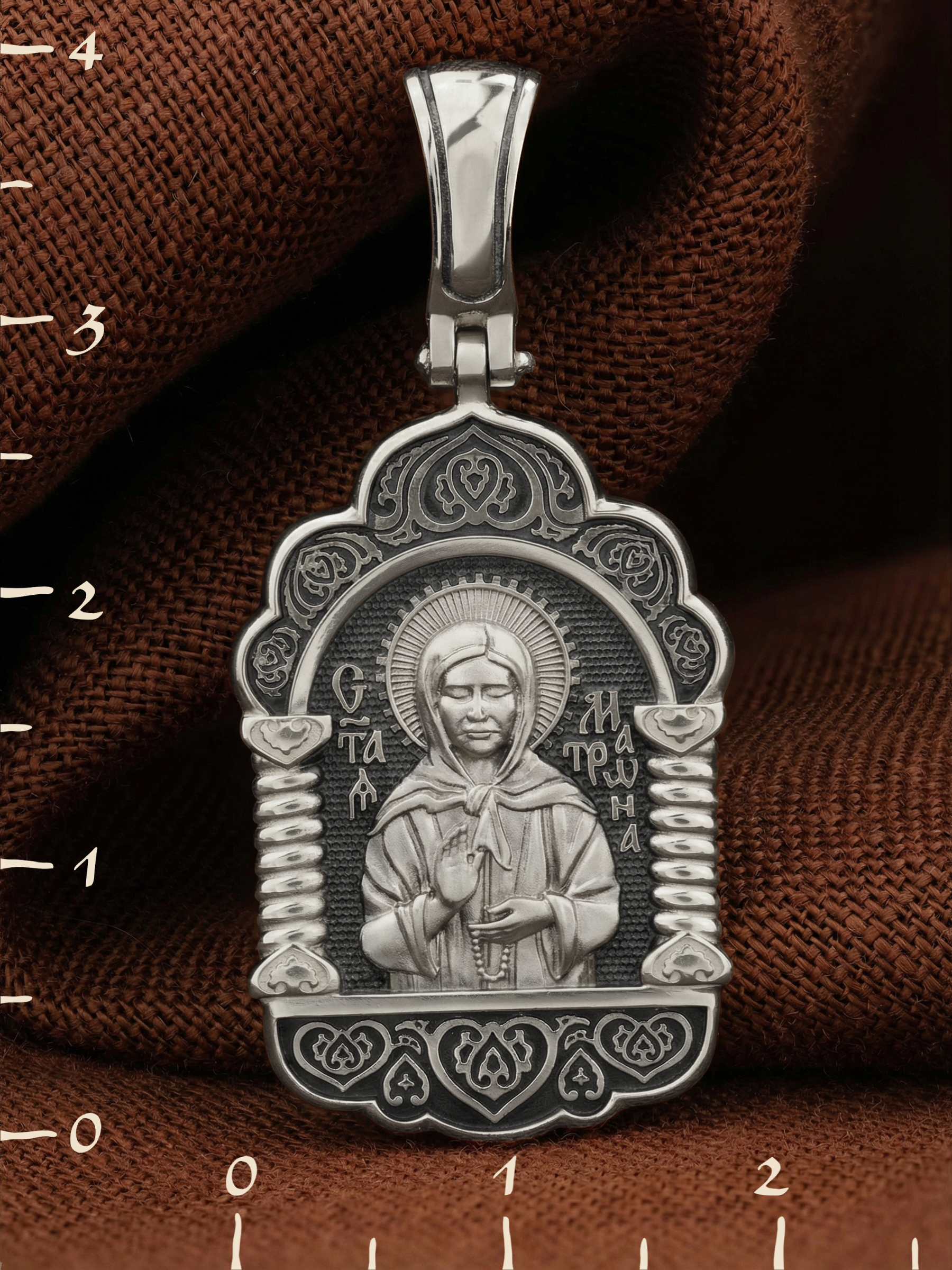 На лицевой стороне образка изображена Святая Матрона Московская.