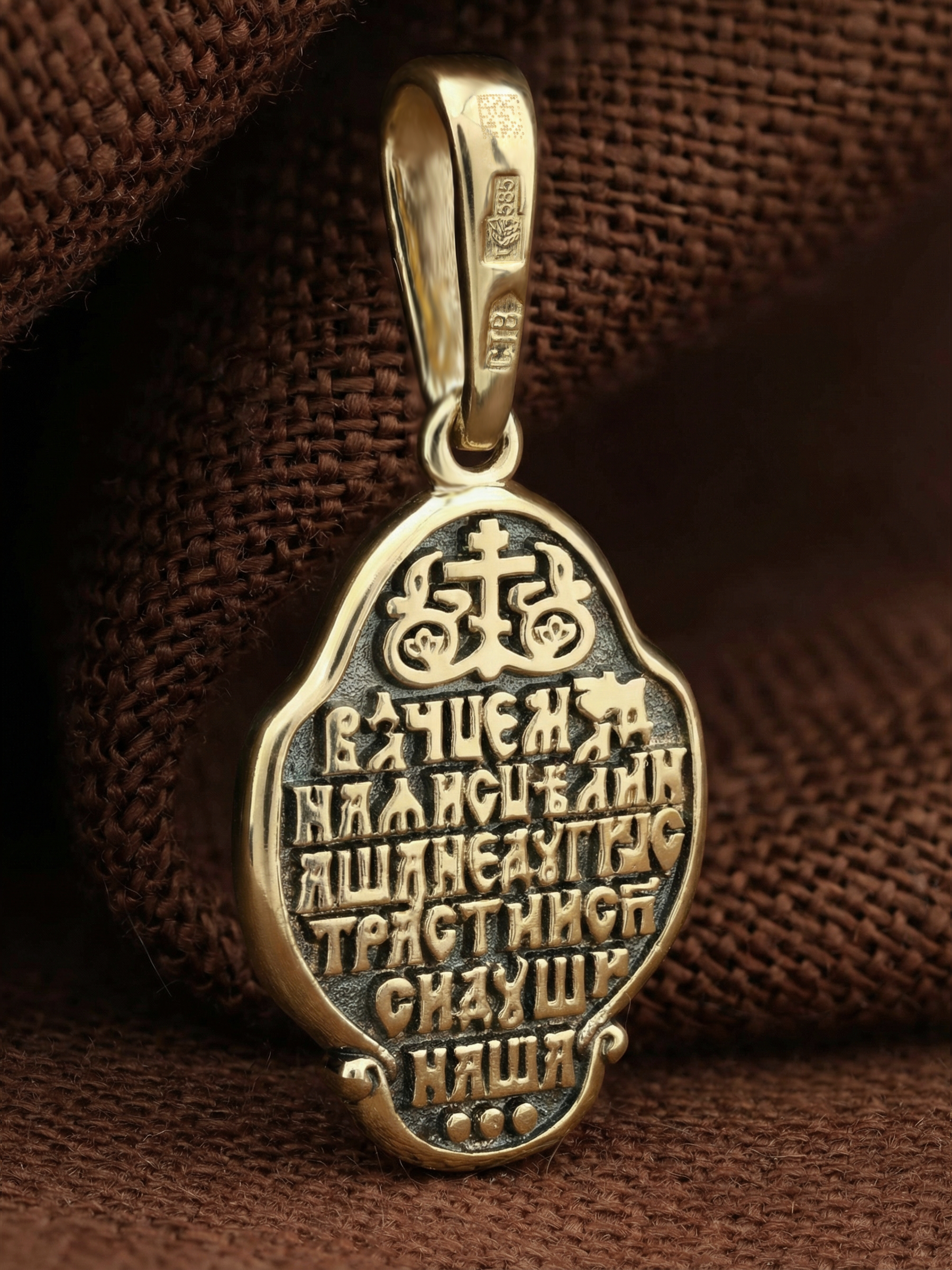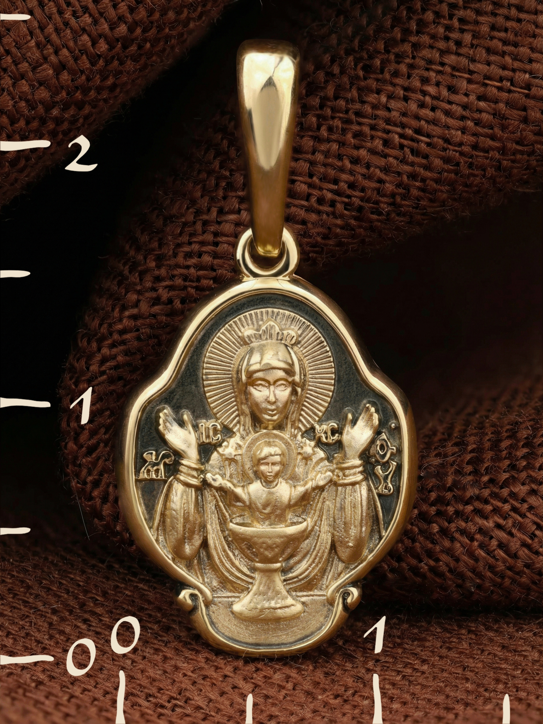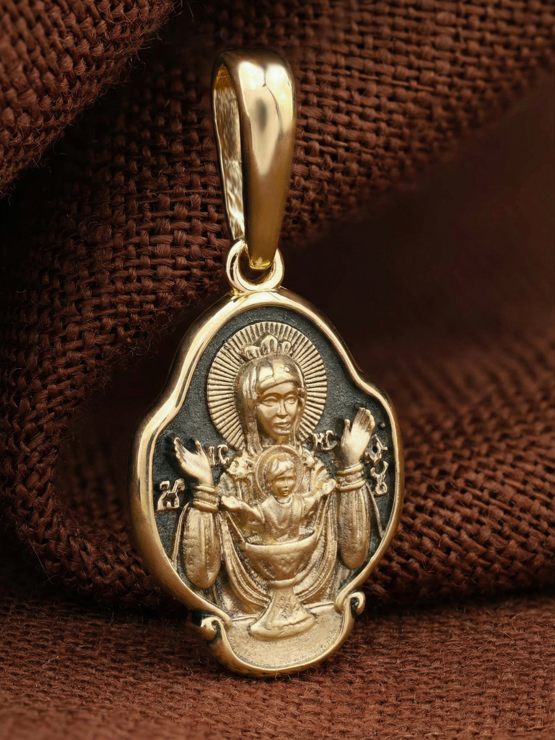 На лицевой части образка изображена икона Божией Матери «Неупиваемая чаша». Икона славится помощью в исцелении зависимостей, помогает людям обрести свободу от греховных страстей.