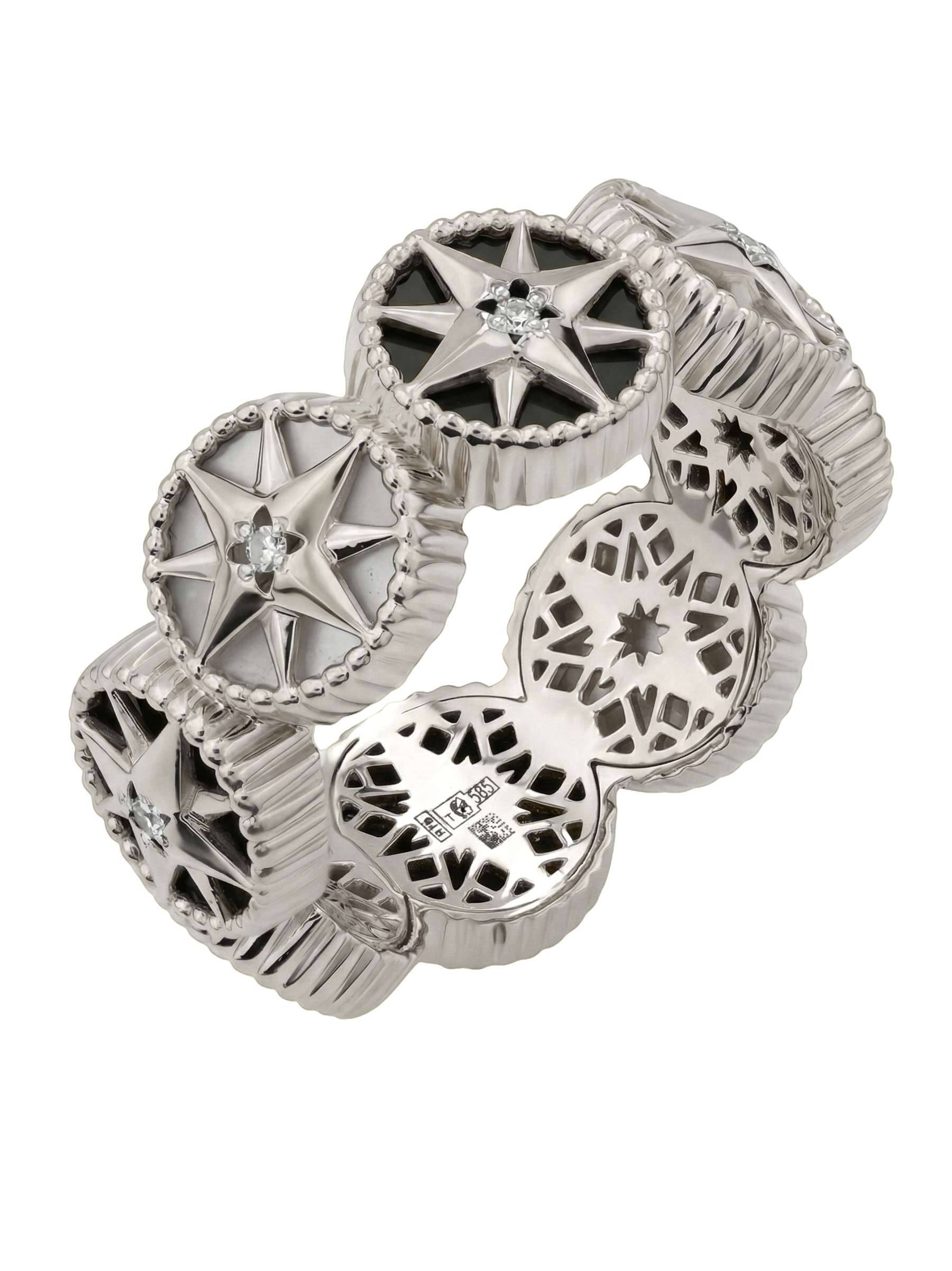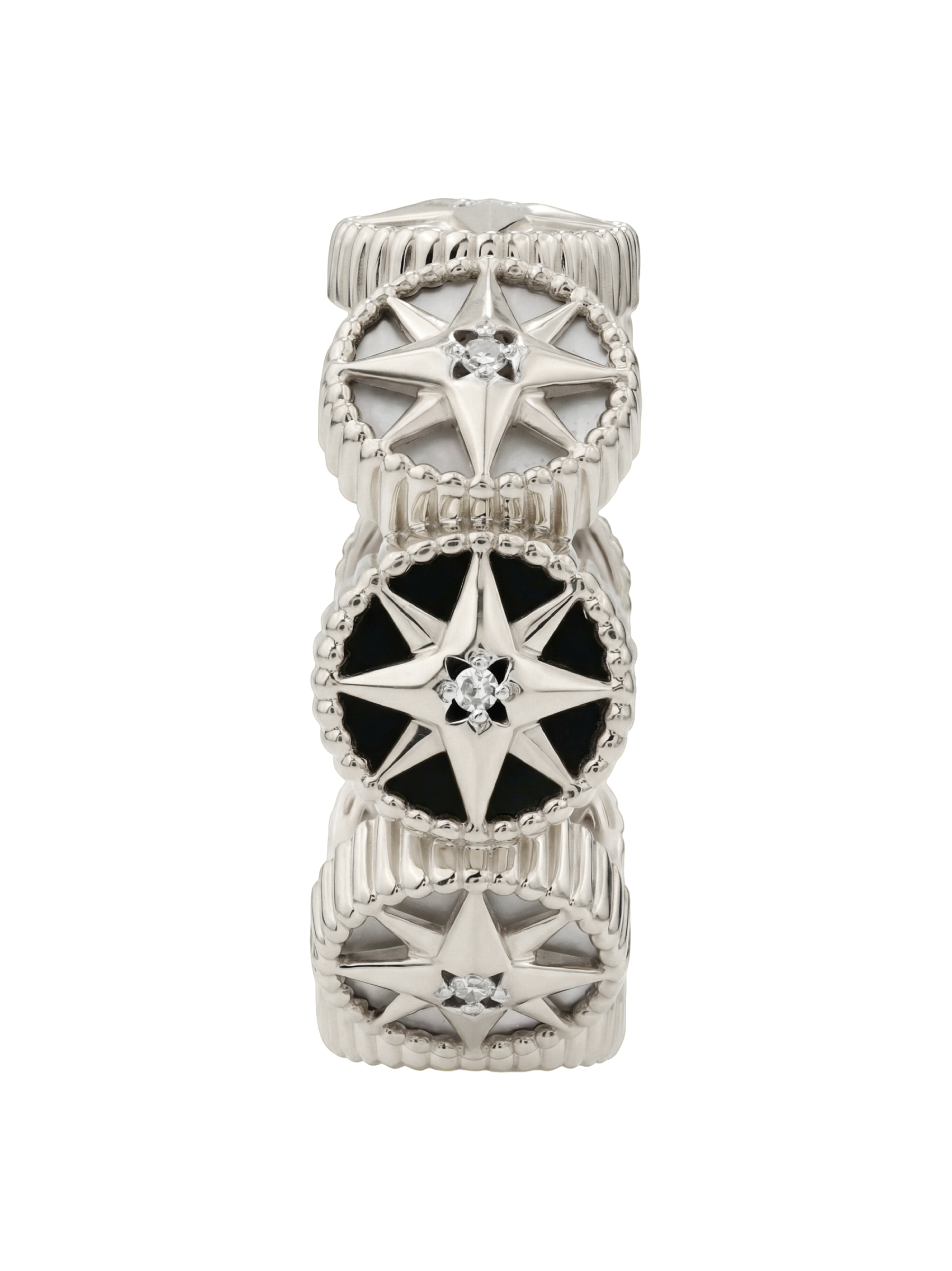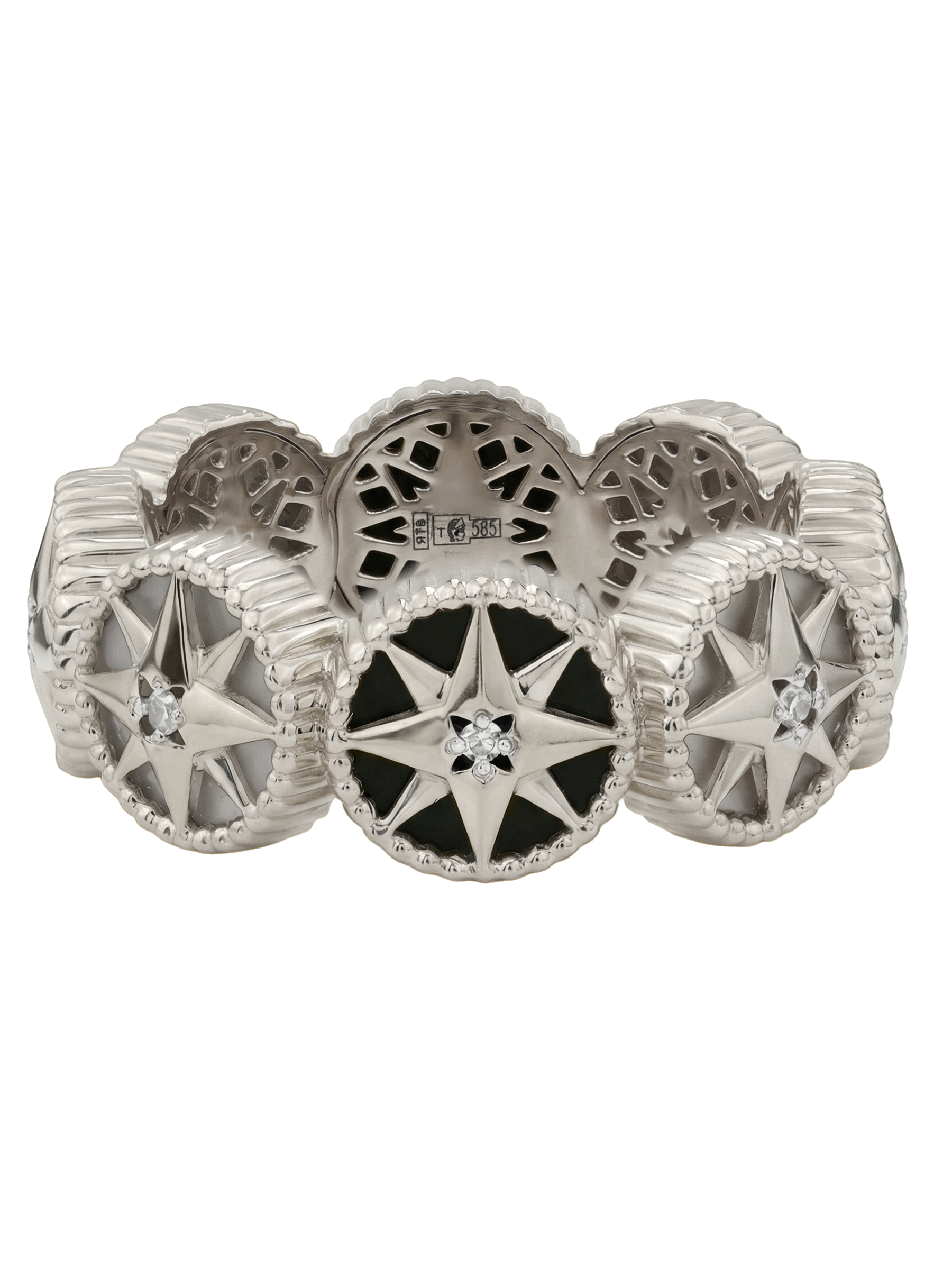 Кольцо из белого золота c бриллиантами, ониксом и перламутром