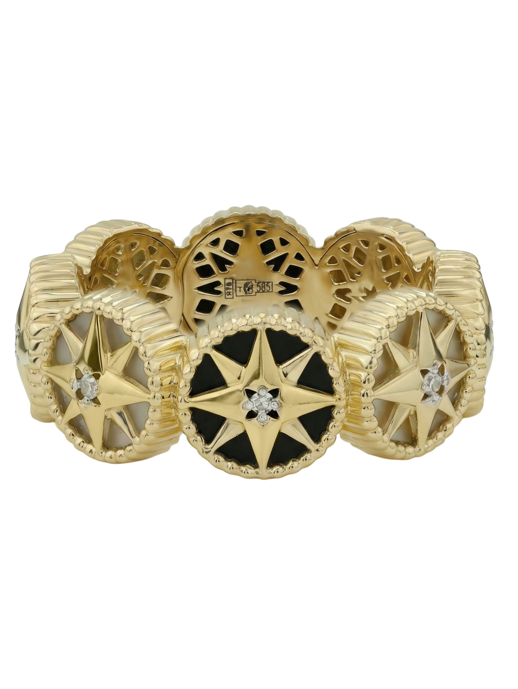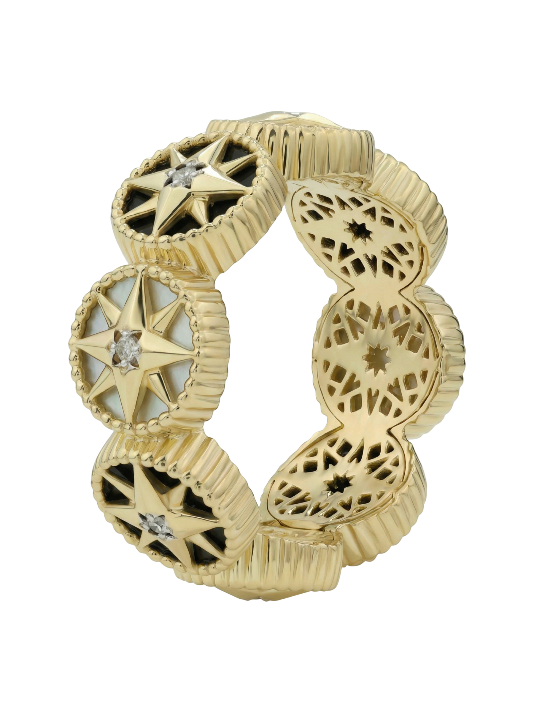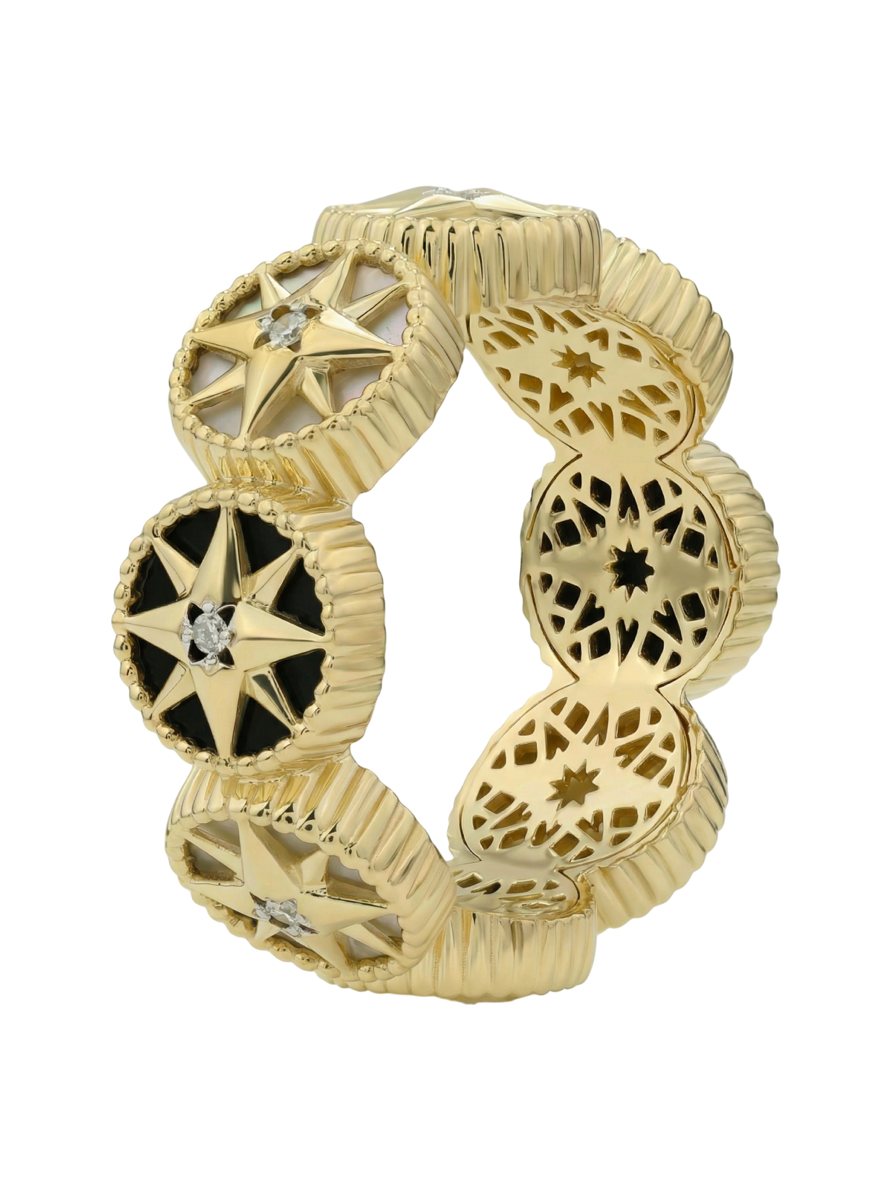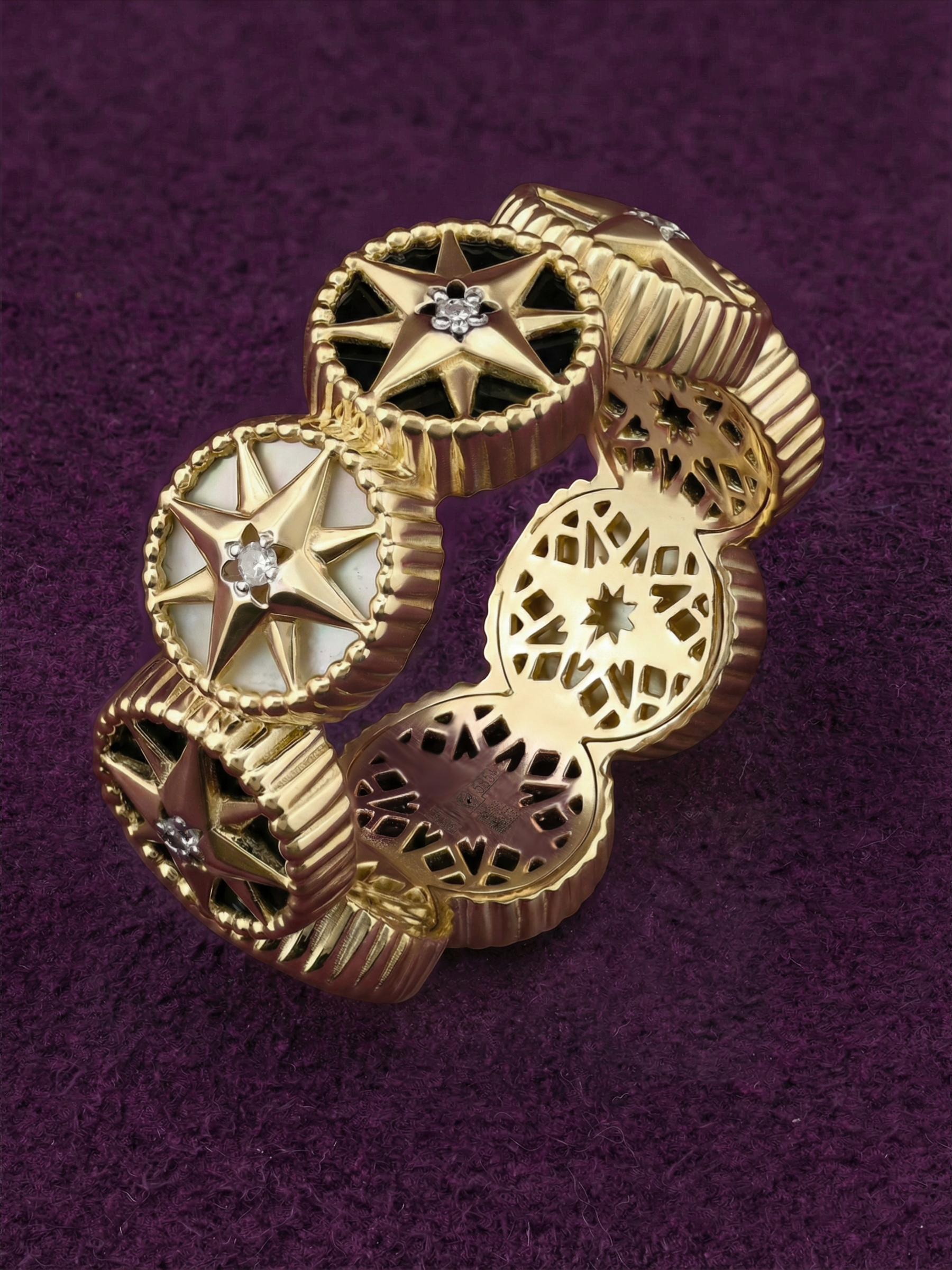 Кольцо из лимонного золота c бриллиантами, ониксом и перламутром