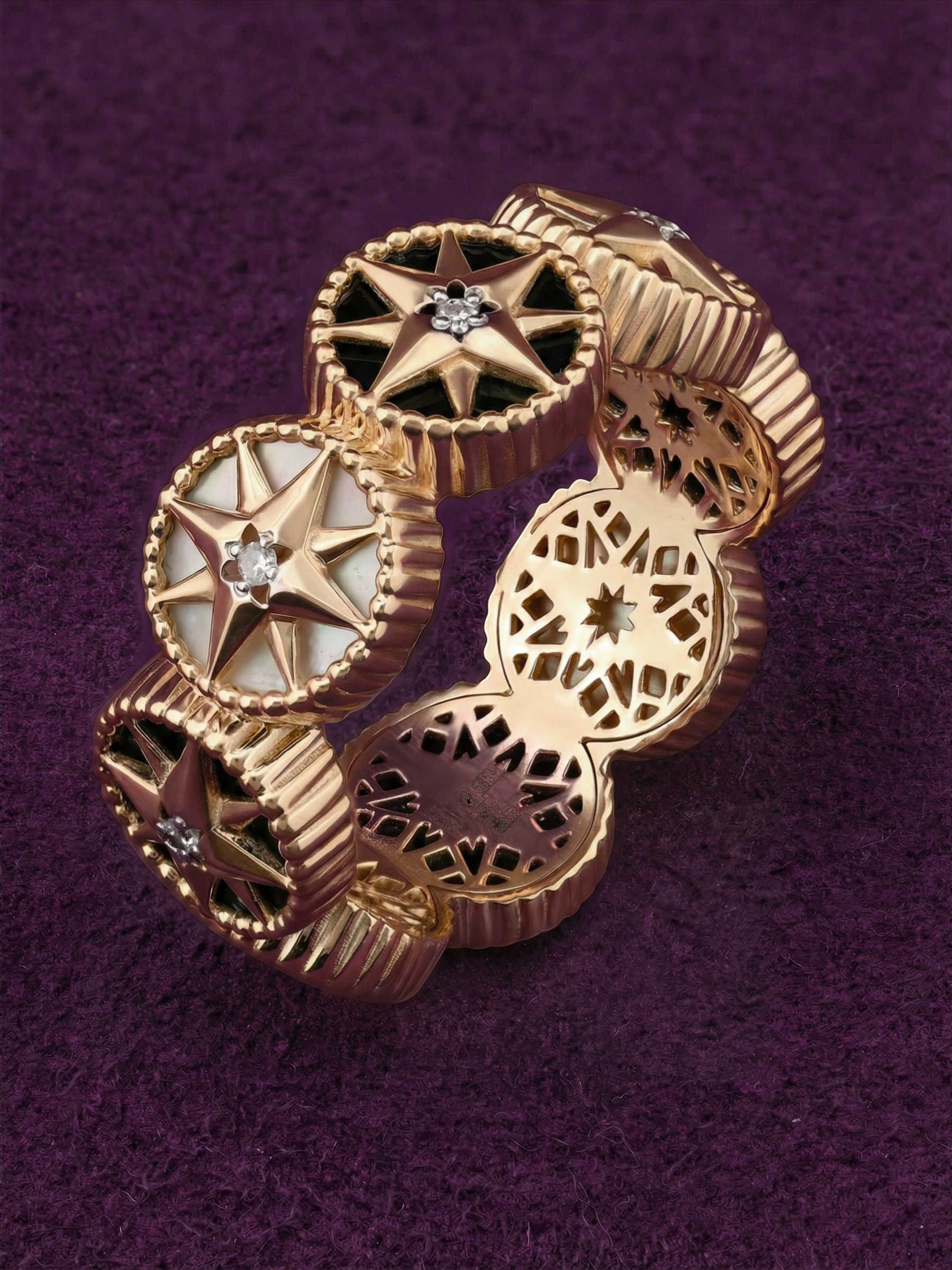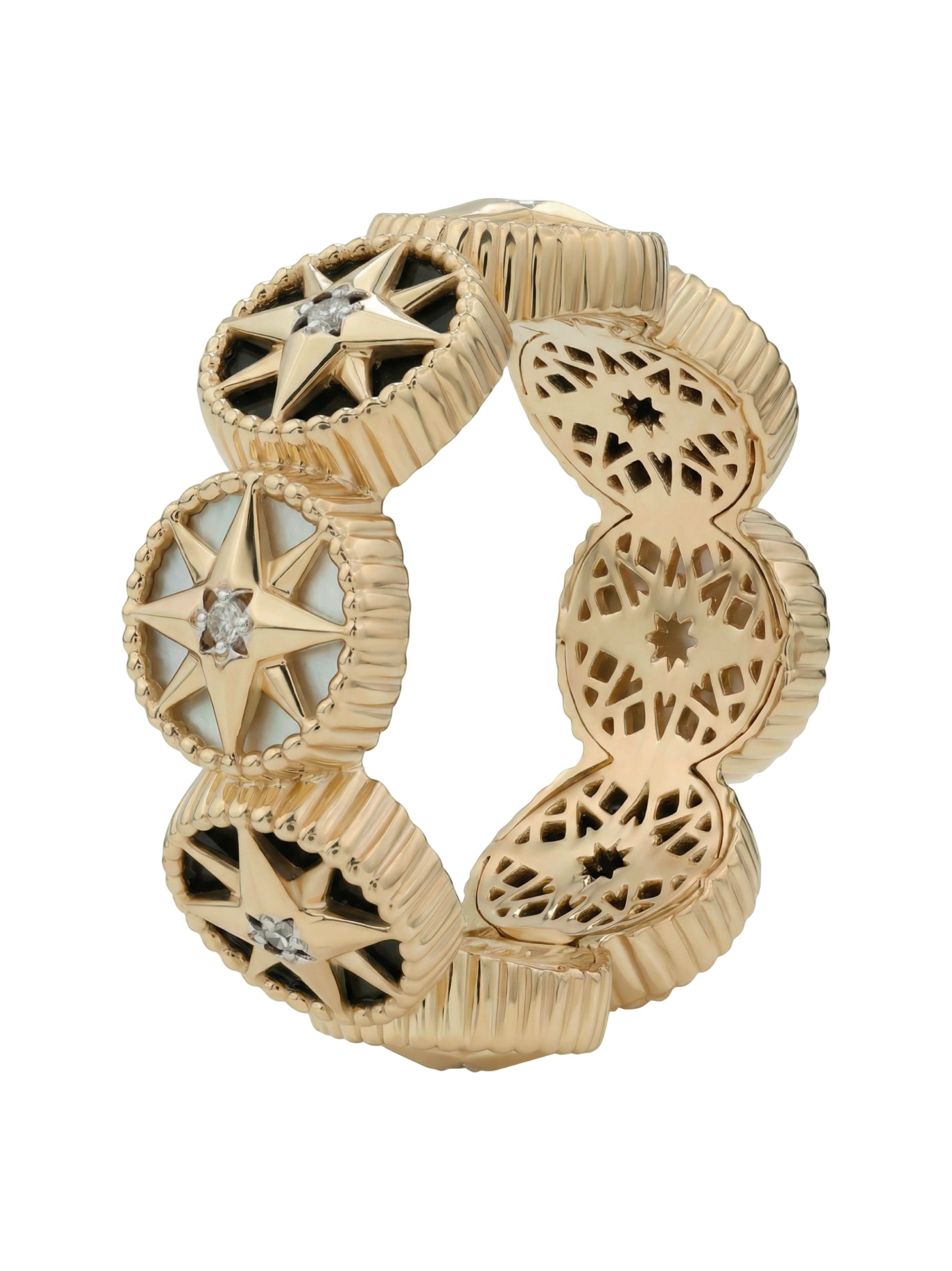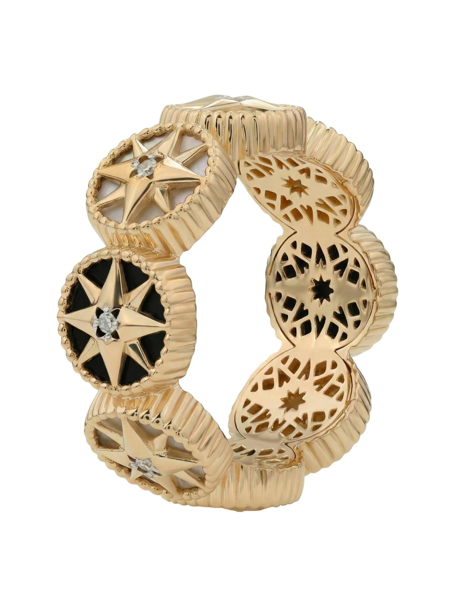 Кольцо из золота c бриллиантами, ониксом и перламутром