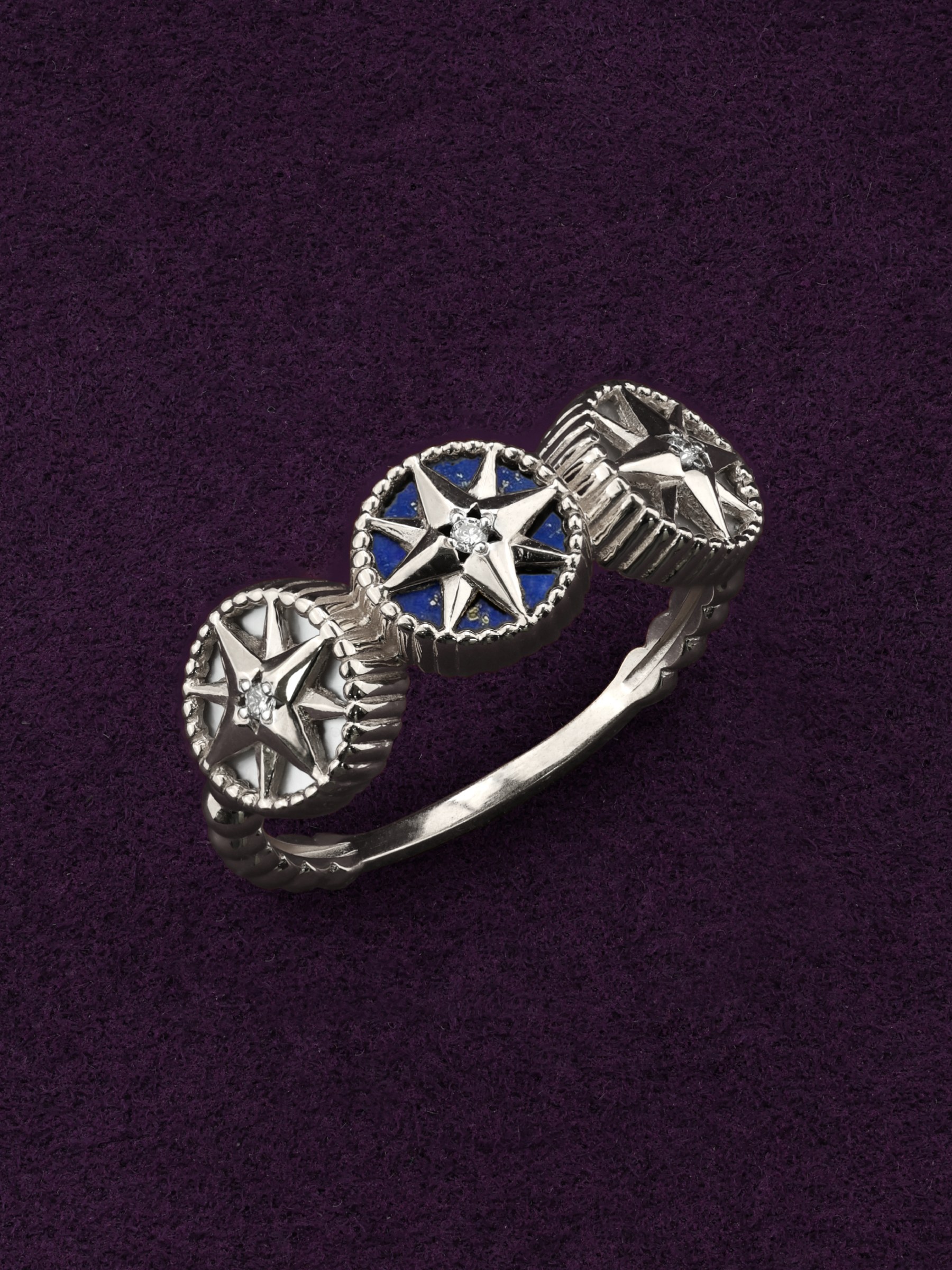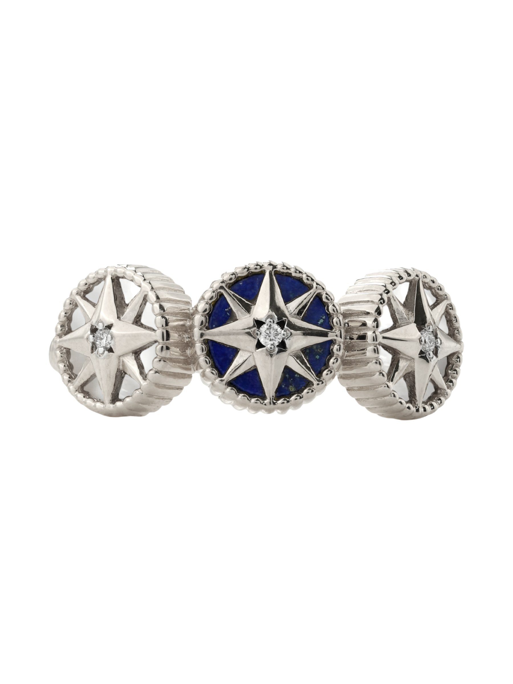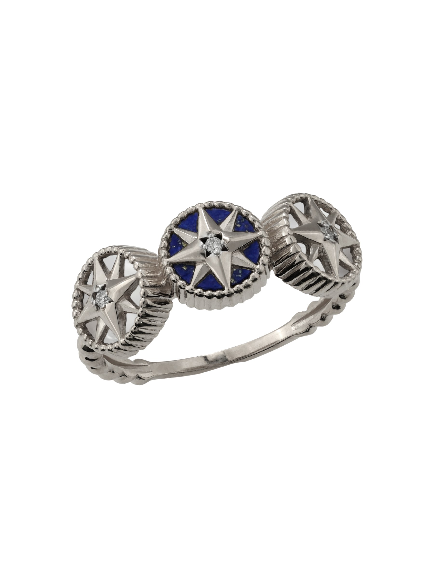 Кольцо из белого золота c бриллиантами, лазуритом и перламутром