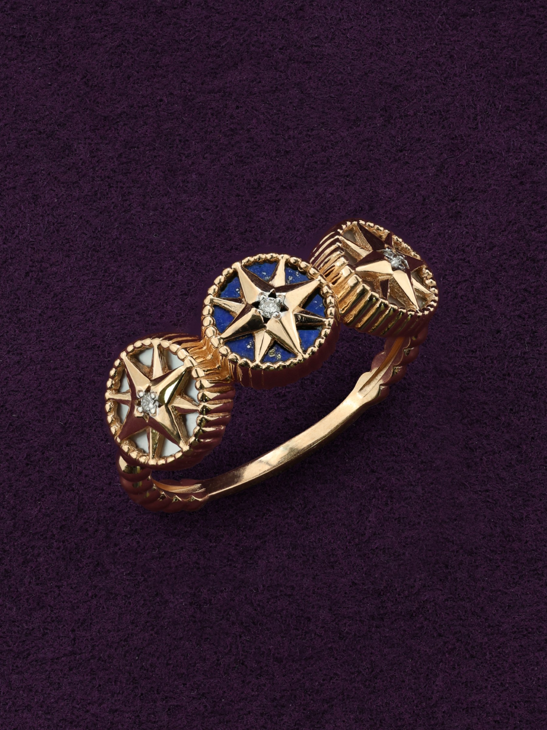 Кольцо из золота c бриллиантами, лазуритом и перламутром