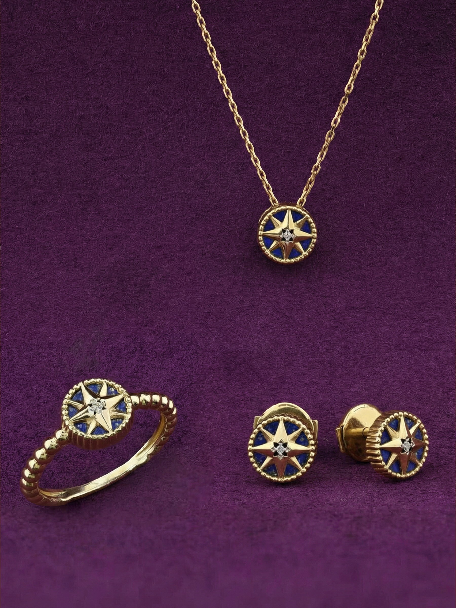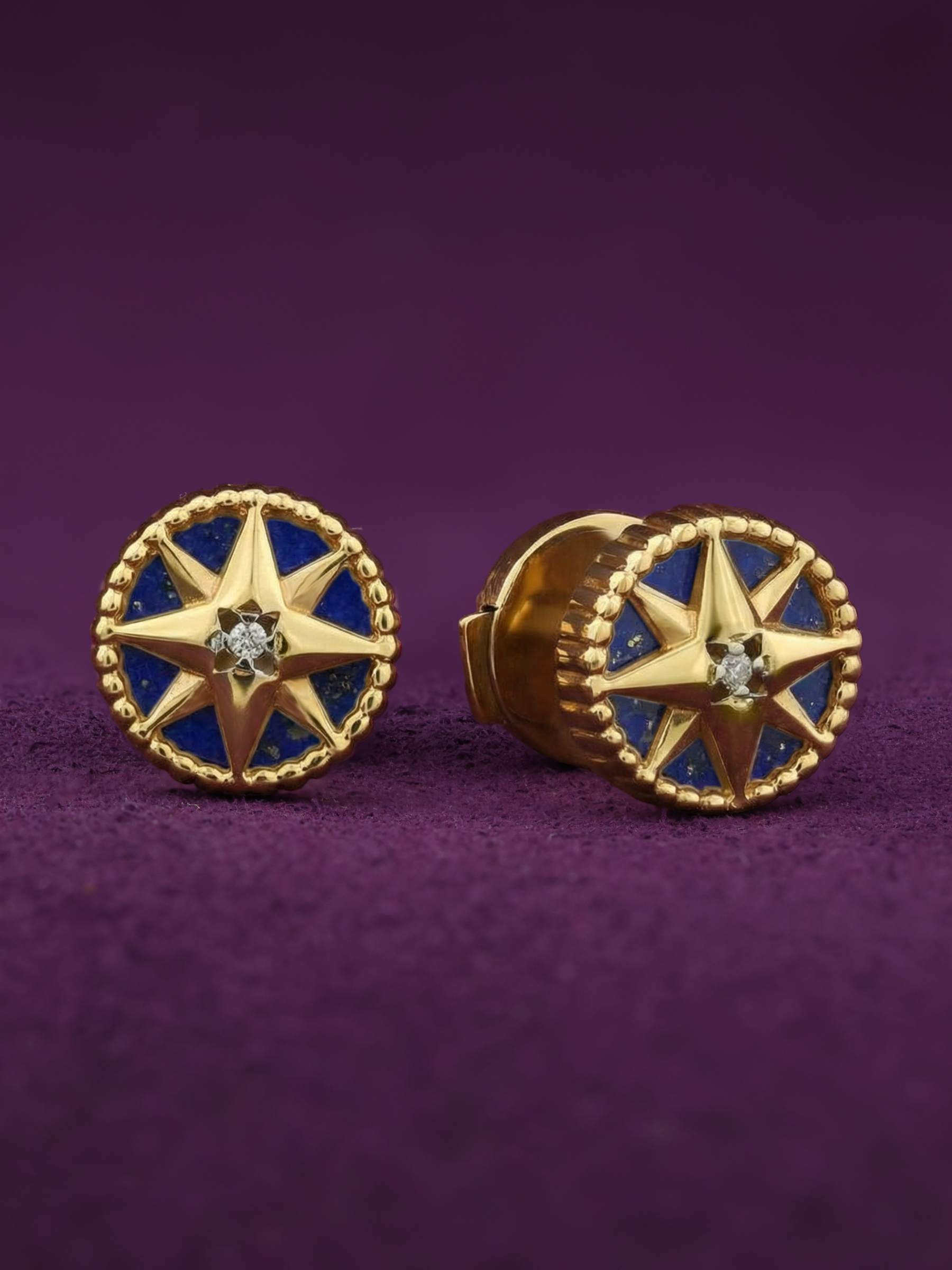 Серьги из лимонного золота c бриллиантами и лазуритом