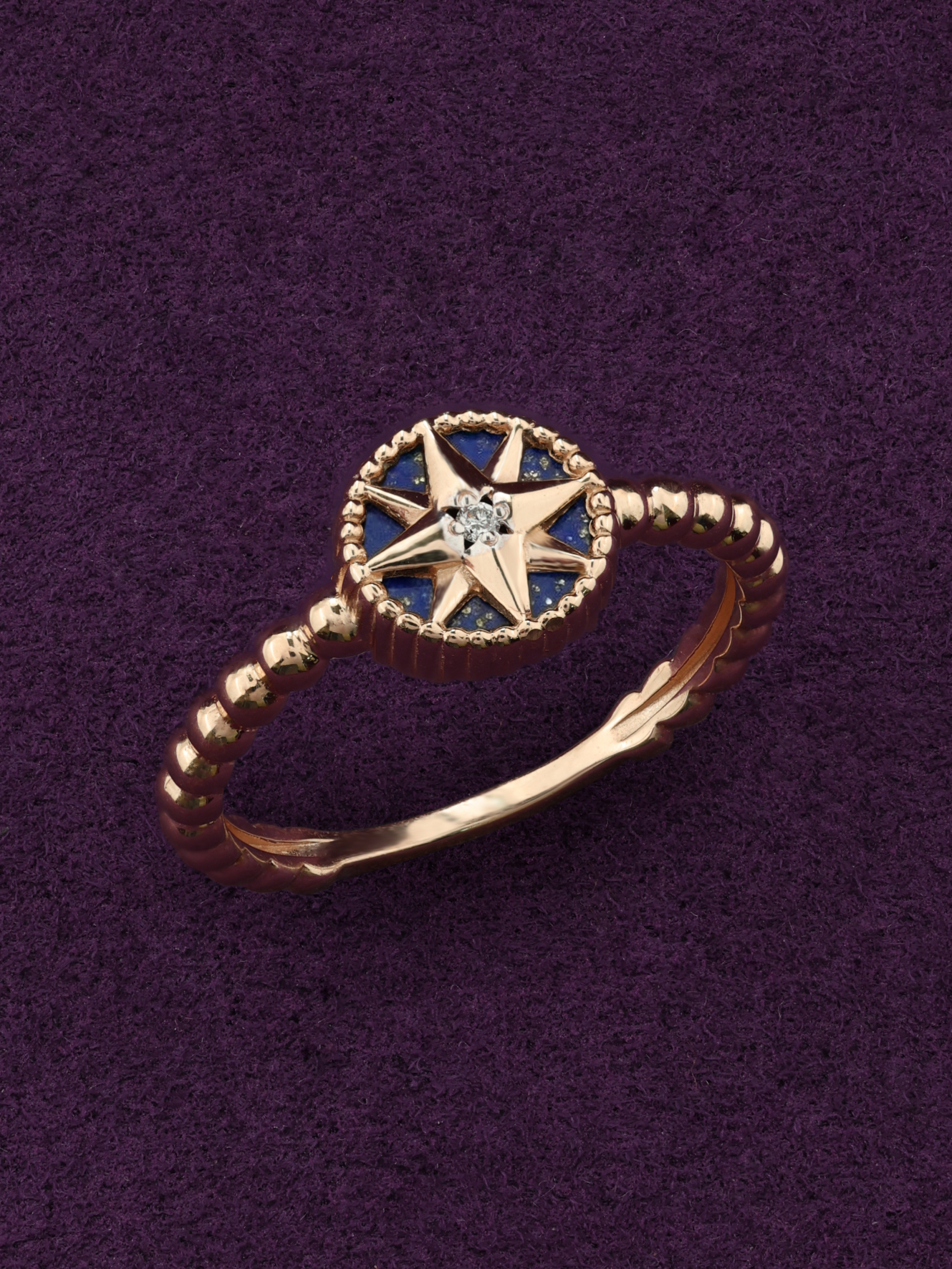 Кольцо из лимонного золота c бриллиантами и лазуритом