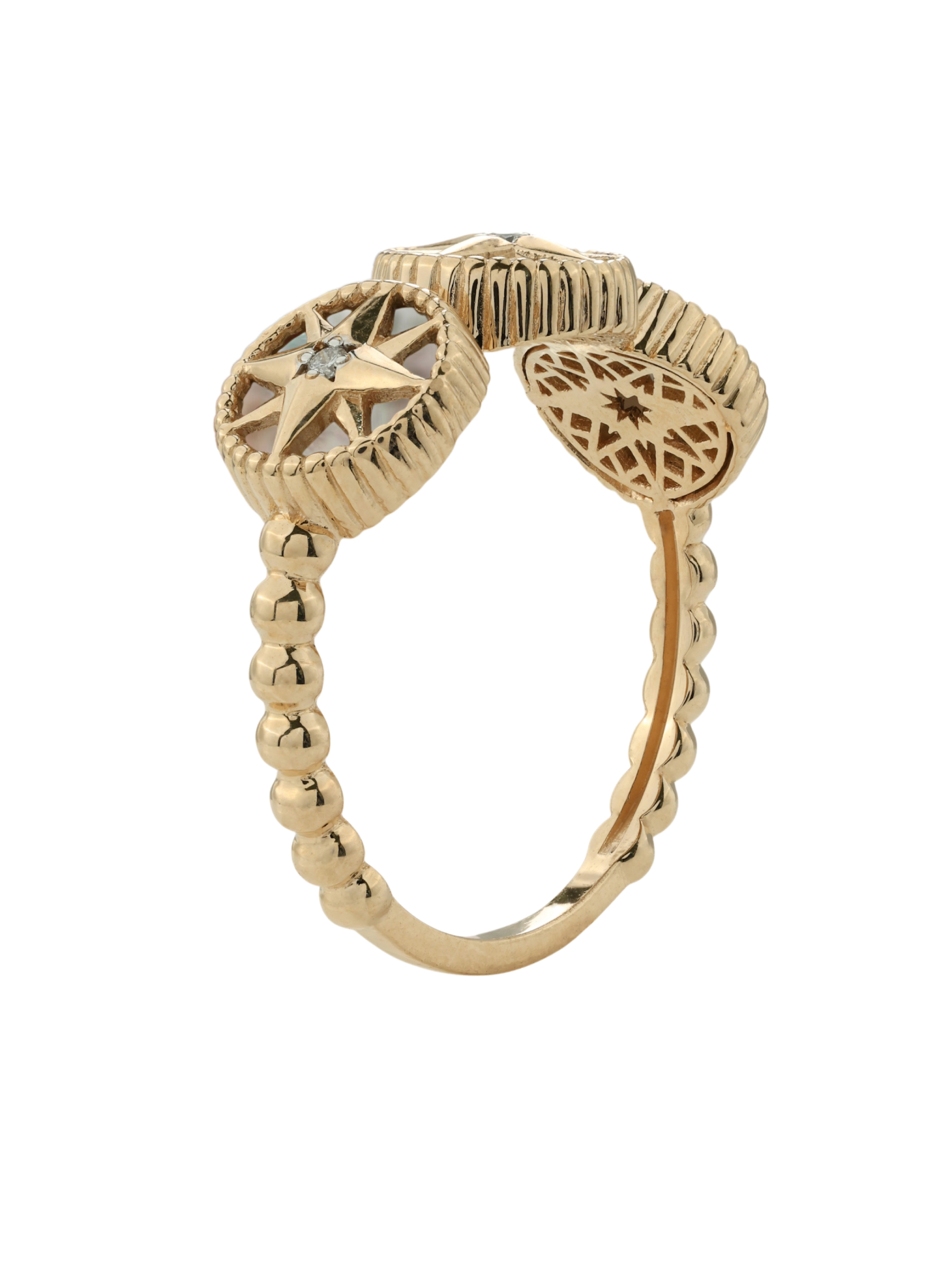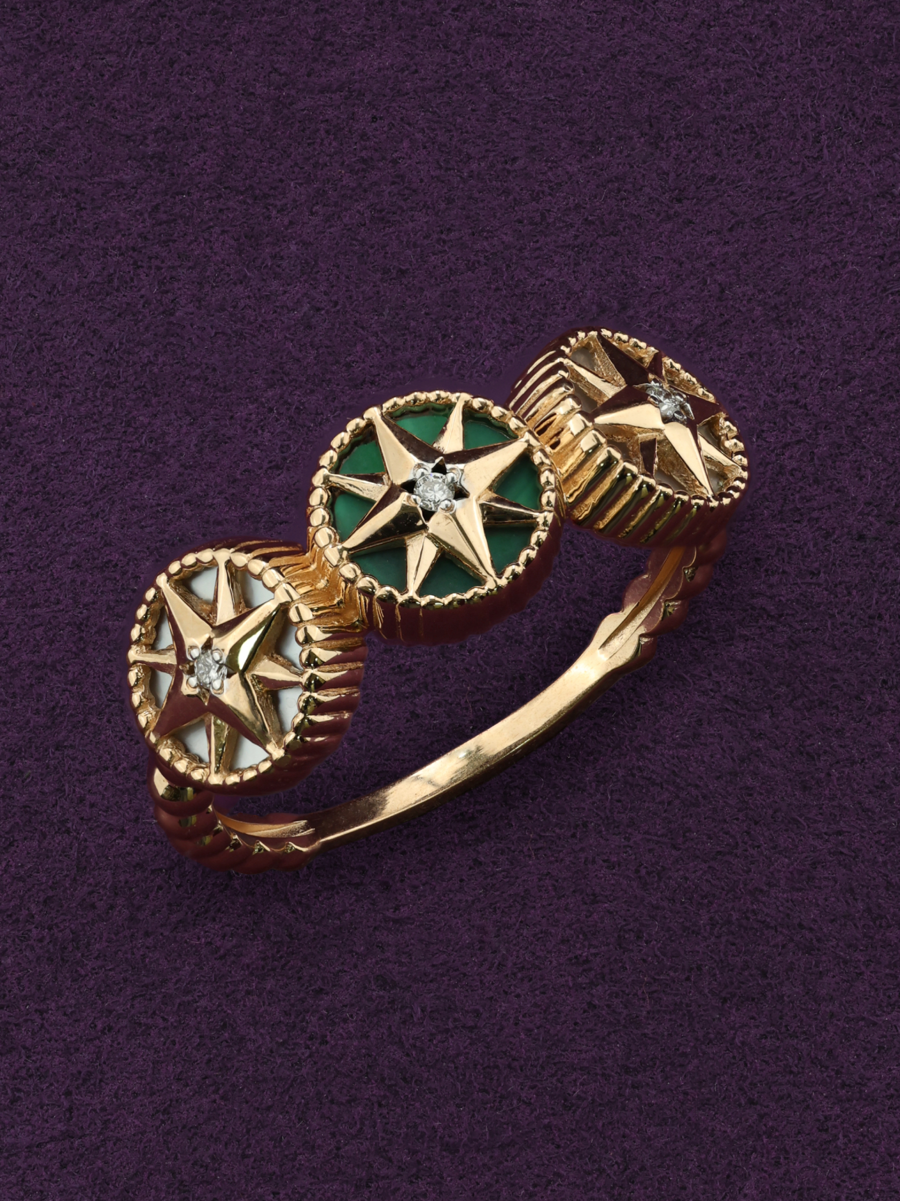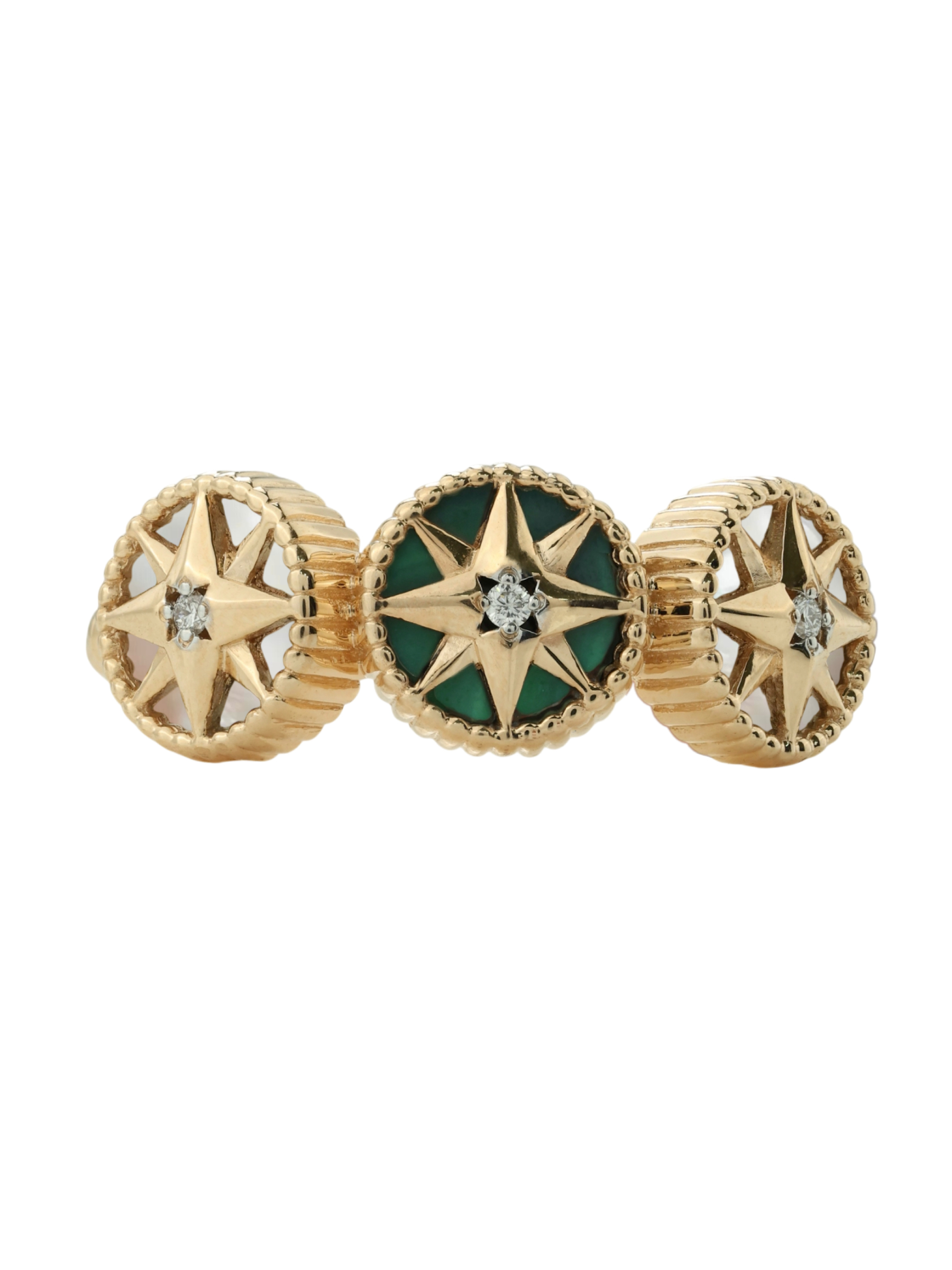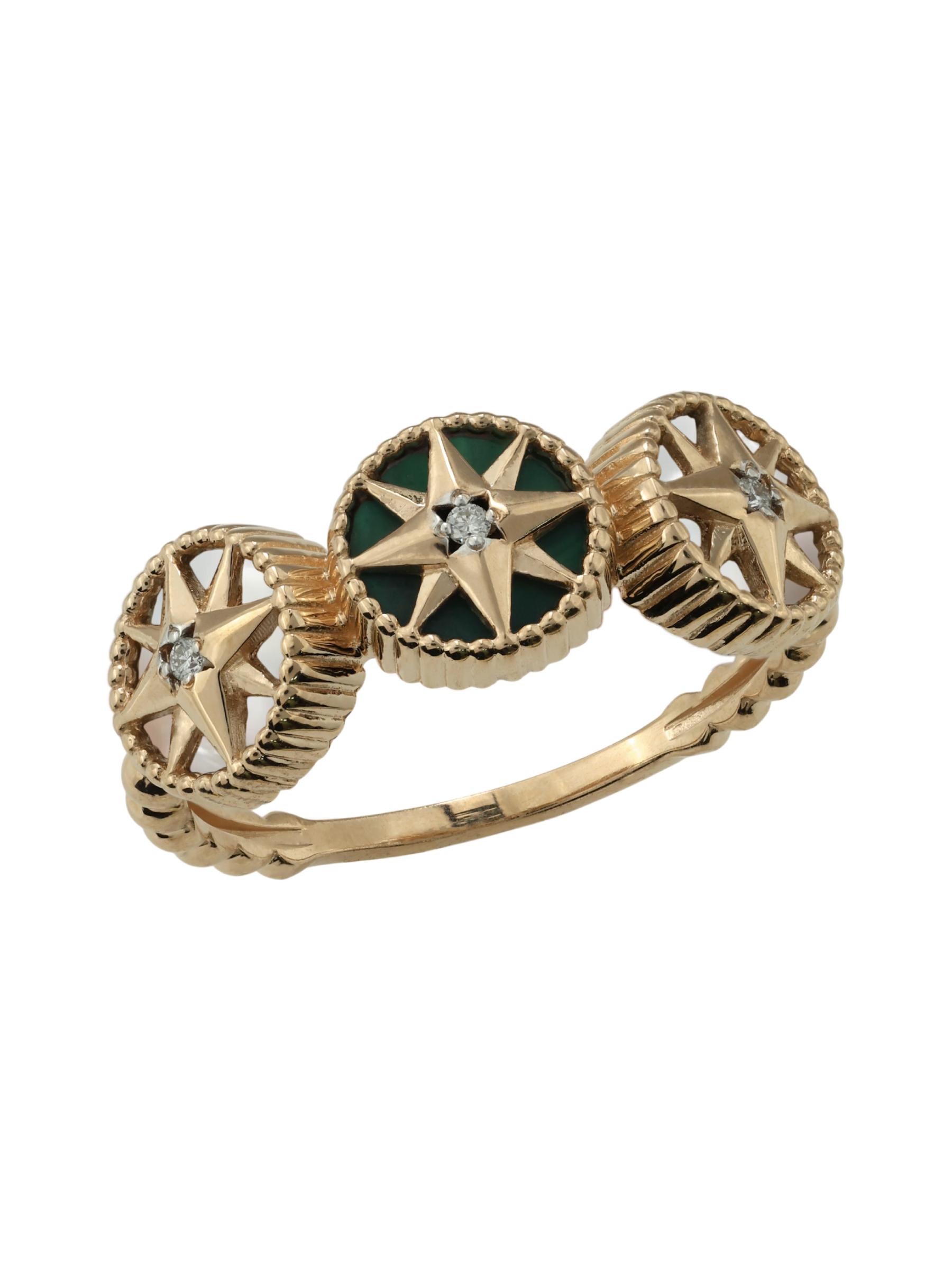 Кольцо из золота c бриллиантами, малахитом и перламутром