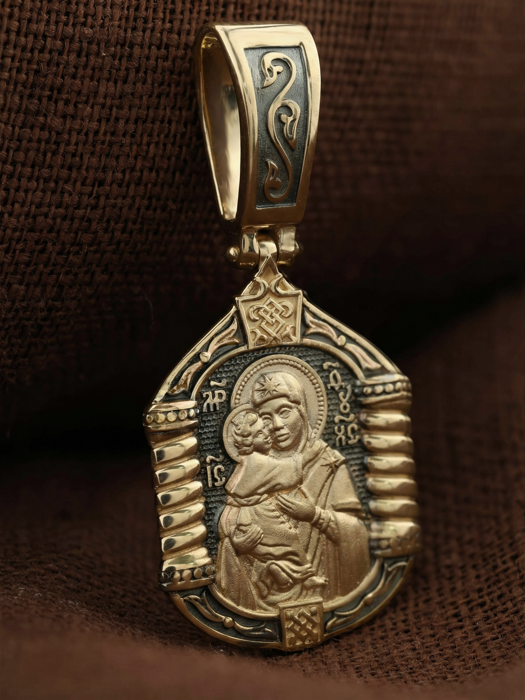 На лицевой стороне образка изображена Владимирская икона Божией Матери.