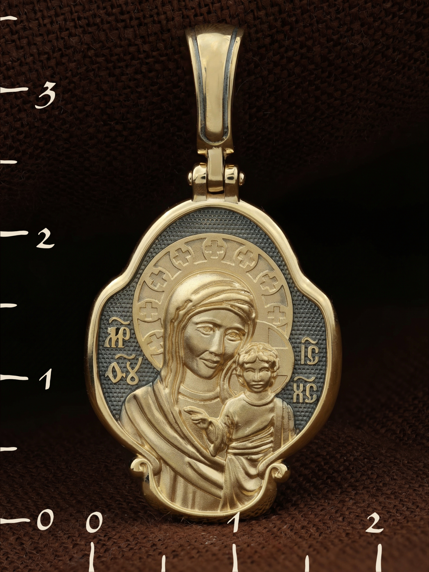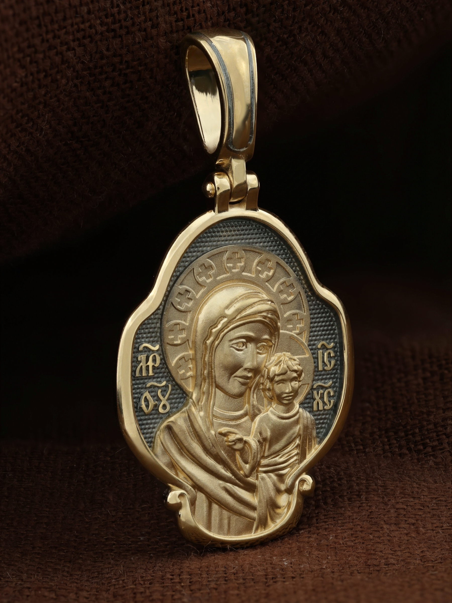 На лицевой части образка изображена Казанская икона Божией Матери — одна из самых почитаемых в России чудотворных икон Богородицы. Богословское значение Казанской иконы — указать верующим истинный Путь к спасению, который лежит через Христа. Только Божия Матерь имеет настолько сильное дерзновение к Спасителю, что может ходатайствовать перед Ним за всех верных. Именно этот образ дарится новой повенчанной паре, как хранитель очага и семейная реликвия. Молитва перед Казанской иконой Божьей Матери помогает во всех сложных случаях жизни, в болезнях, во всех печалях, невзгодах, скорбях. Уникальная история появления, чудеса, случившиеся по молитвам православных людей возле образа — все это делает Казанскую Богородицу особенной, среди тысяч других икон.