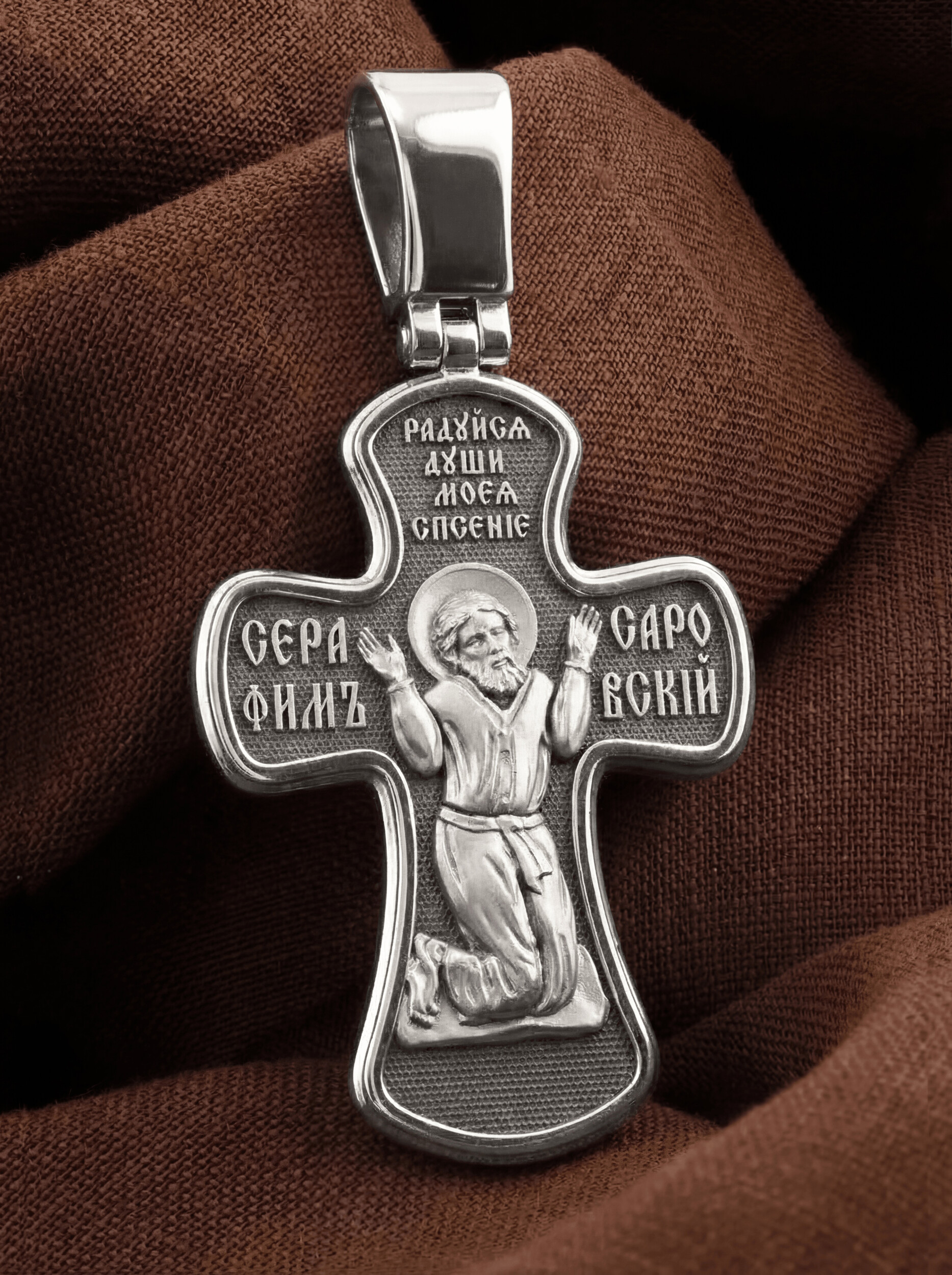 На обороте изображен образ Преподобного Серафима Саровского, самого великого русского святого XIX века. Преподобный Серафим почитается за особую милостивую любовь к людям и неоскудевающую помощь во всех делах. Над ликом Святого выгравирована надпись: «Радуйся души моея спасение».