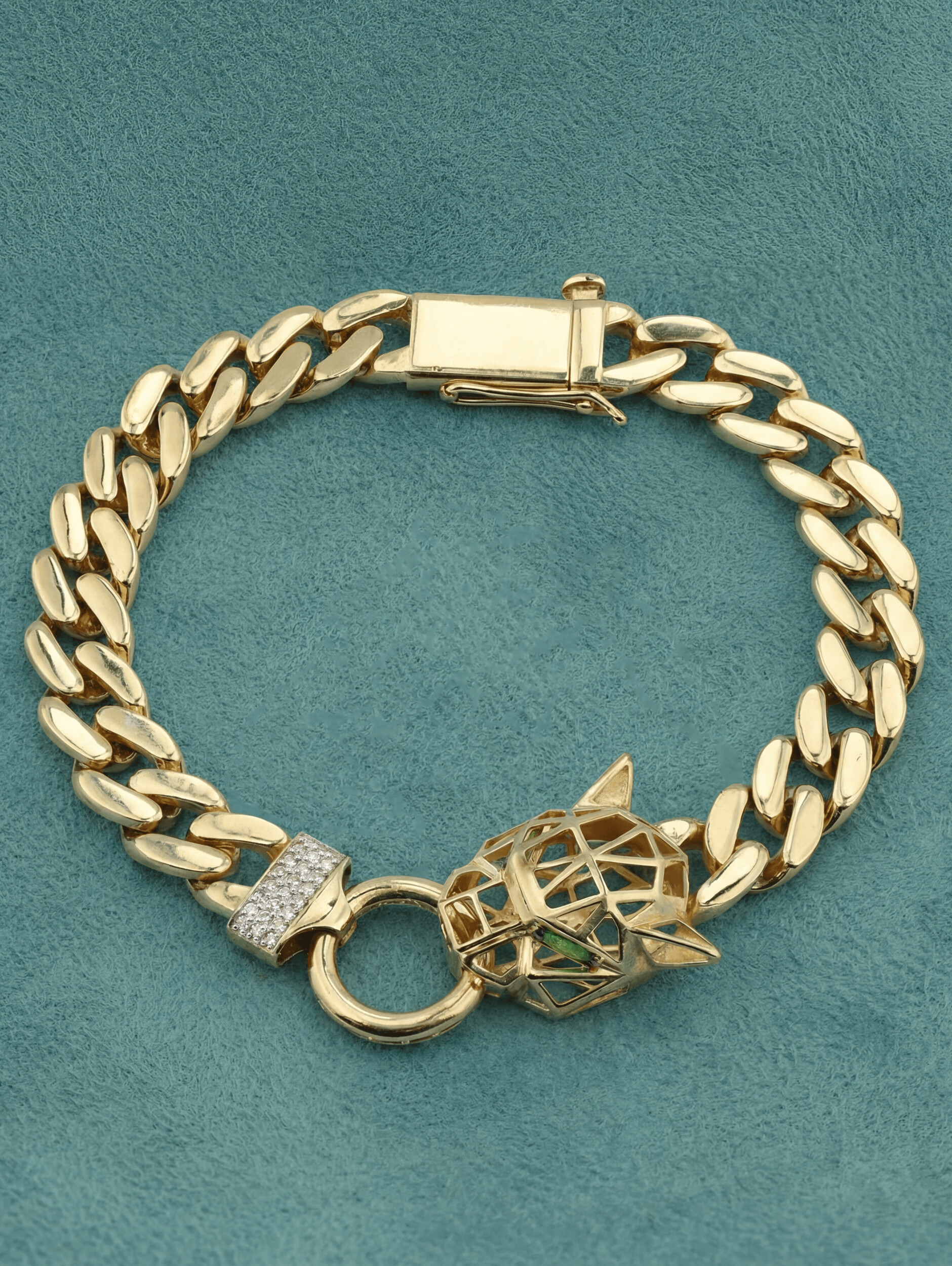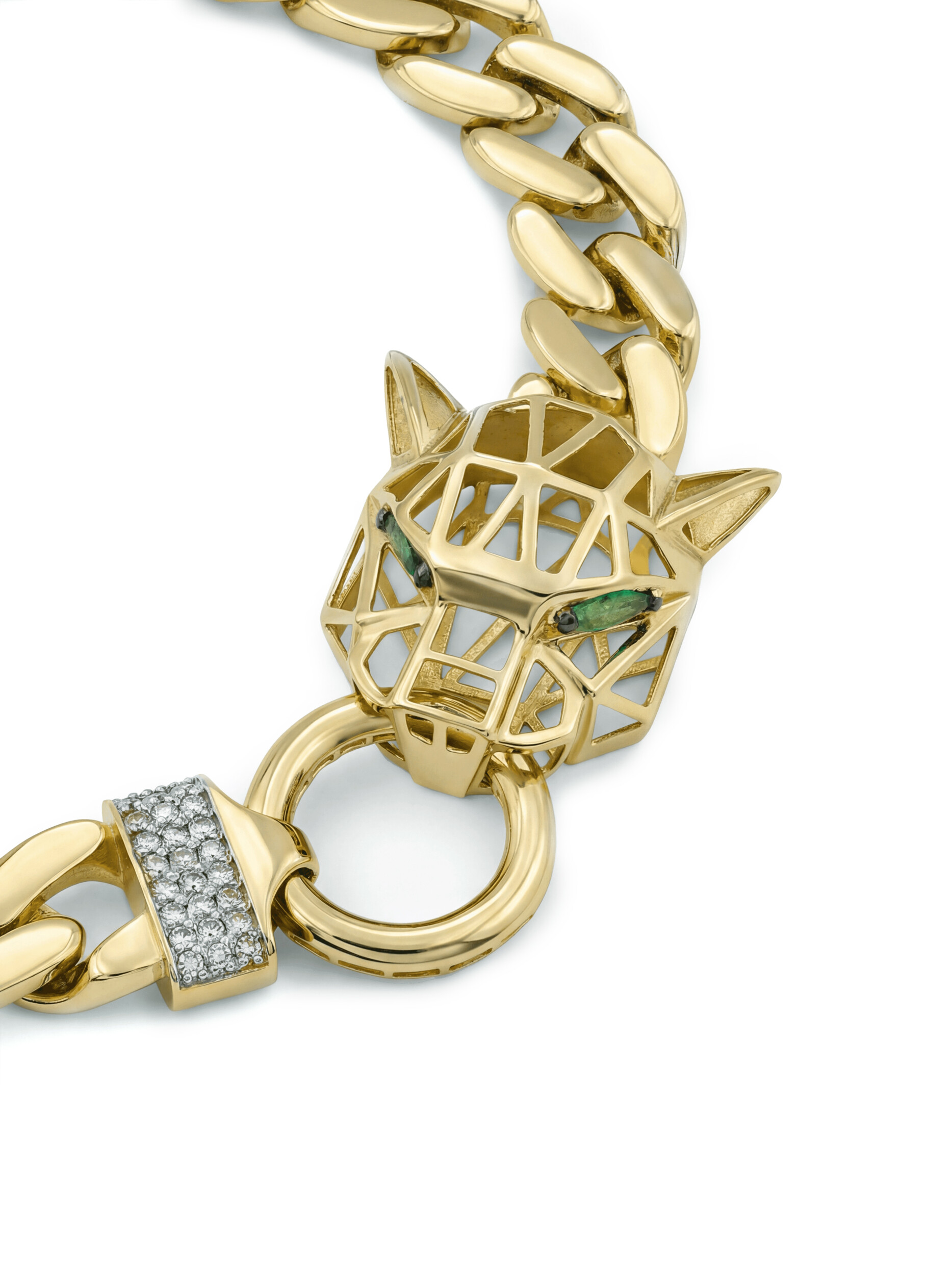 Браслет из лимонного золота c бриллиантами и изумрудом