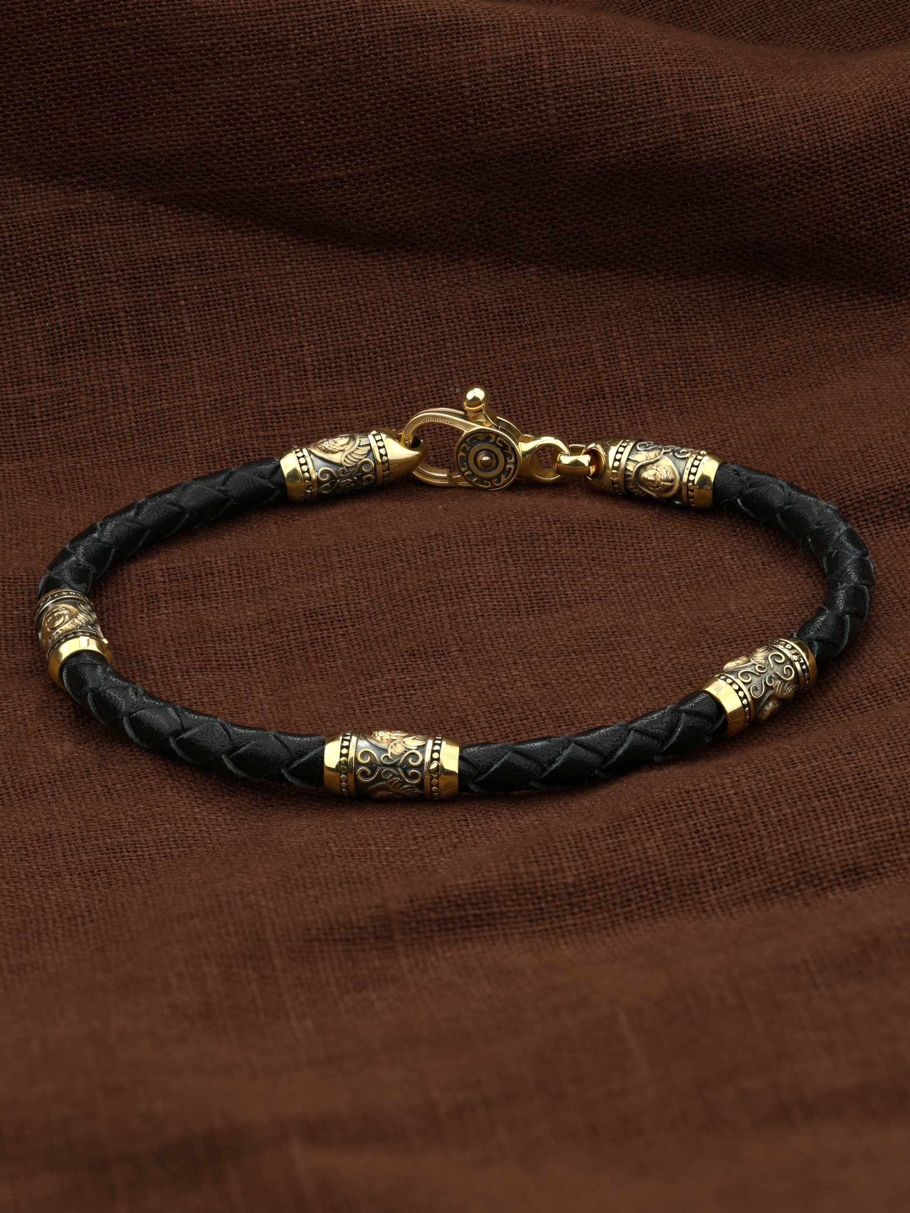 Браслет из лимонного золота c кожаным шнурком